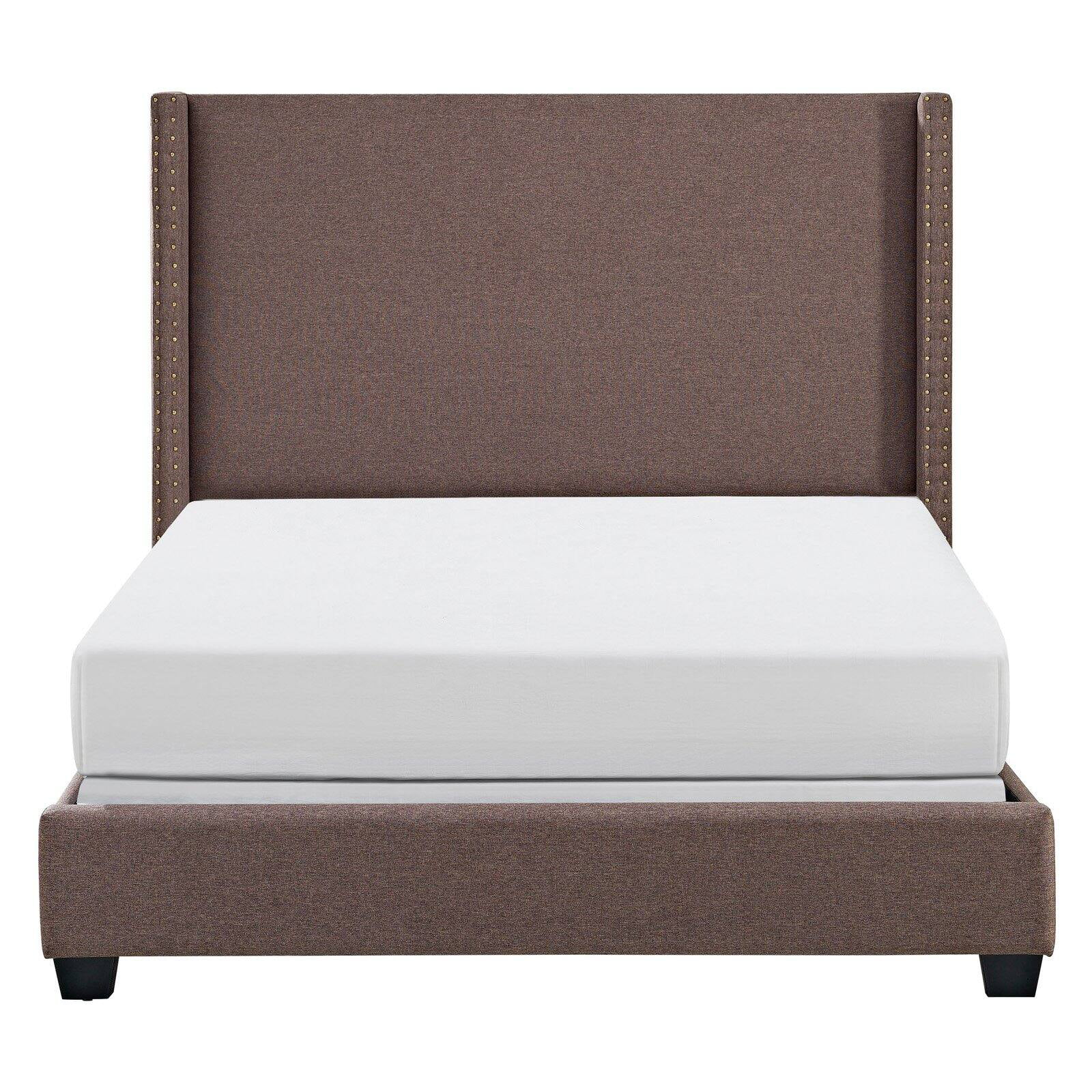 Leonel Signature Queen Size Upholstered Shelter Bed Nailhead Trim, Multiple Colors