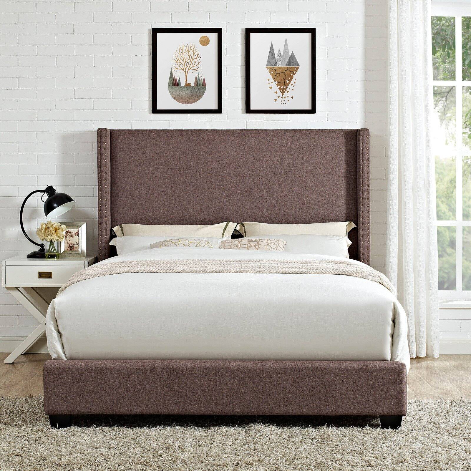 Modway Luella Queen Upholstered Fabric Platform Bed in Cappuccino Beige