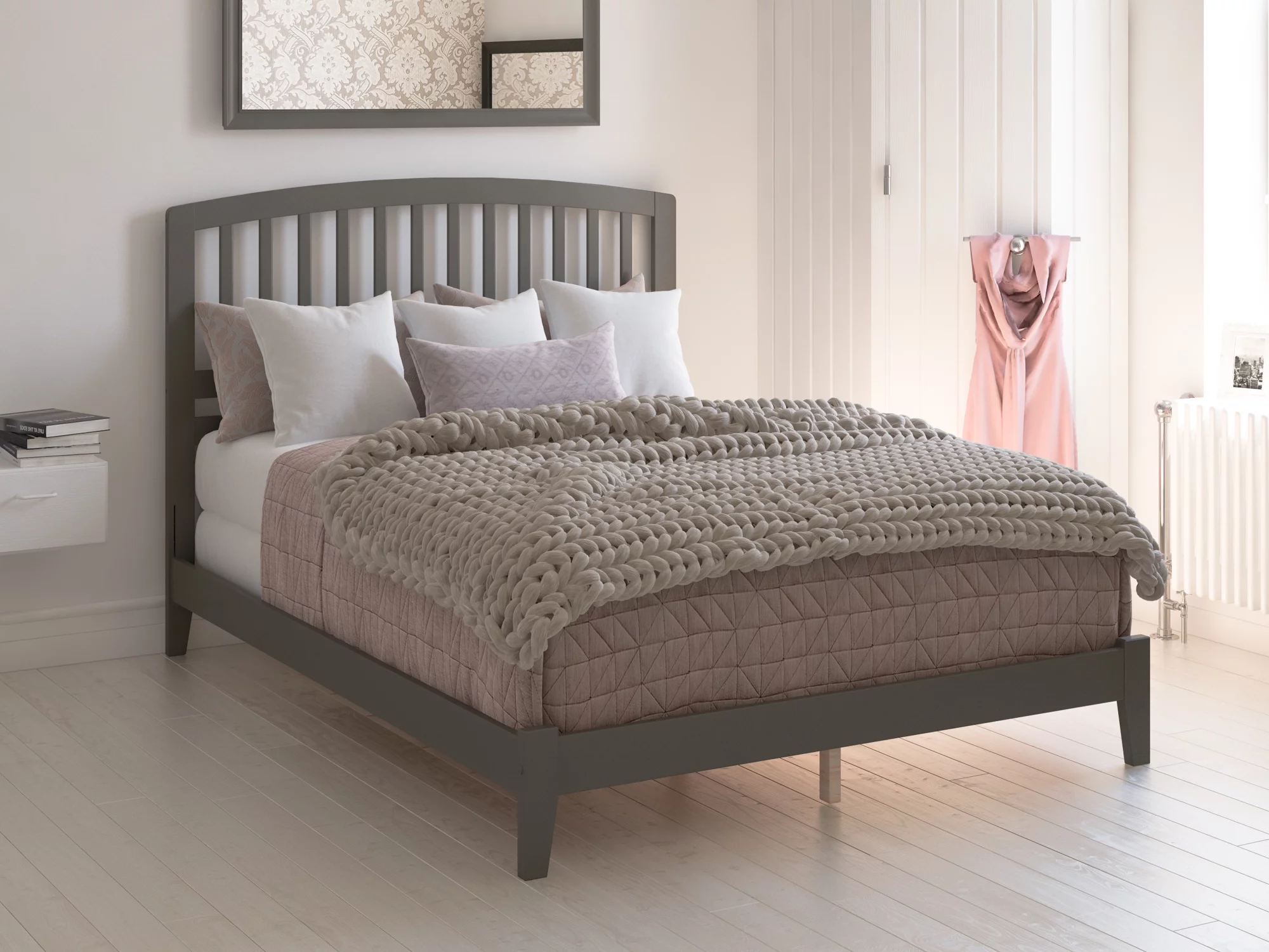 Contemporary 3pc Panel King Size Bed and 2x Nightstand Bedroom Set Wooden Furniture Chalk Finish