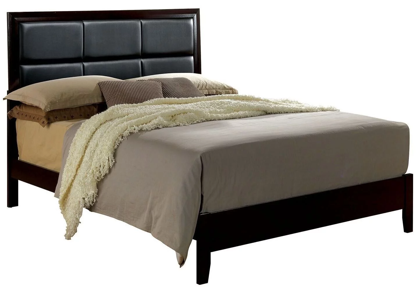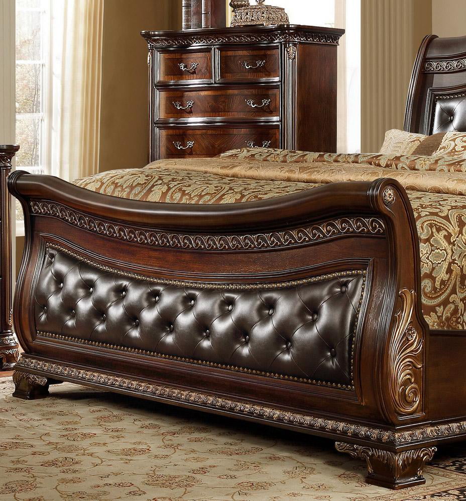 Leather Headboard Sleigh King Size Bedroom Set 5Pcs McFerran B9588 Cherry