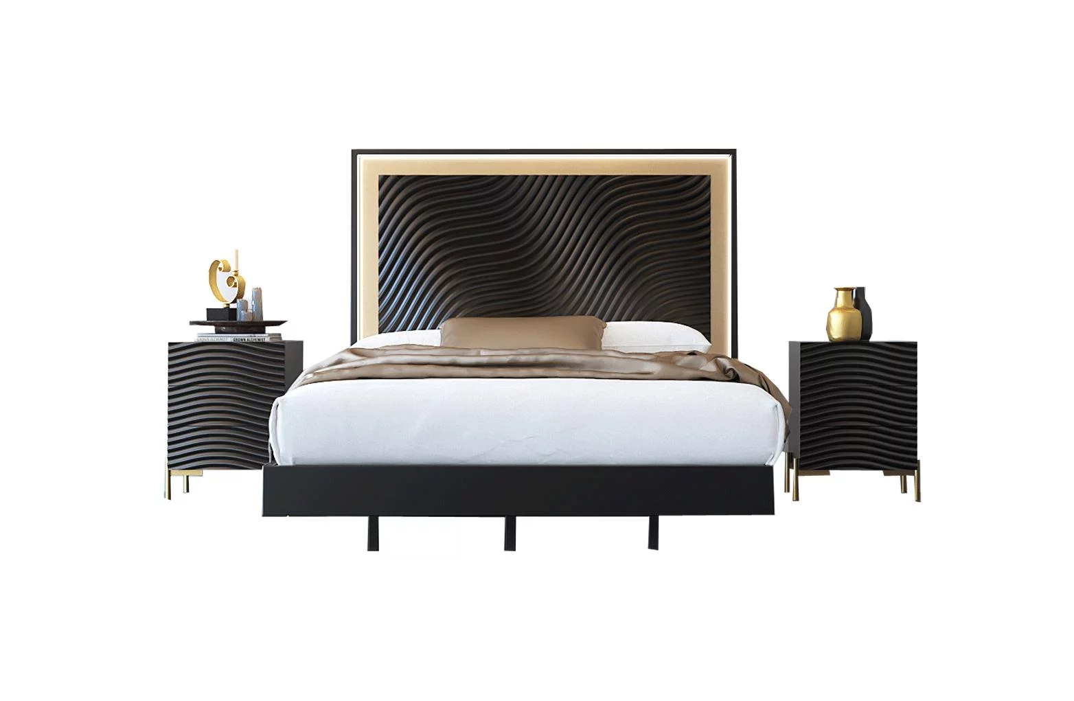 Glam Shiny Dark Grey King Bedroom Set 6Pcs WAVE ESF Contemporary MADE IN SPAIN
