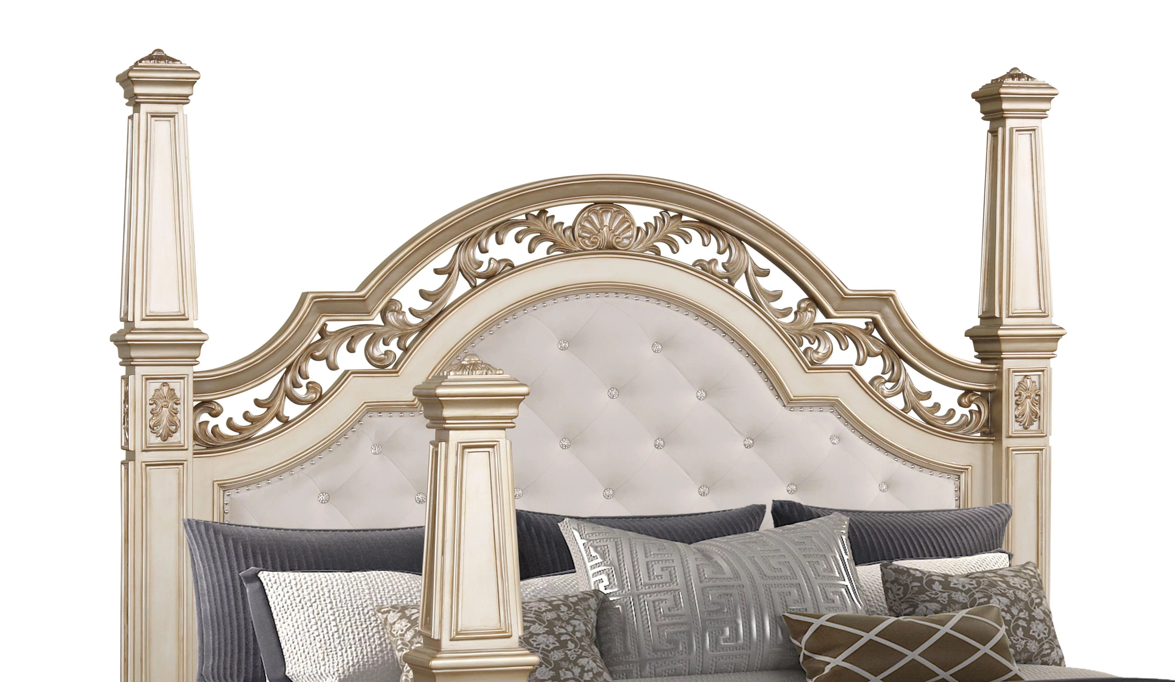 Gold Finish King Poster Bedroom Set 6Pcs Traditional Cosmos Furniture Valentina