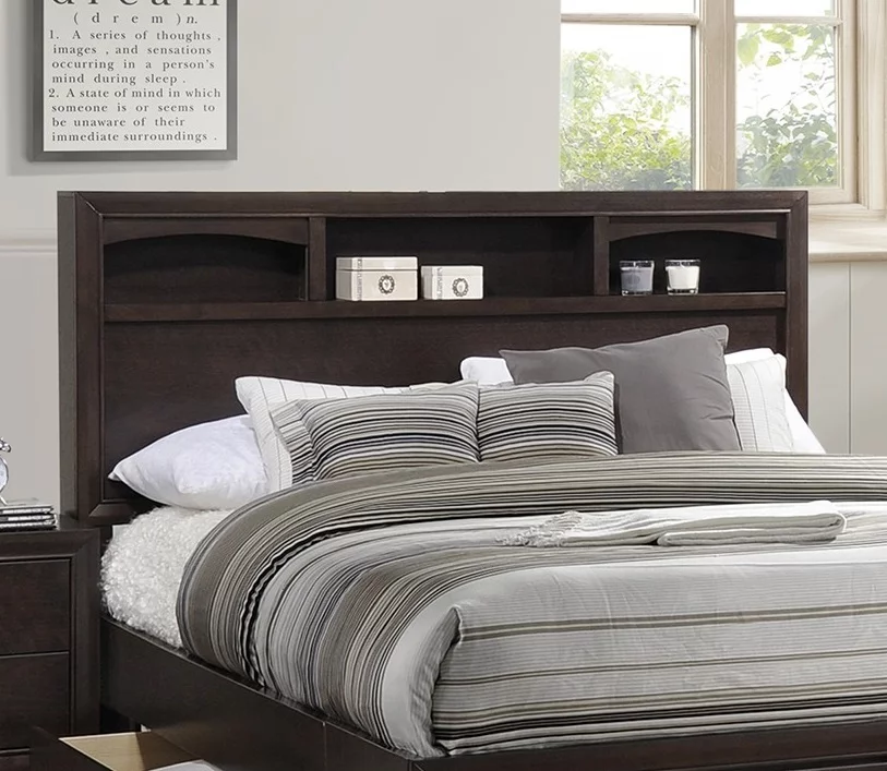 Contemporary Espresso Gorgeous 3pcs Eastern King Size Bed Bedroom Furniture Set 2x Nightstand Padded Headbaord Replicated Wood