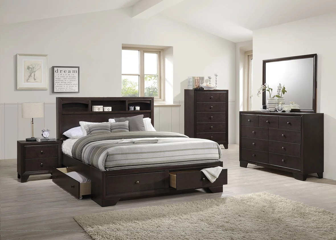 Transitional Dark Oak Solid Wood King Bedroom Set 6pcs FOA CM7365A Tywyn