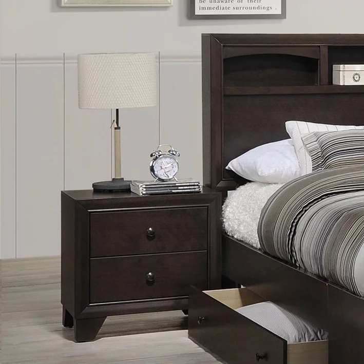 3pc Bedroom Set Espresso Eastern King Size Bed 2x Nightstands High Panel Headboard USB Storage Drawer FB Solid wood Furniture