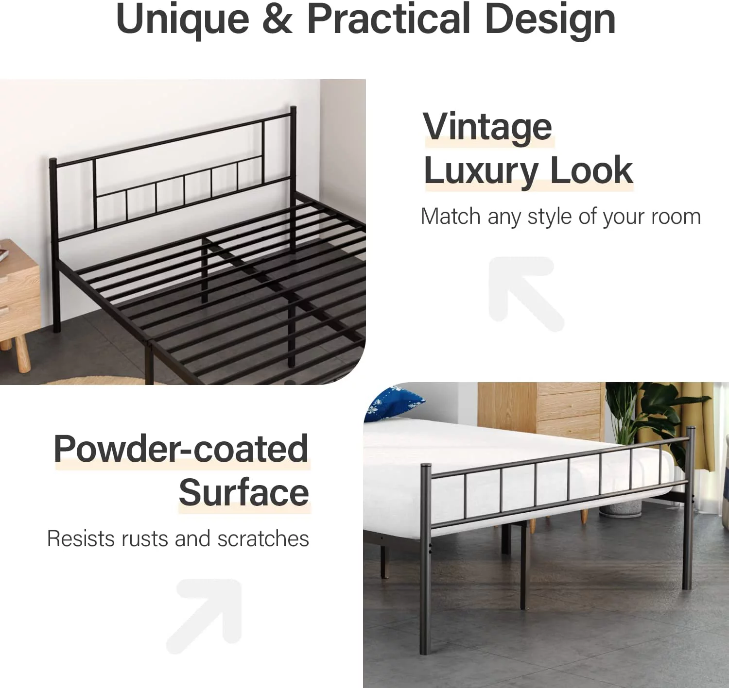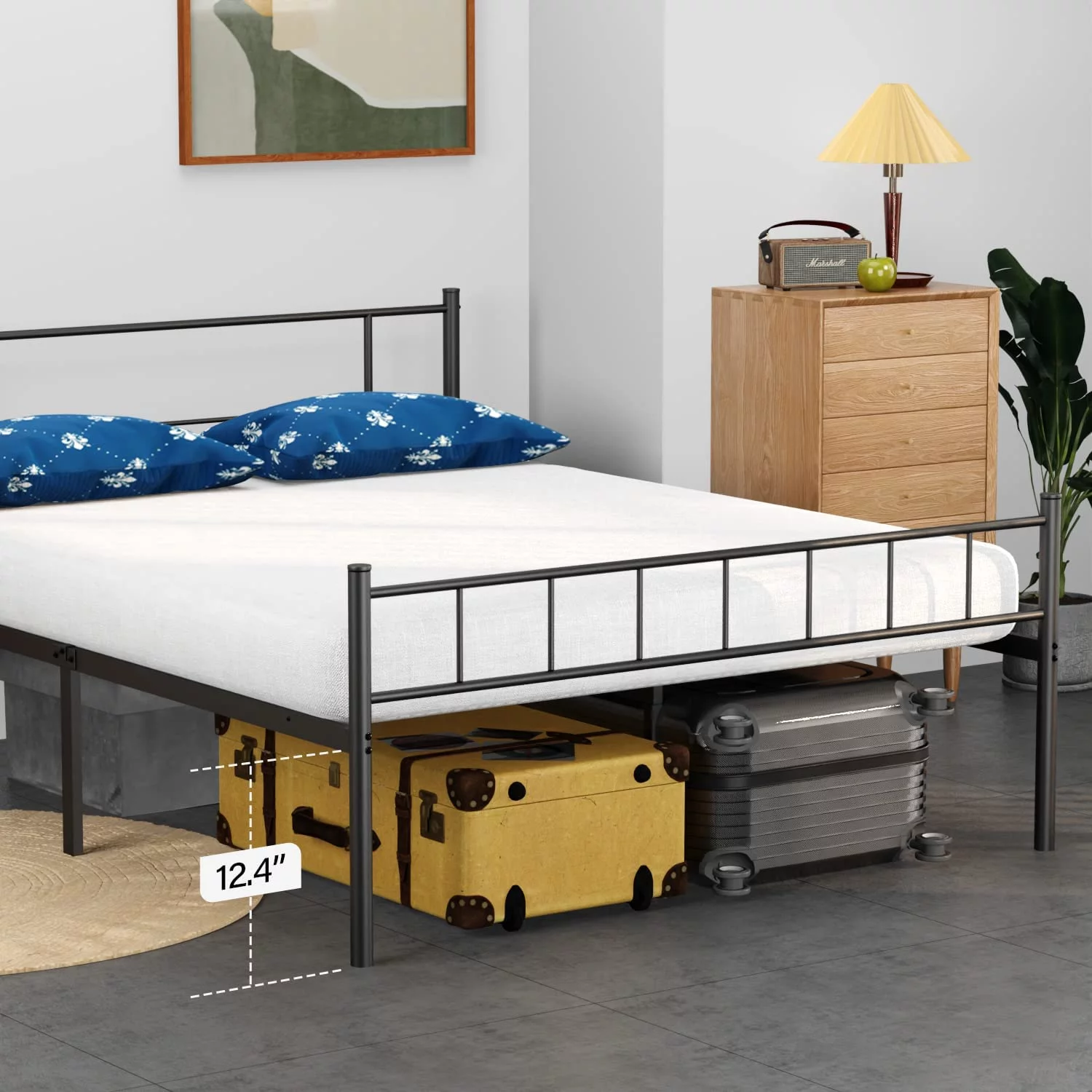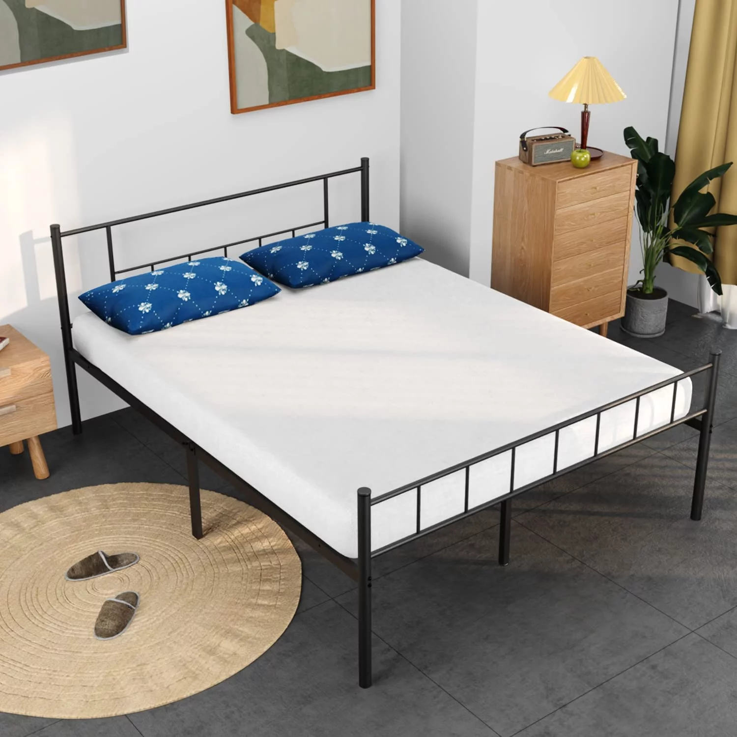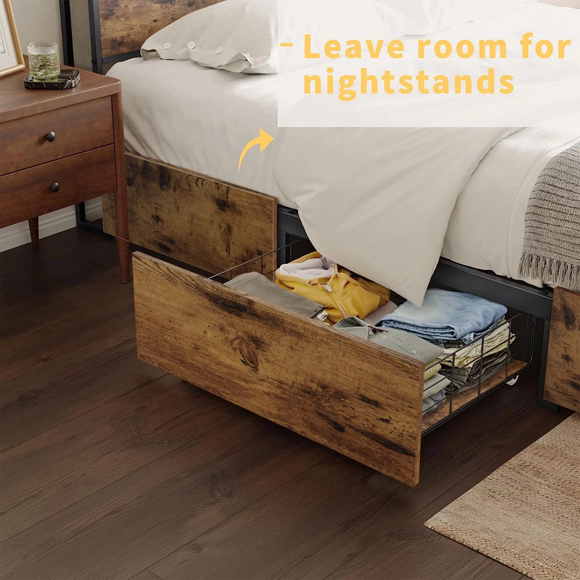 HAUSOURCE Queen Platform Bed Frame w/ Headboard, Drawers & Outlets, Brown
