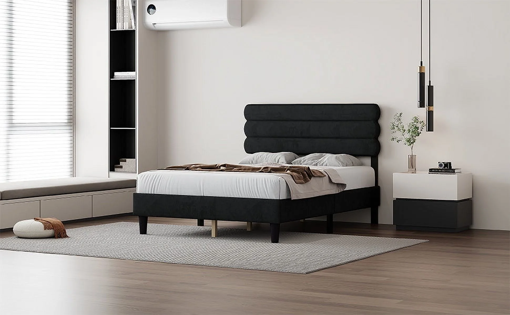 Home Square 4 Piece Set with Queen Platform Bed Nightstand and 2-Dresser