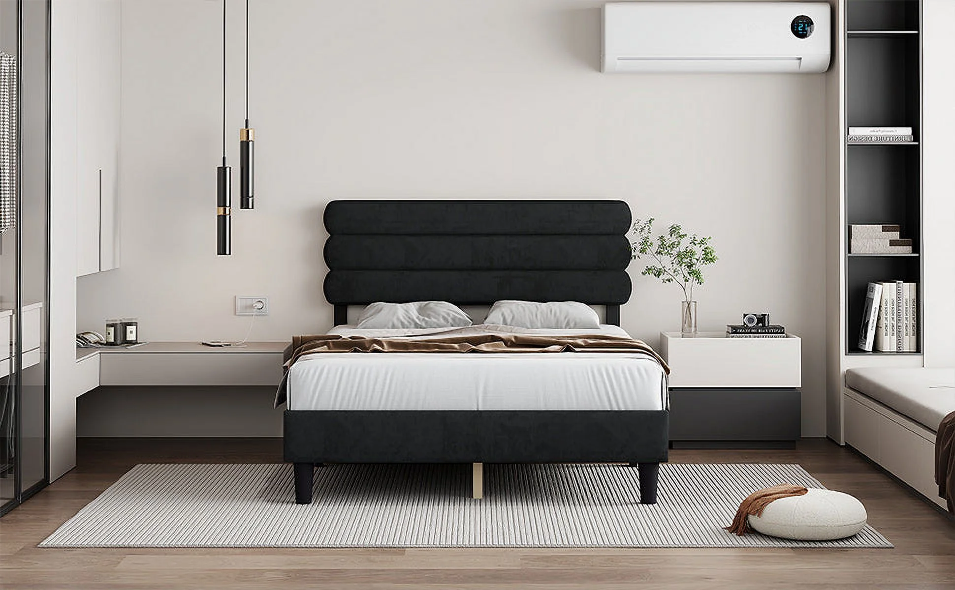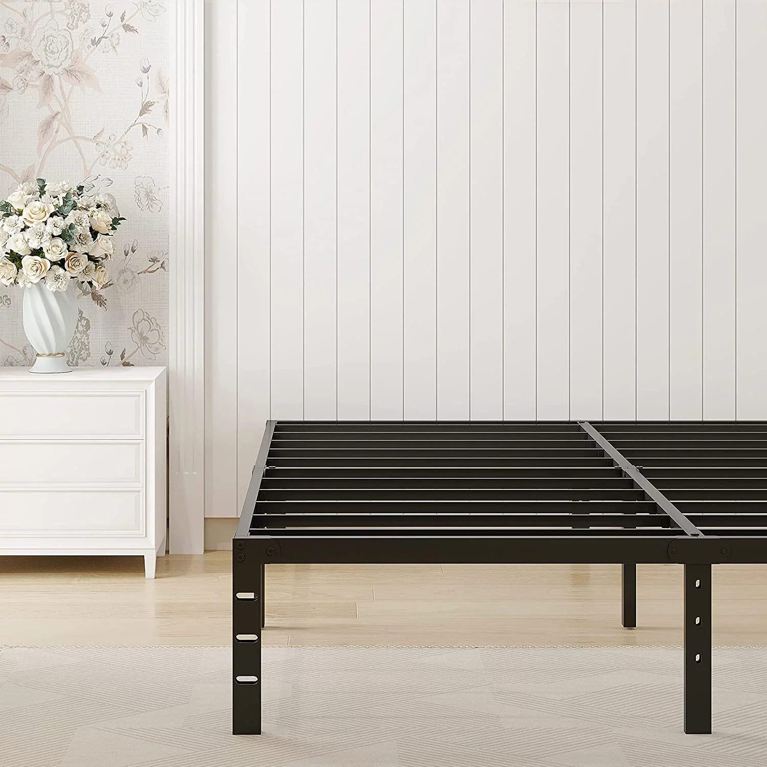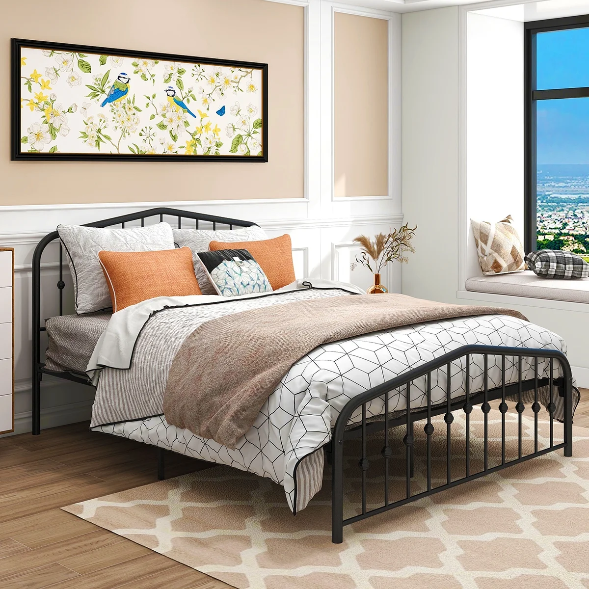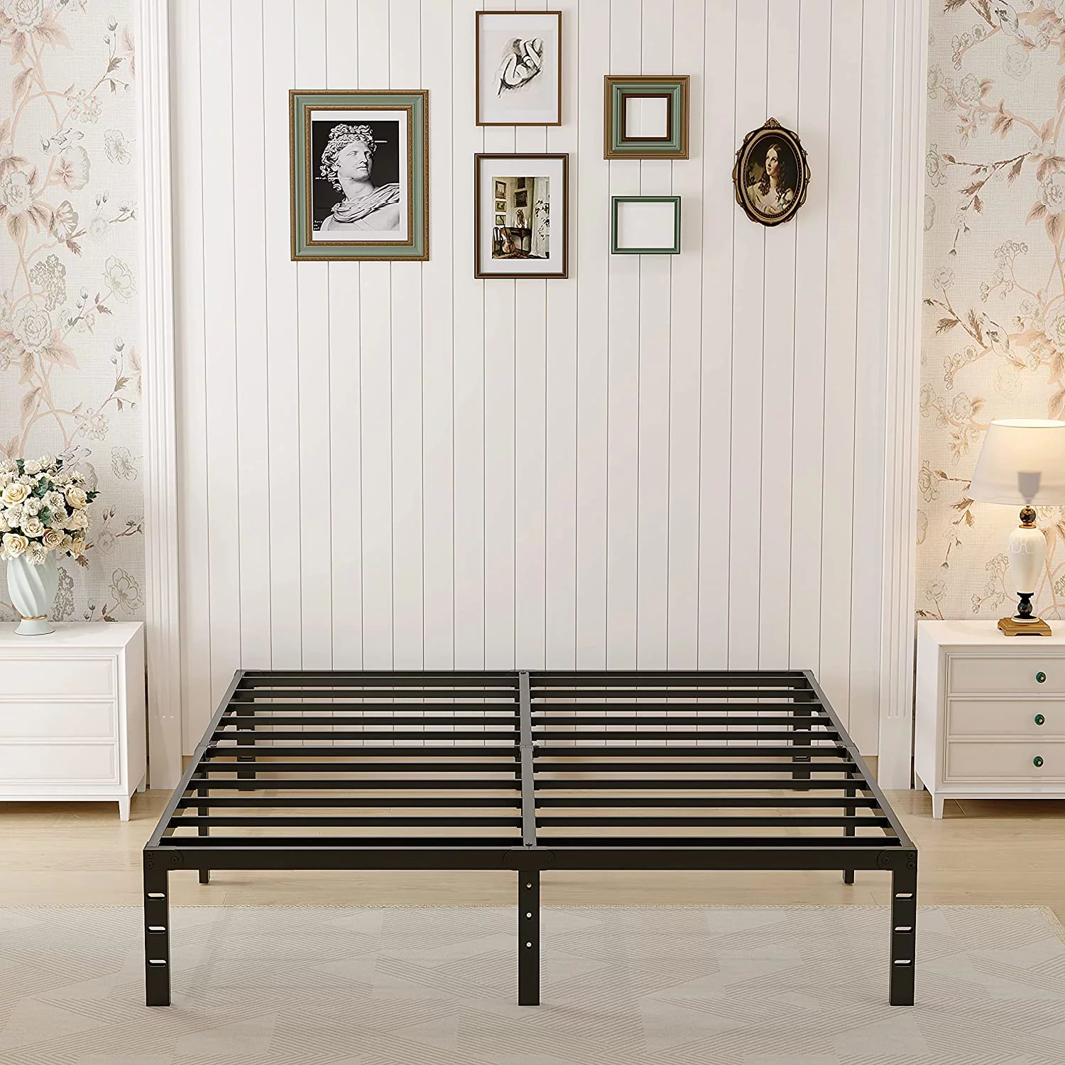 Clihome Full/Queen Size Metal Platform Bed Frame with USB Ports Black - Queen
