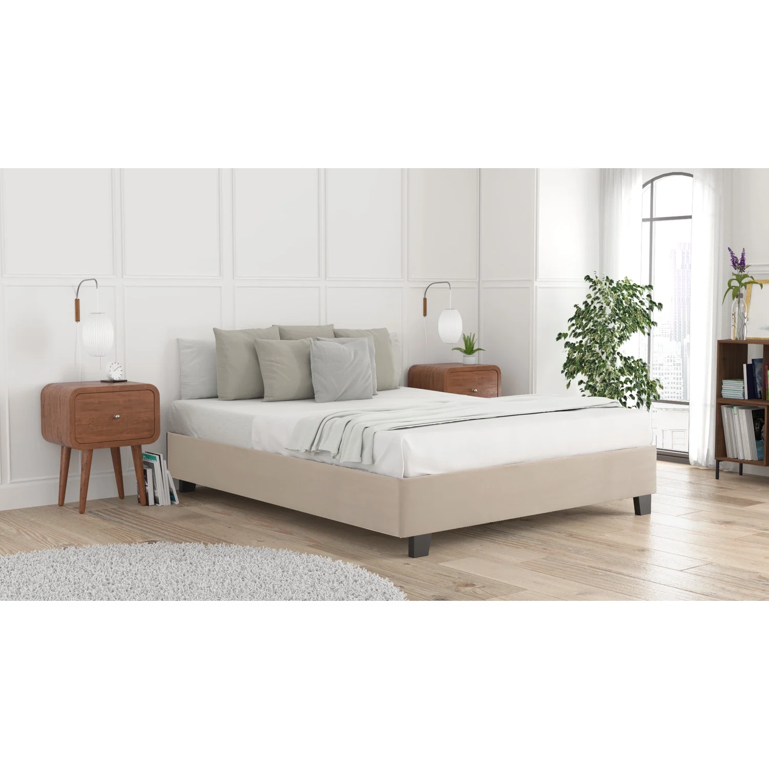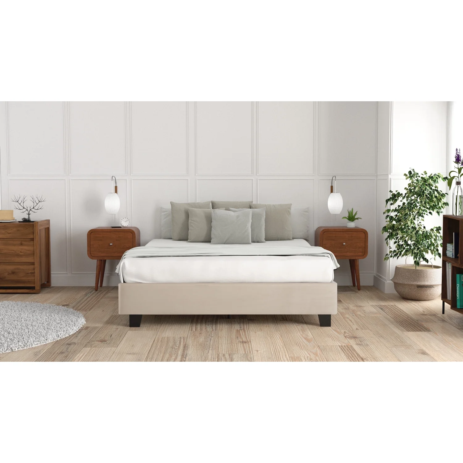 Gizoon Queen/ Full Wingback Platform Bed Frames with Under-bed Storage Beige - Queen