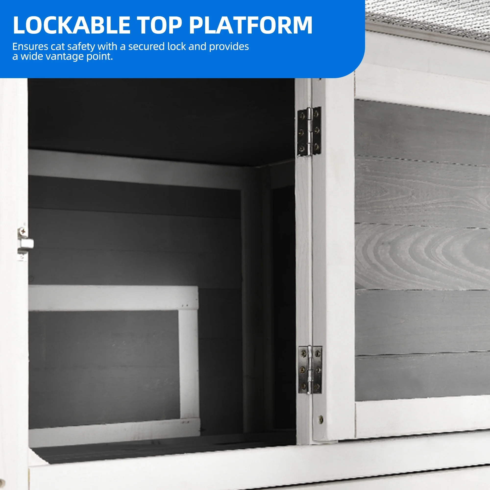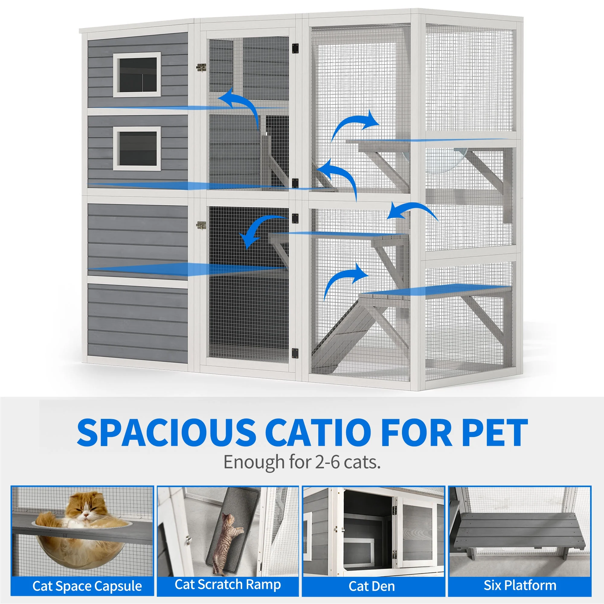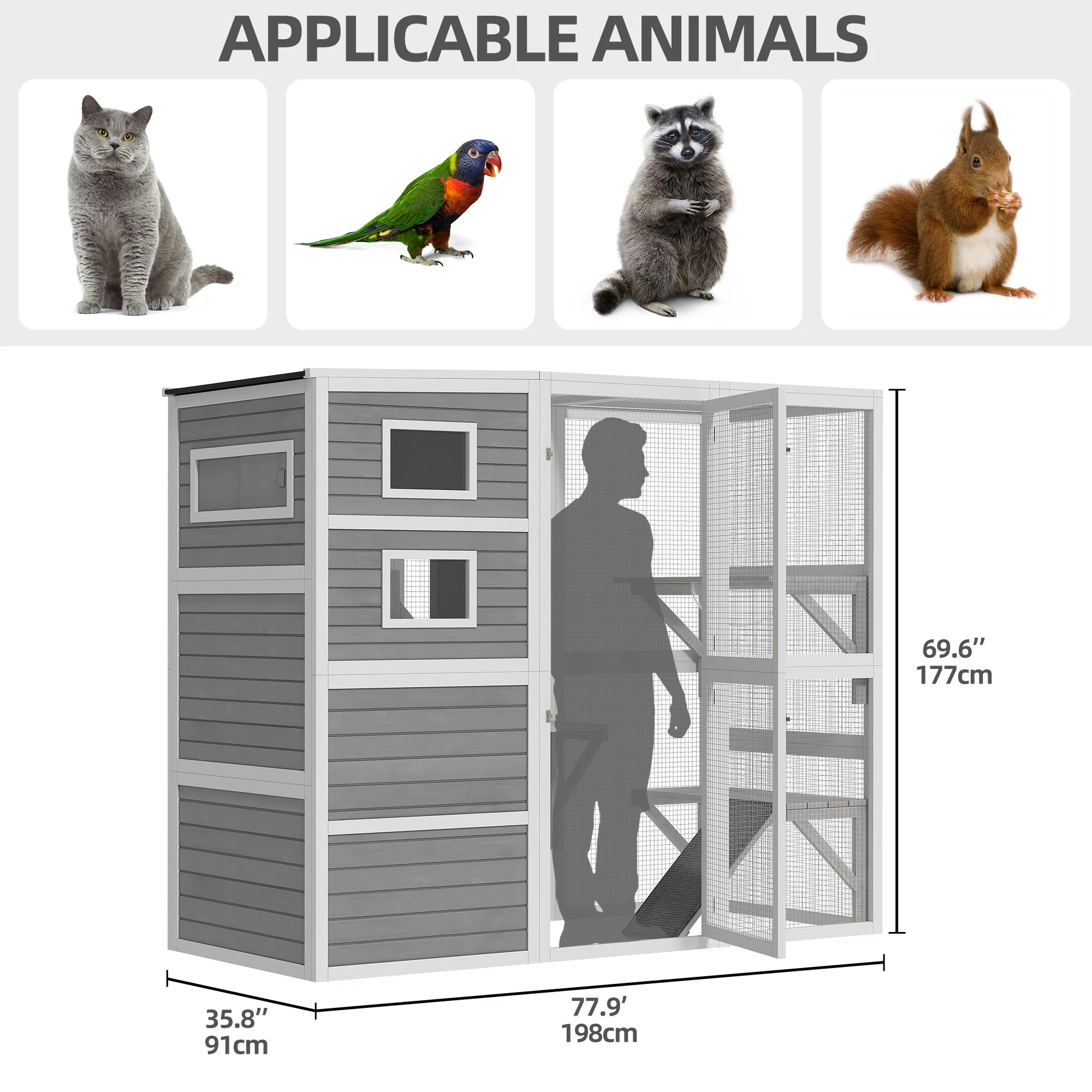 Dextrus 77.9" Catio Outdoor Cat Enclosure Large Cat House for Mulitiple Cats Walk in Cat Cage with Tarp Roof, Gray-White