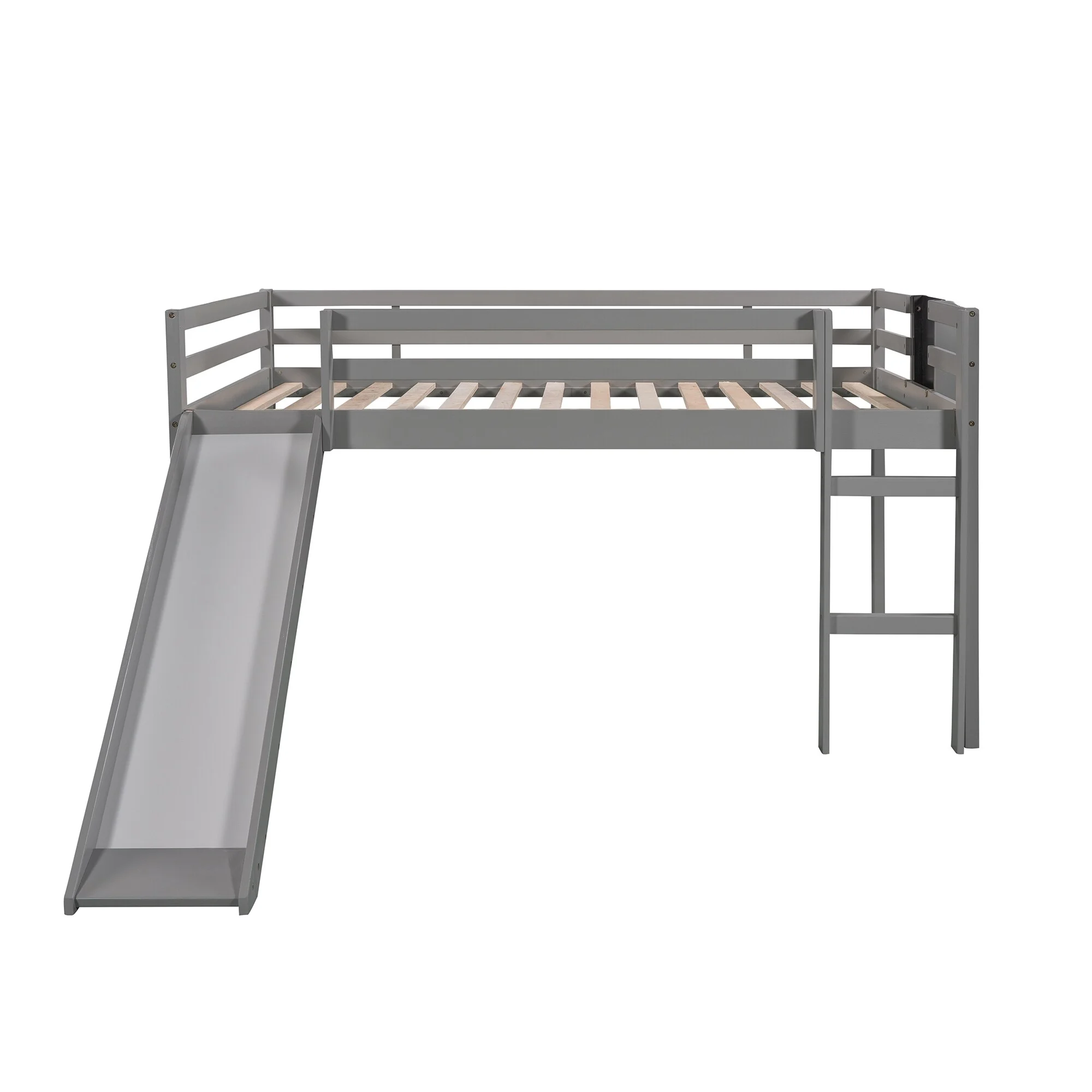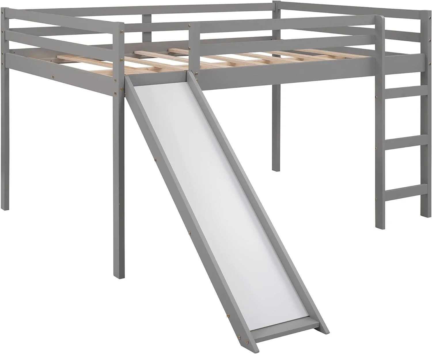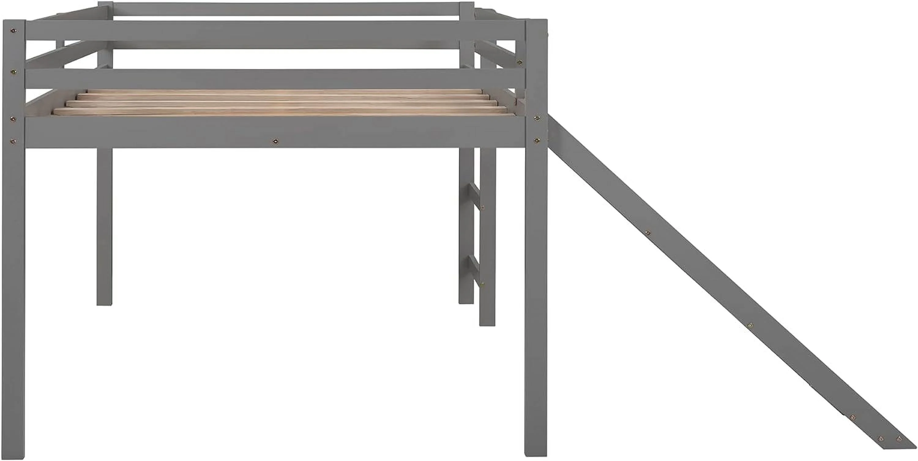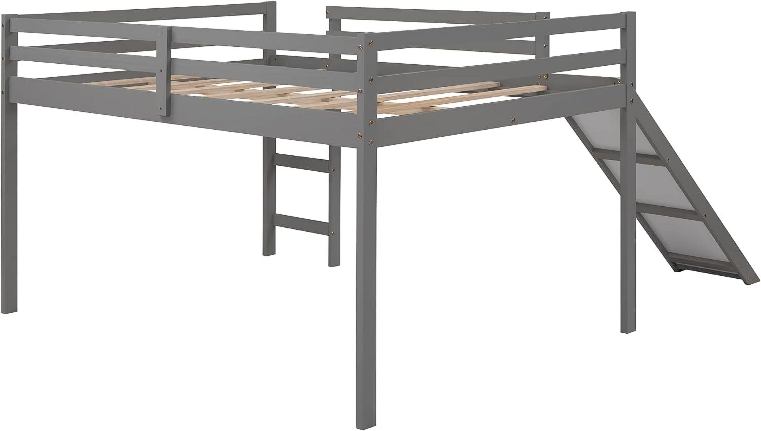 Full Size Low Loft Bed With Slide And Built-In Ladder, Full Loft Bed For Kids Boys Girls(Gray Full Loft)