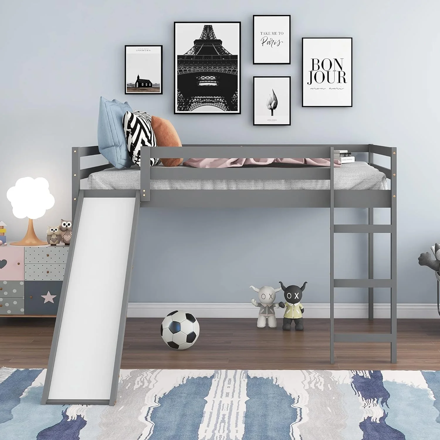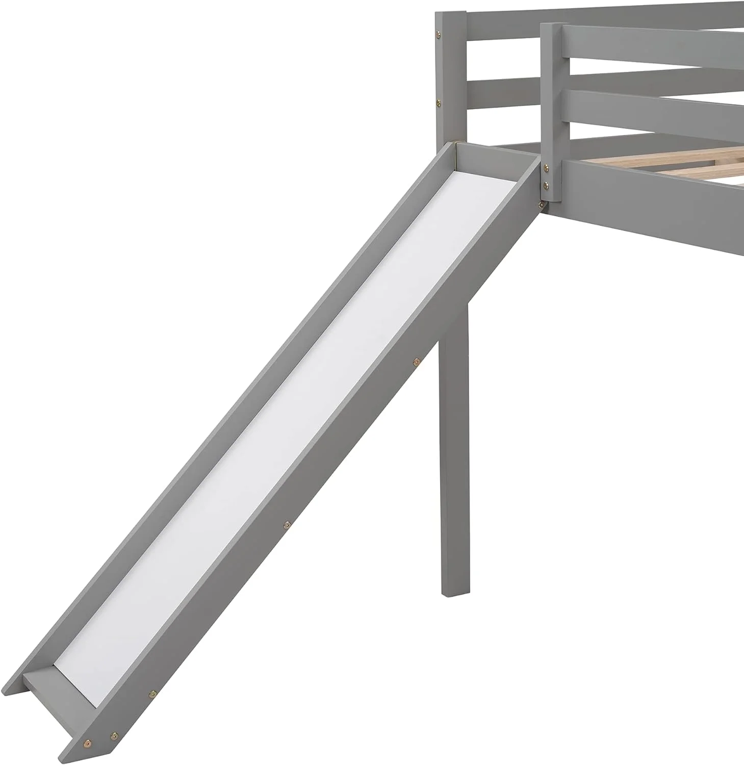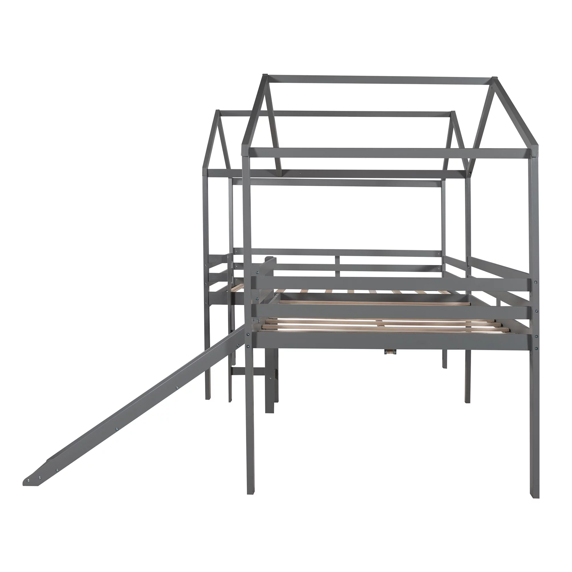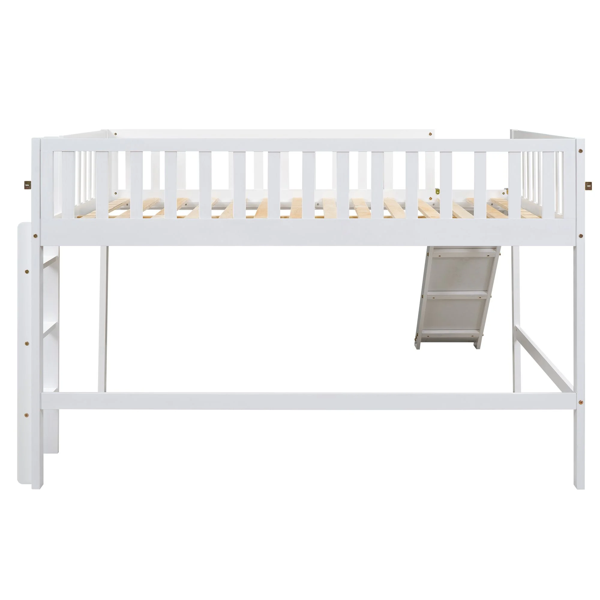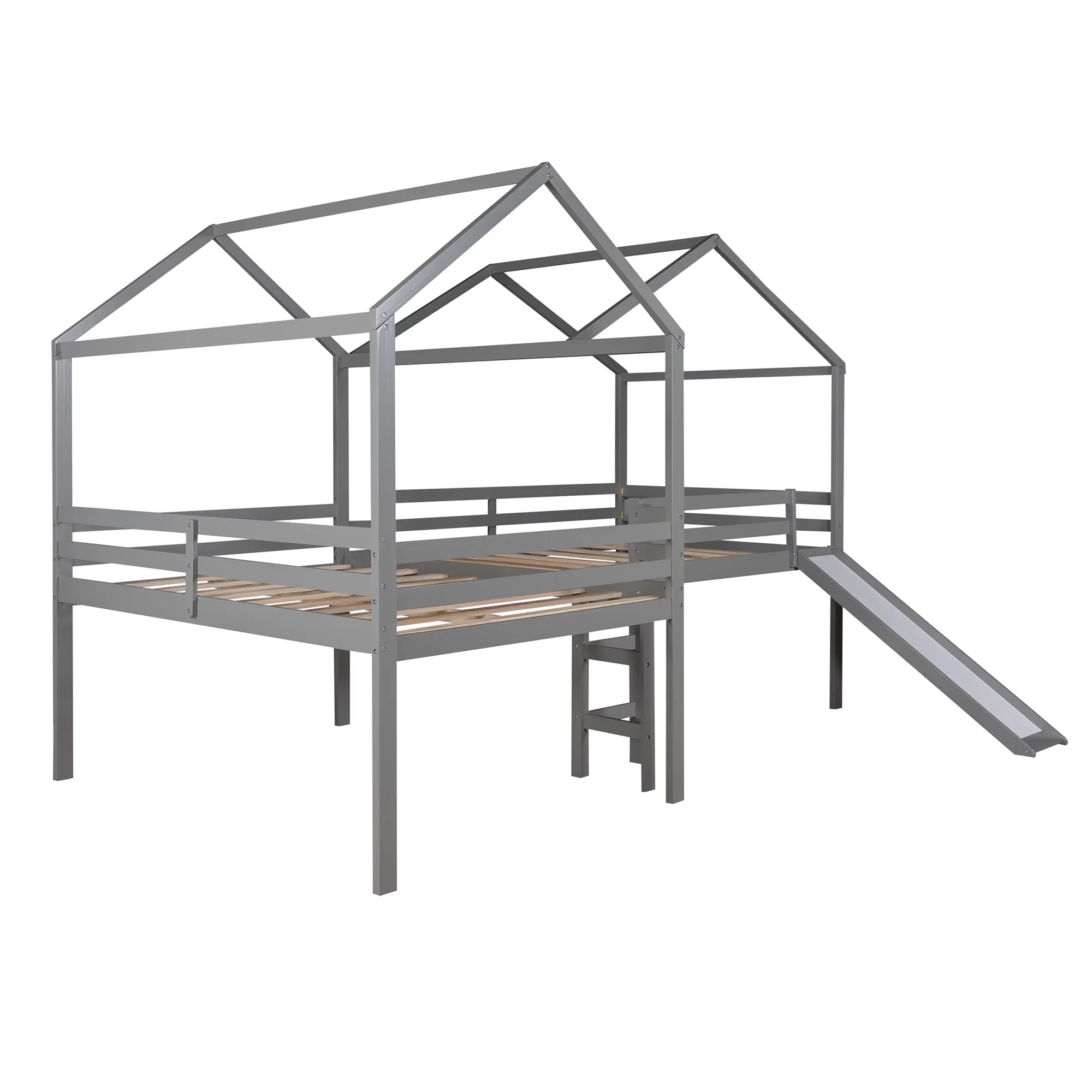 Full Size Low Loft Bed With Slide And Built-In Ladder, Full Loft Bed For Kids Boys Girls(Gray Full Loft)