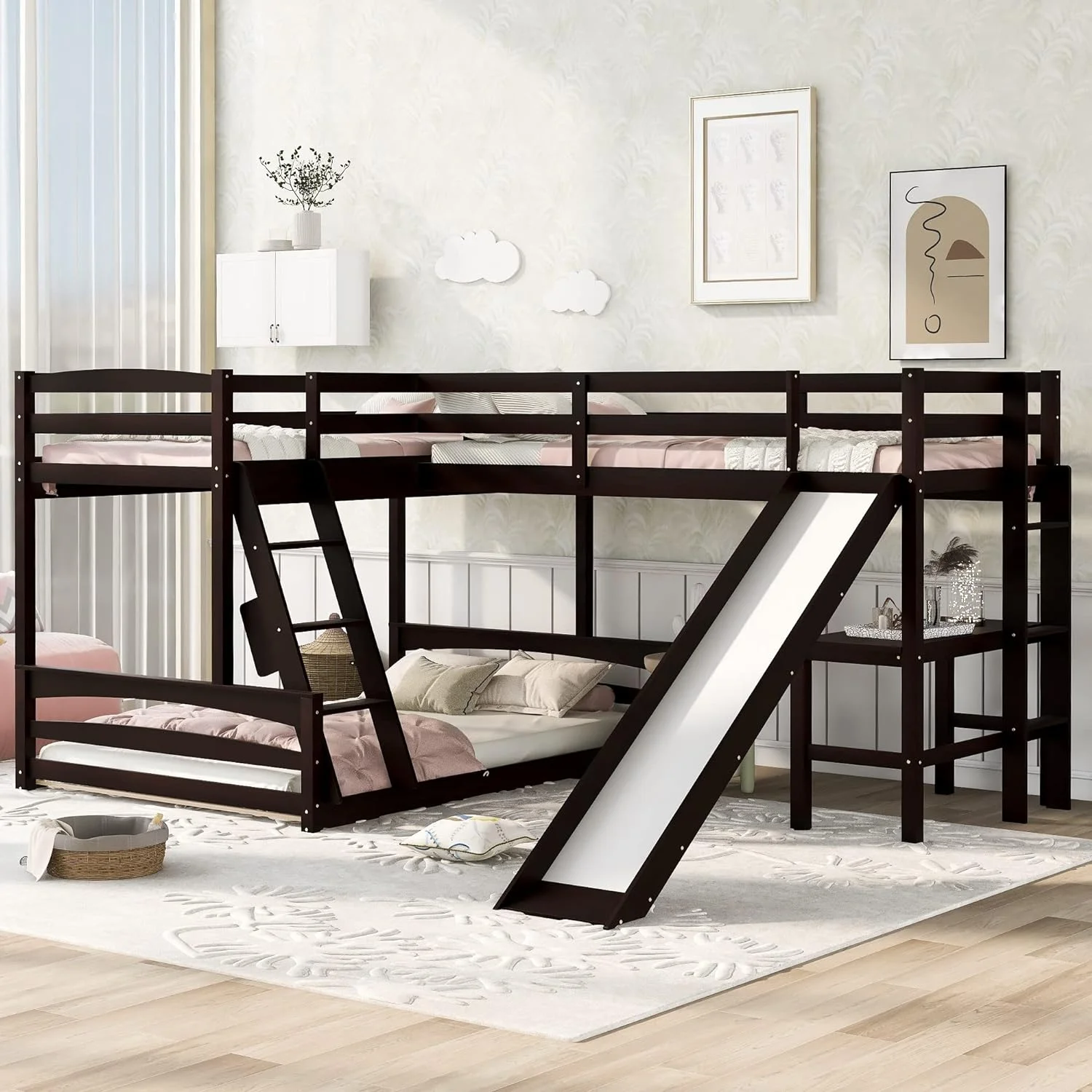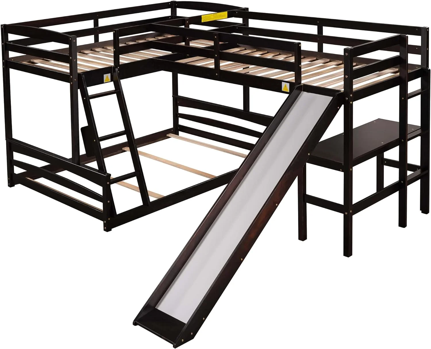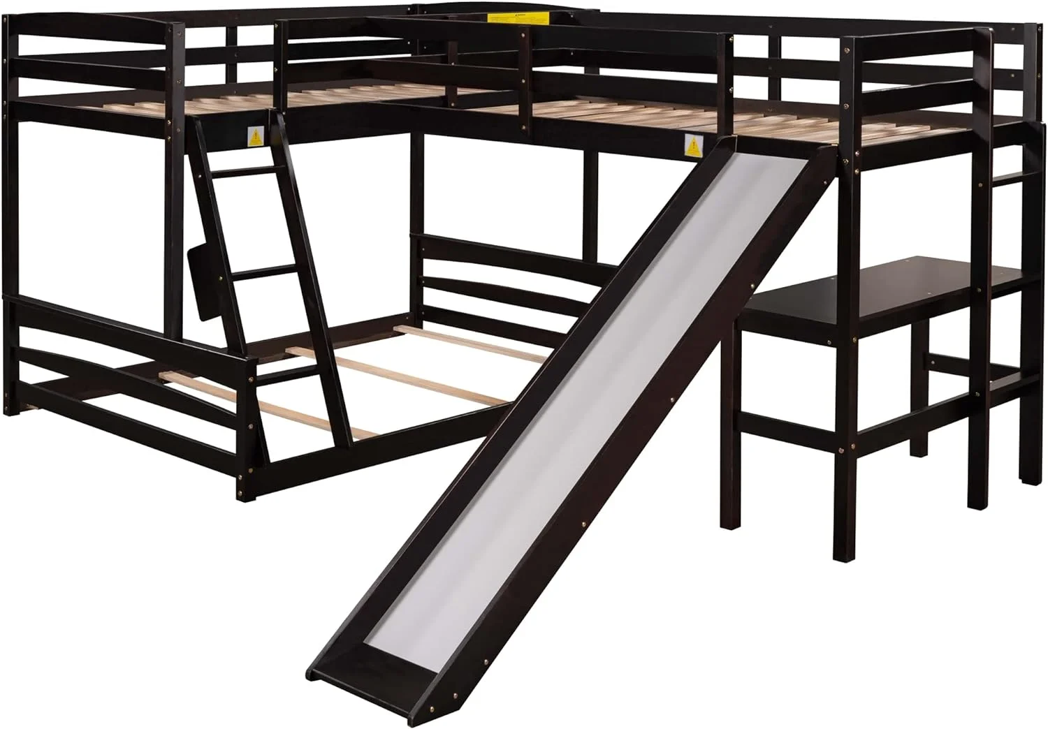 3 I 1 Buk Bed Over Full Buk Bed With Size Loft Bed With Desk Ad Slide For Kids Boys Girls,Full-Legth Guardrail, Espresso