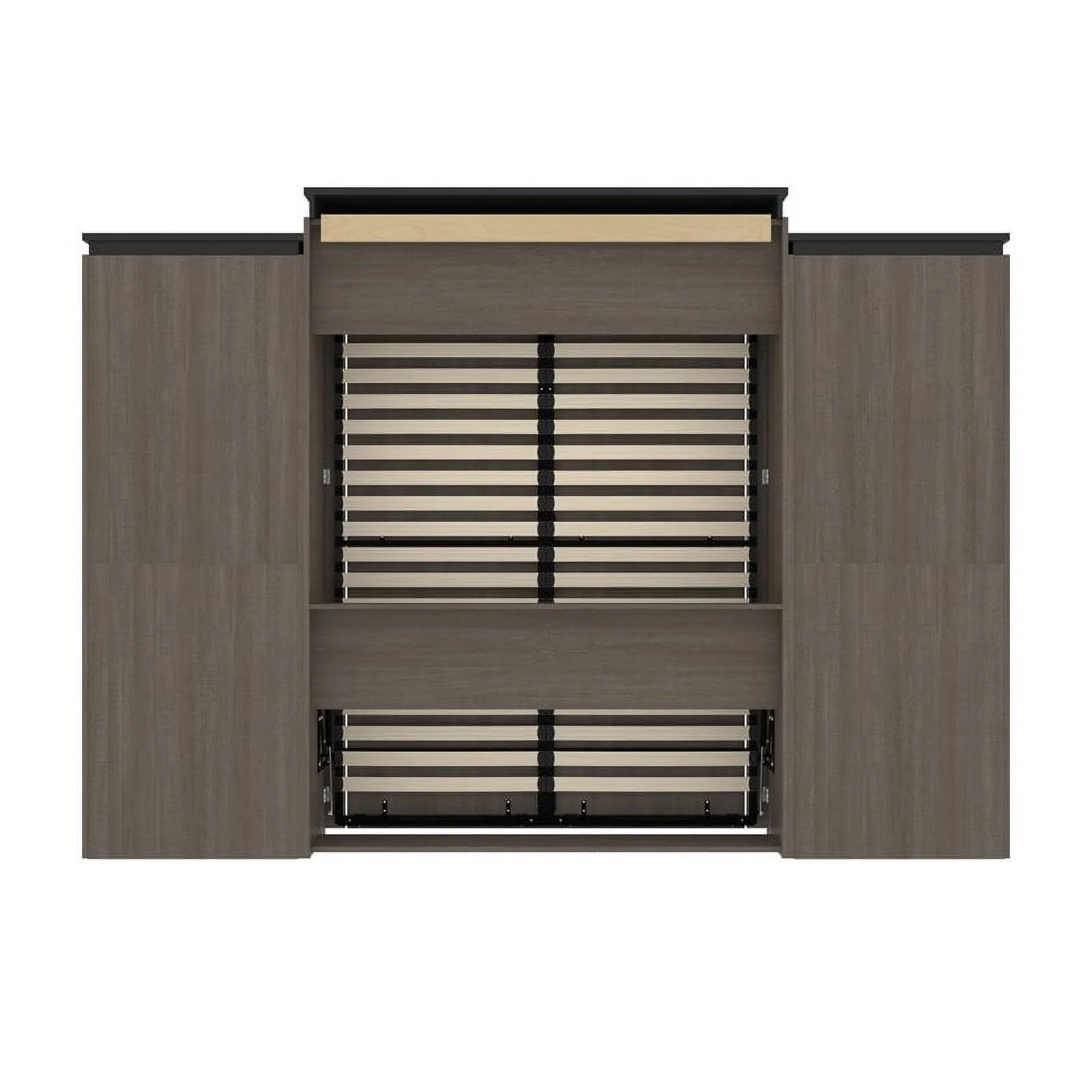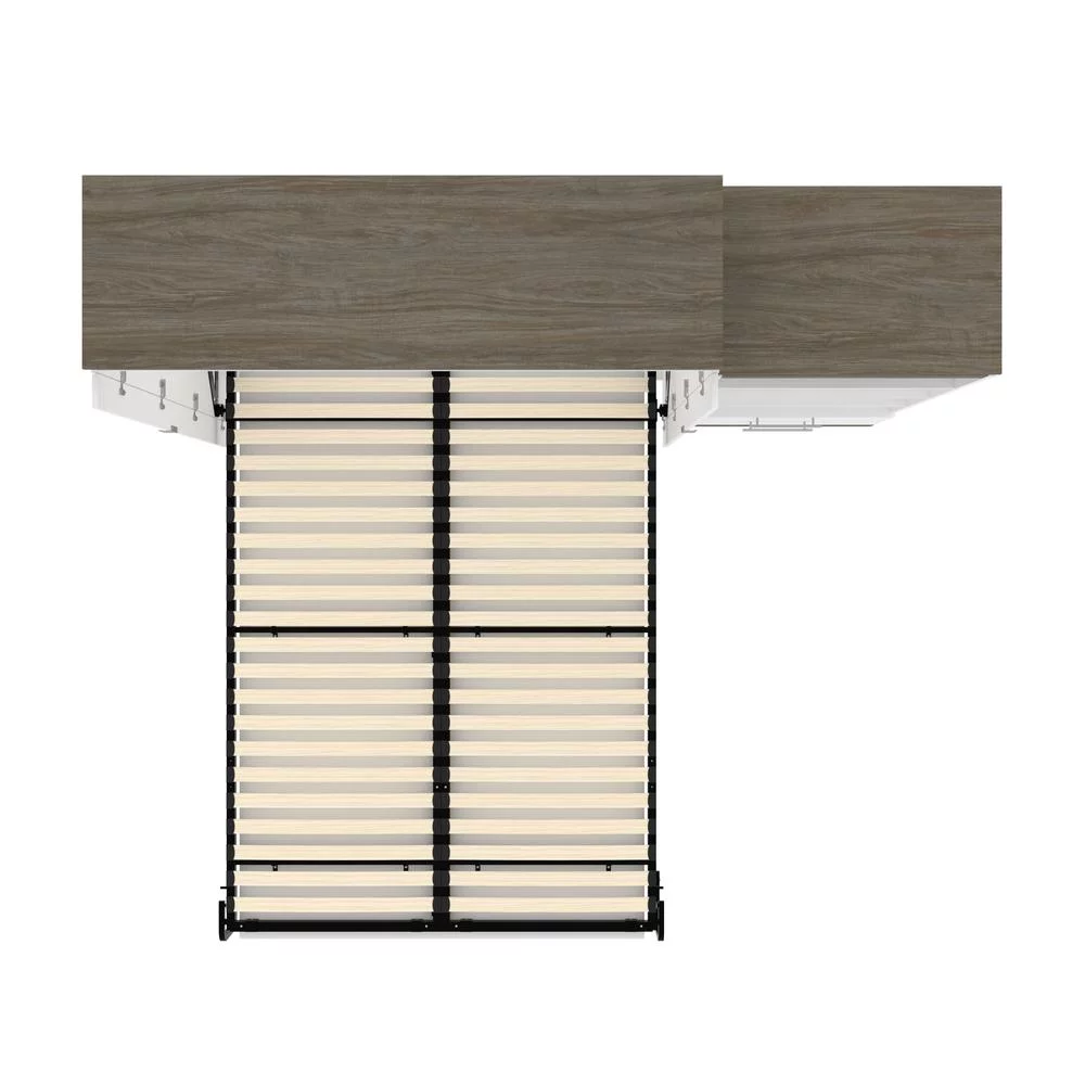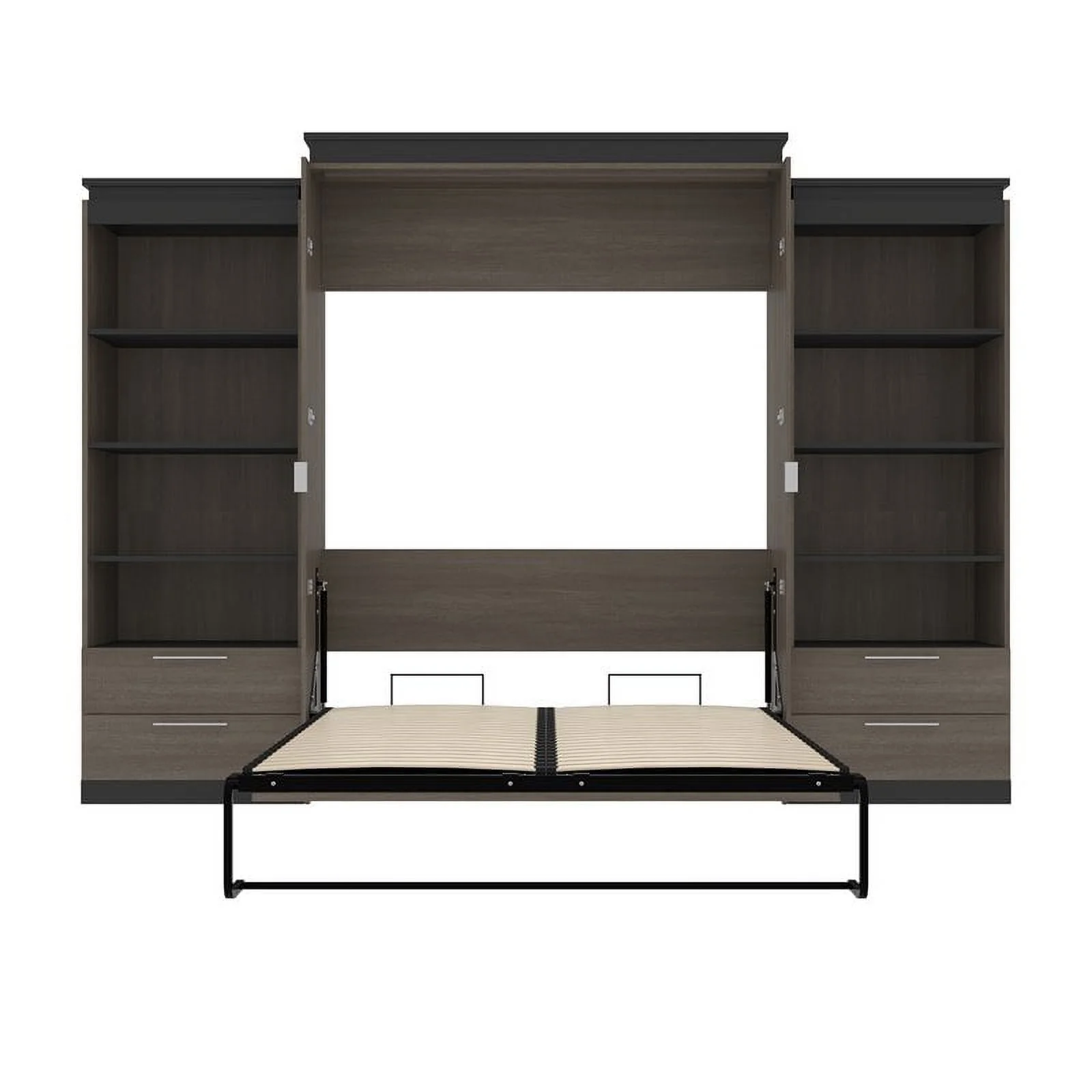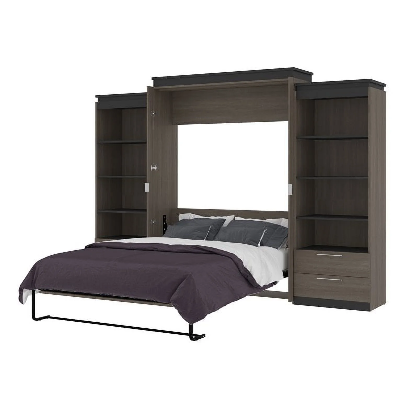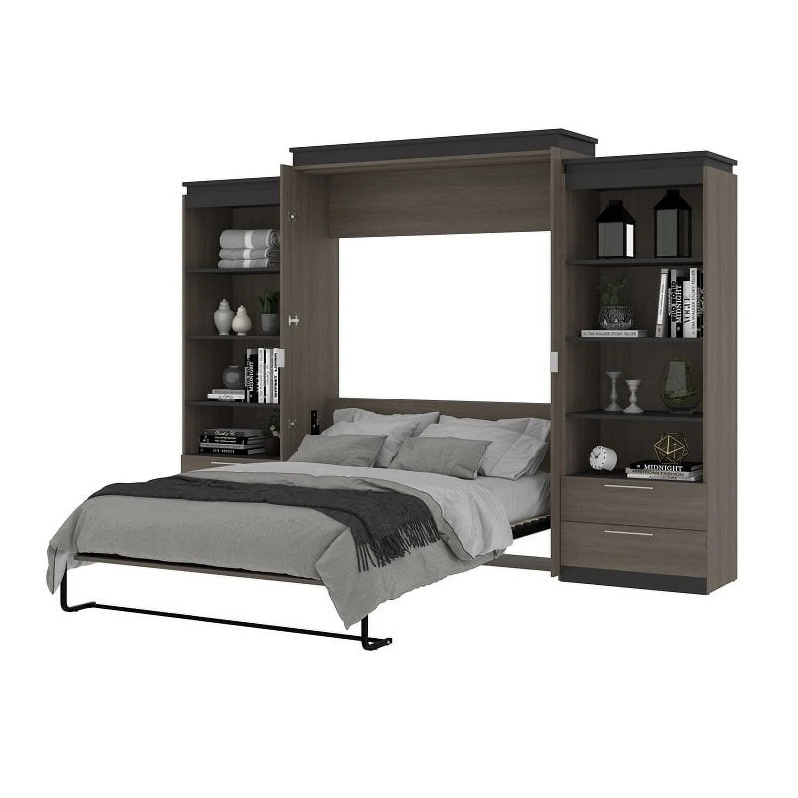 Atlin Designs 124" Queen Murphy Bed and 2 Bookcases with Drawers in Bark Gray