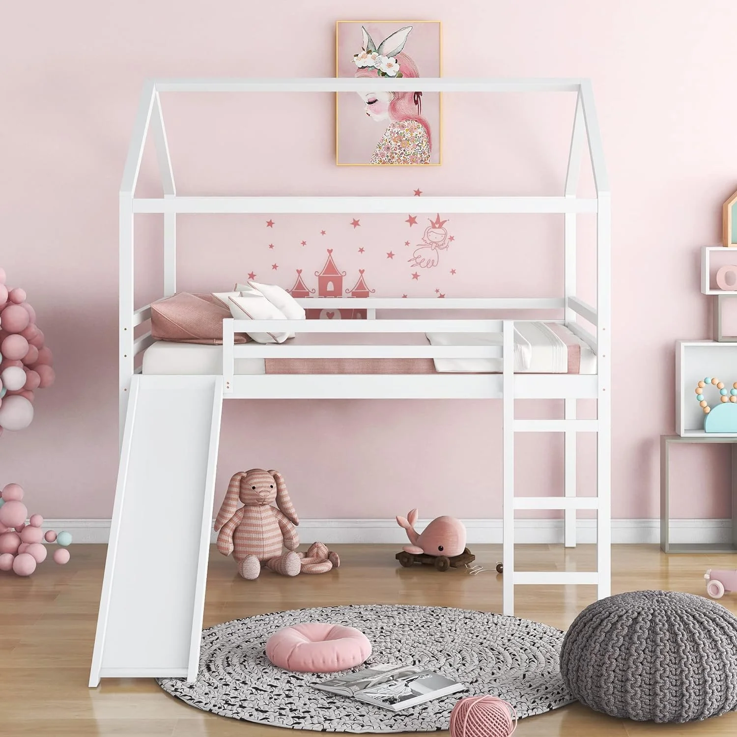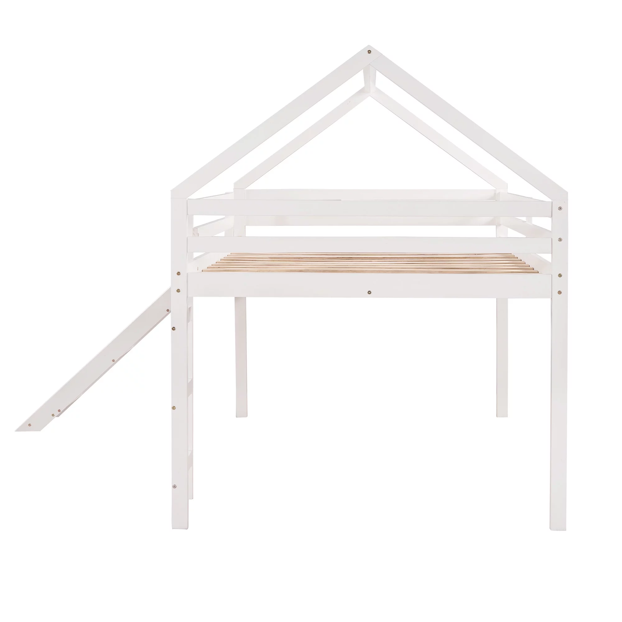 Full Size Loft Bed with Slide, House Bed with Slide,White(OLD SKU :WF281159AAK)
