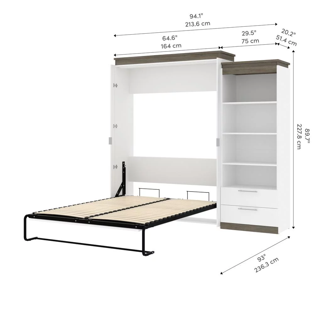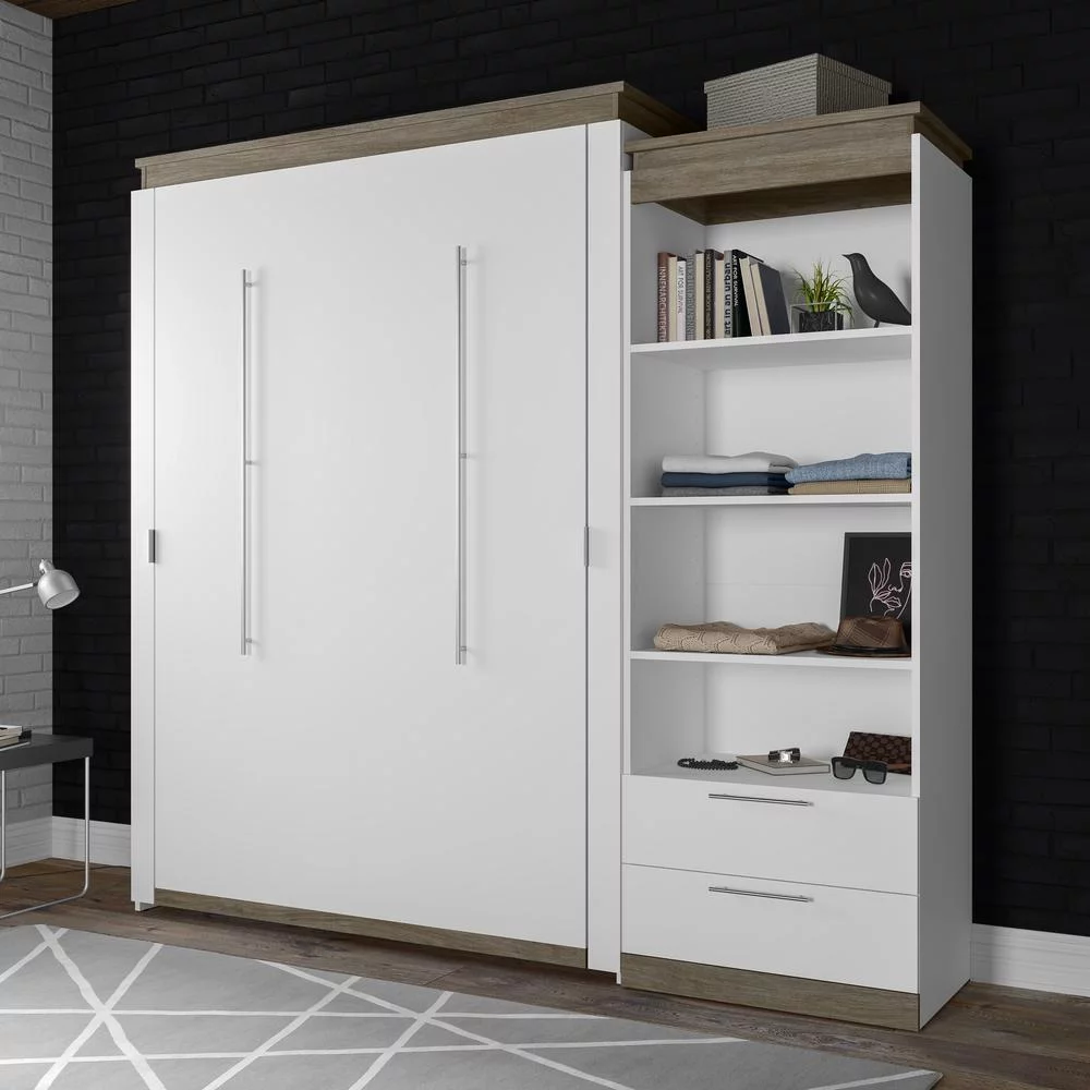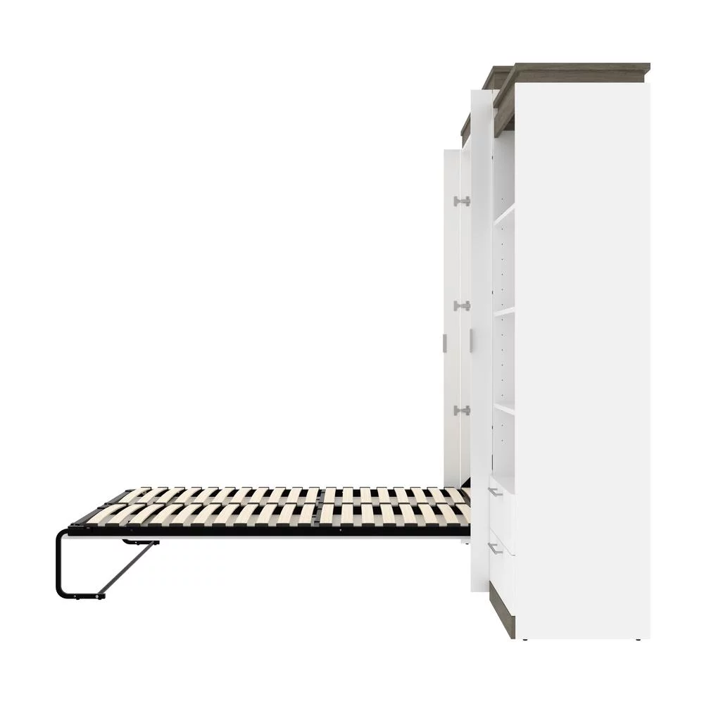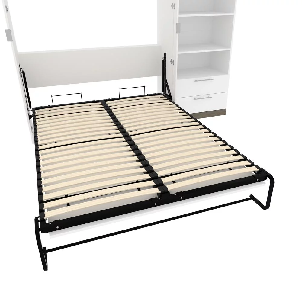 Bestar Orion 95" Queen Murphy Bed and Bookcase with Drawers in White