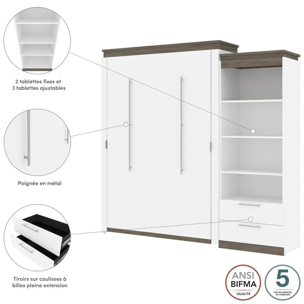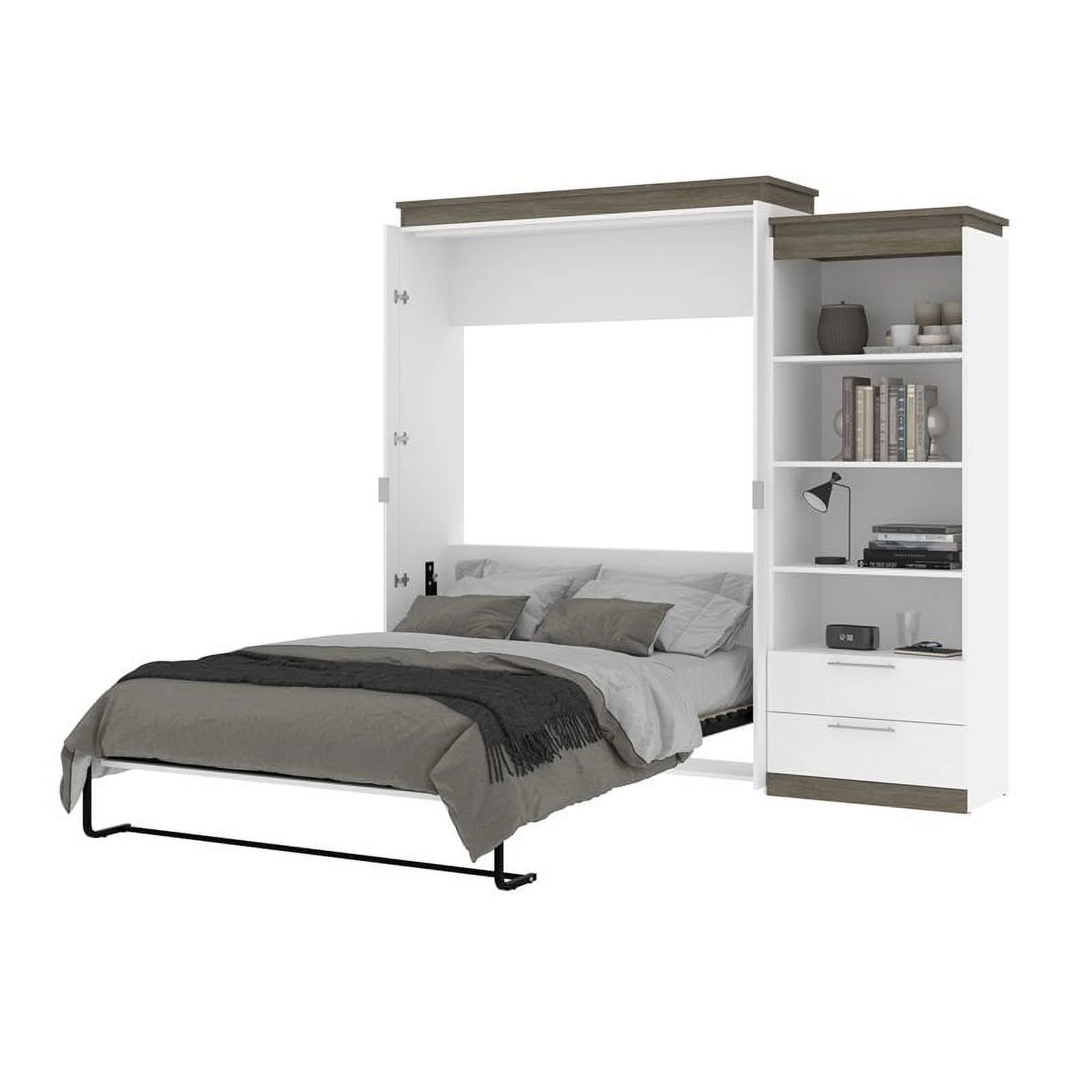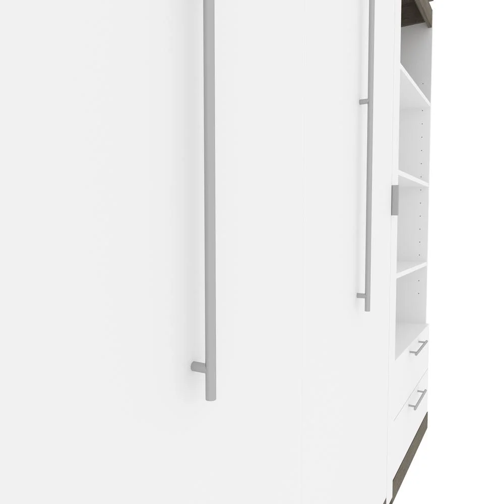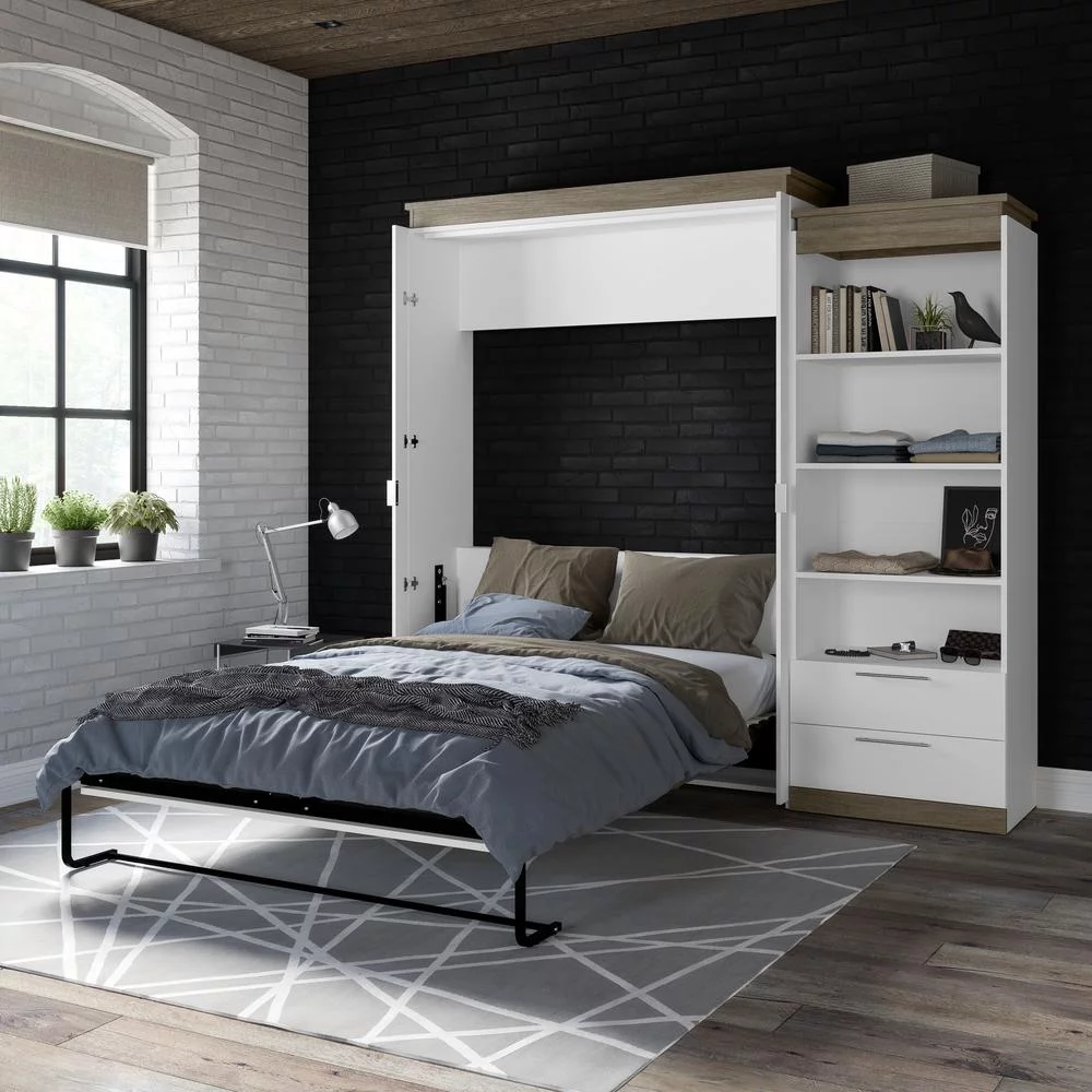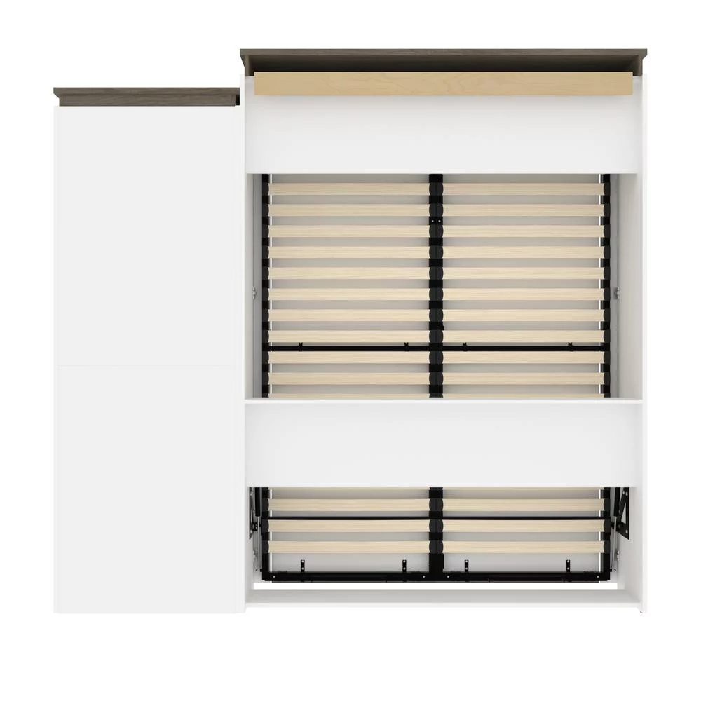 Bestar Orion 95" Queen Murphy Bed and Bookcase with Drawers in White