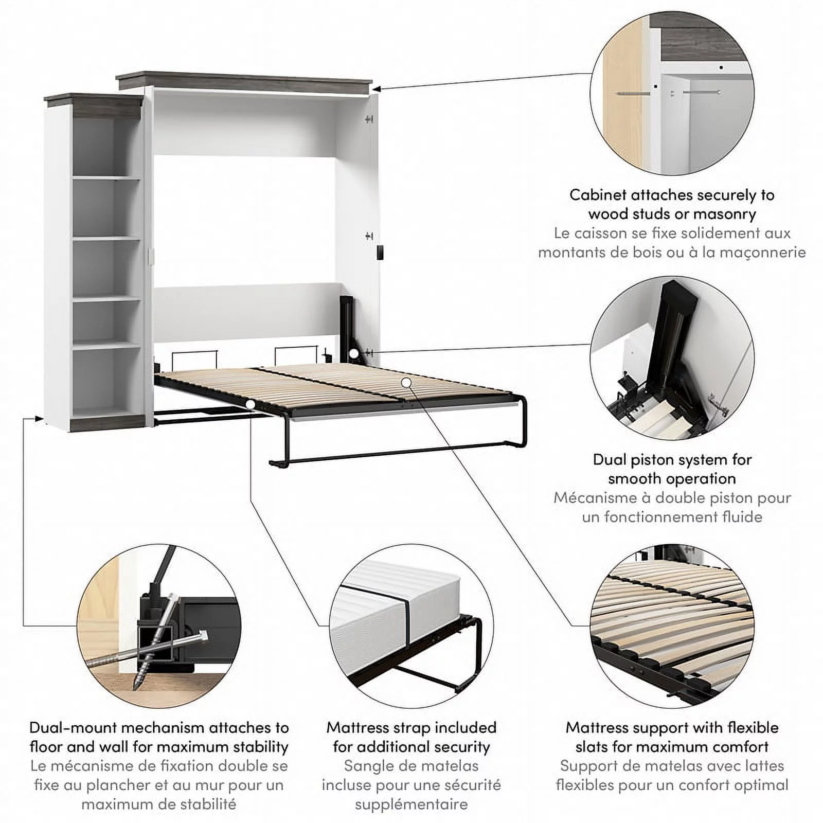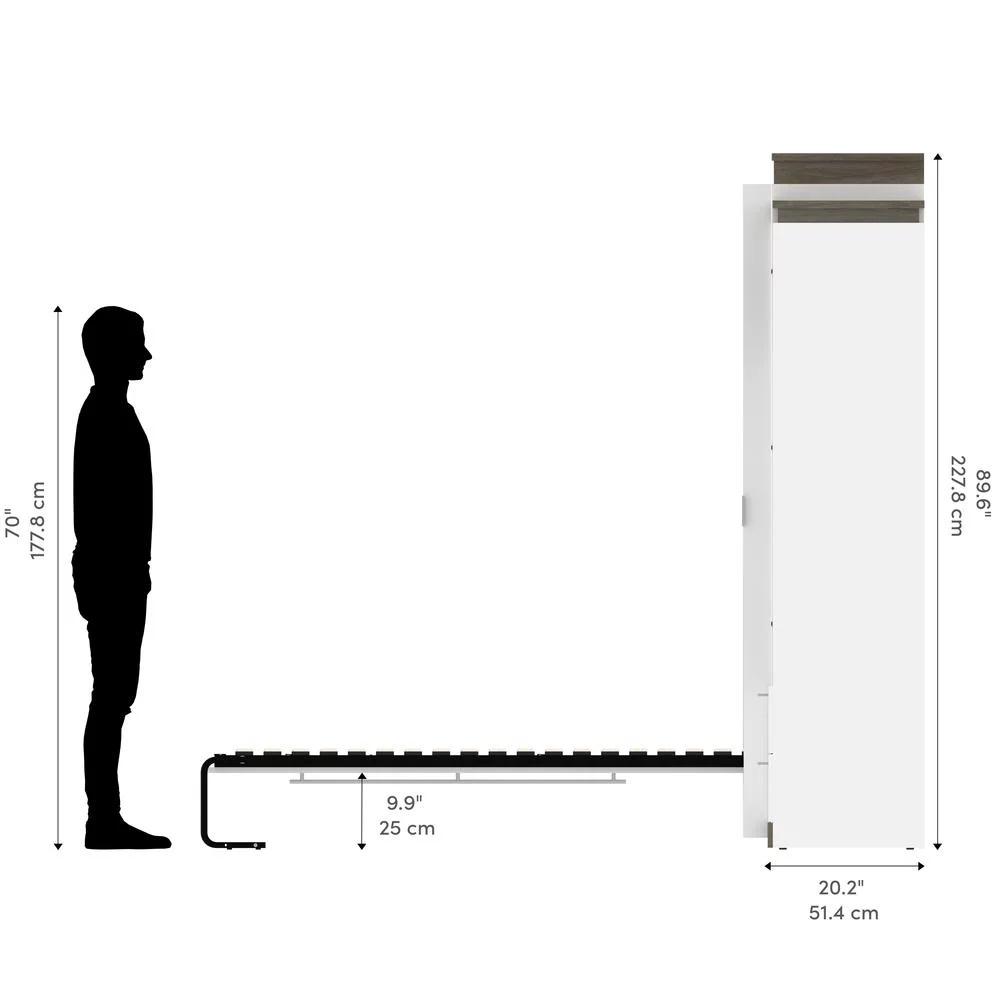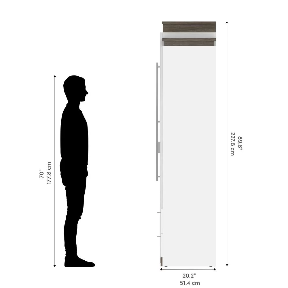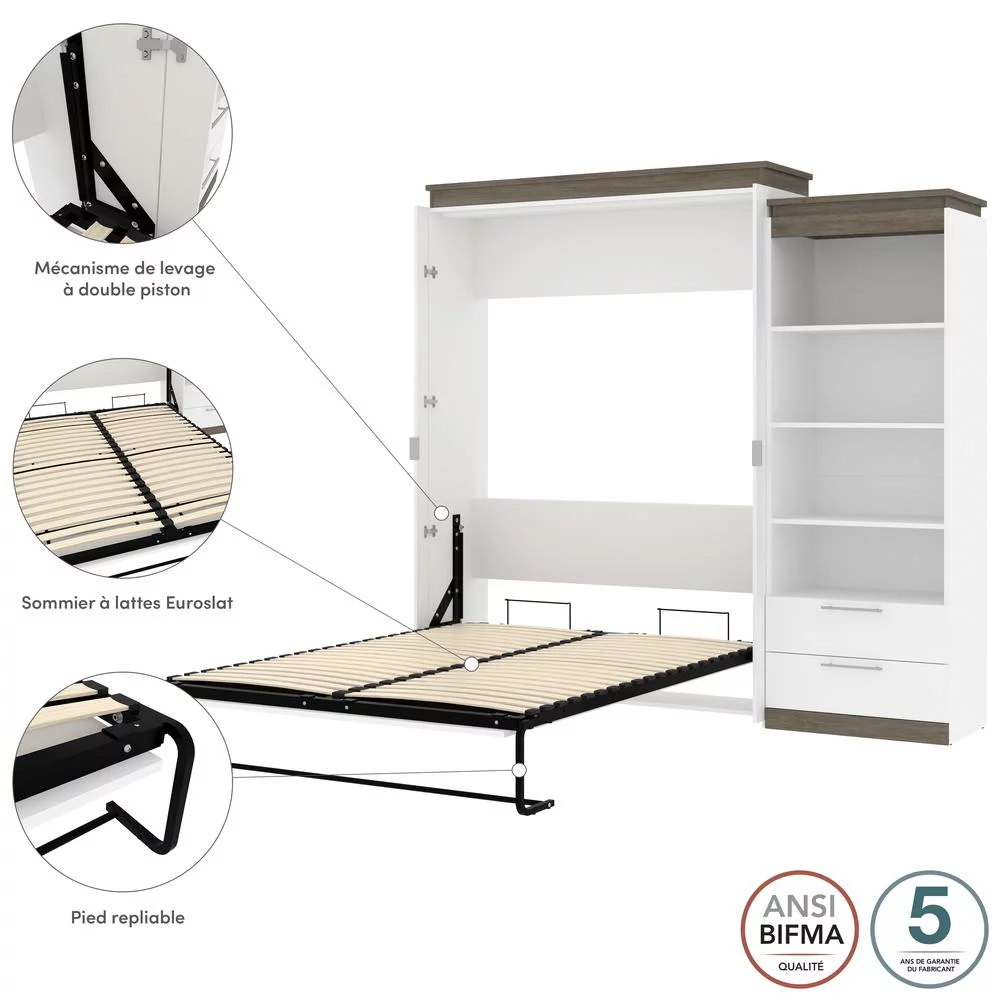 Bestar Orion 95" Queen Murphy Bed and Bookcase with Drawers in White