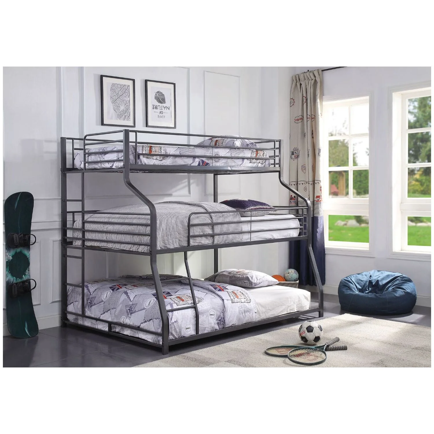 Bowery Hill Contemporary Metal Twin Over Full Slat Bunk Bed in Black