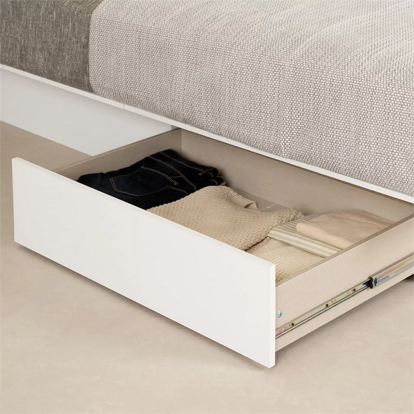 Atlin Designs 95" Queen Murphy Bed and Bookcase with Drawers in White