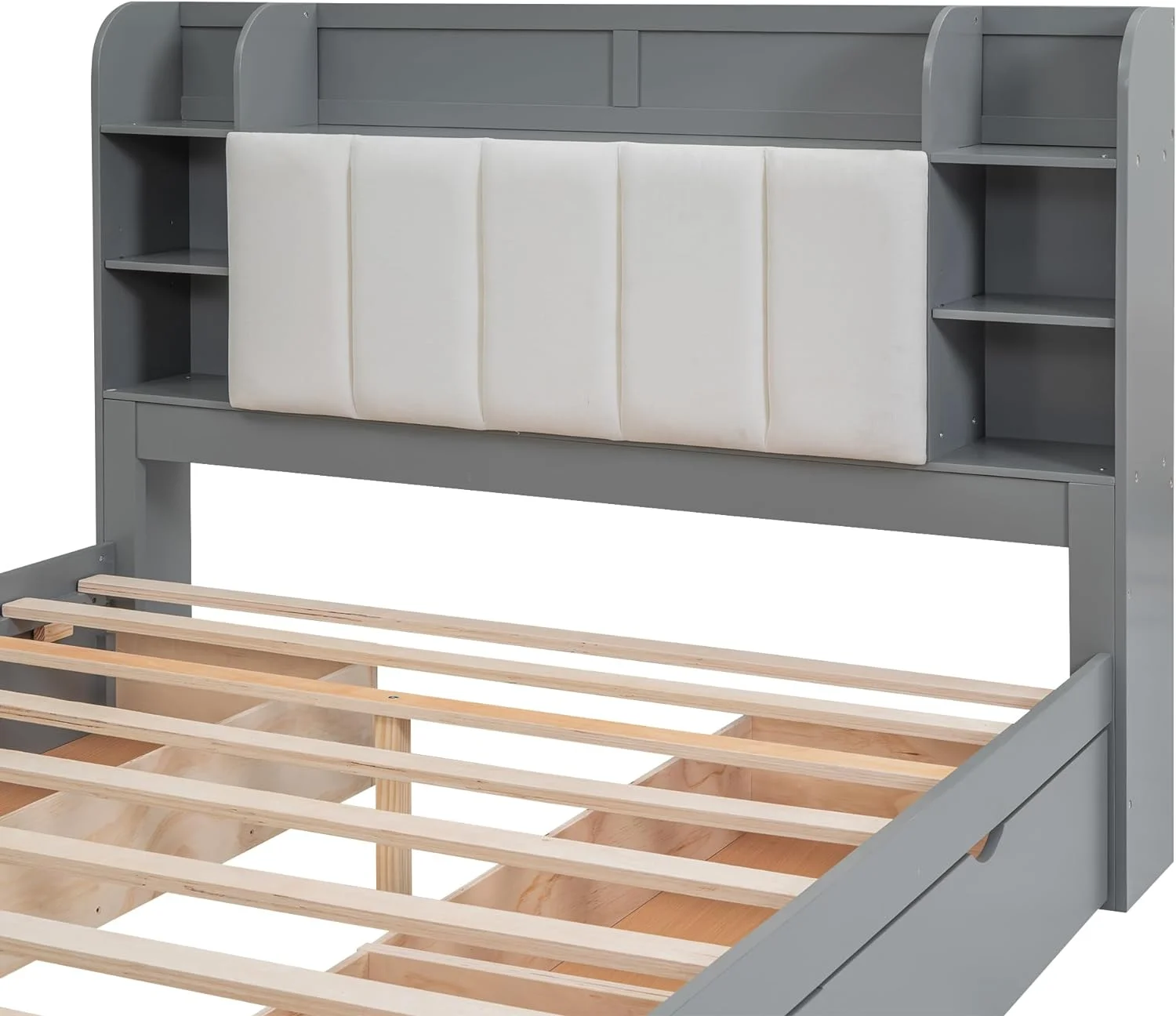 Traditional Wooden Bed with Bookcase Headboard & 5 Drawers, Silver - Queen Size