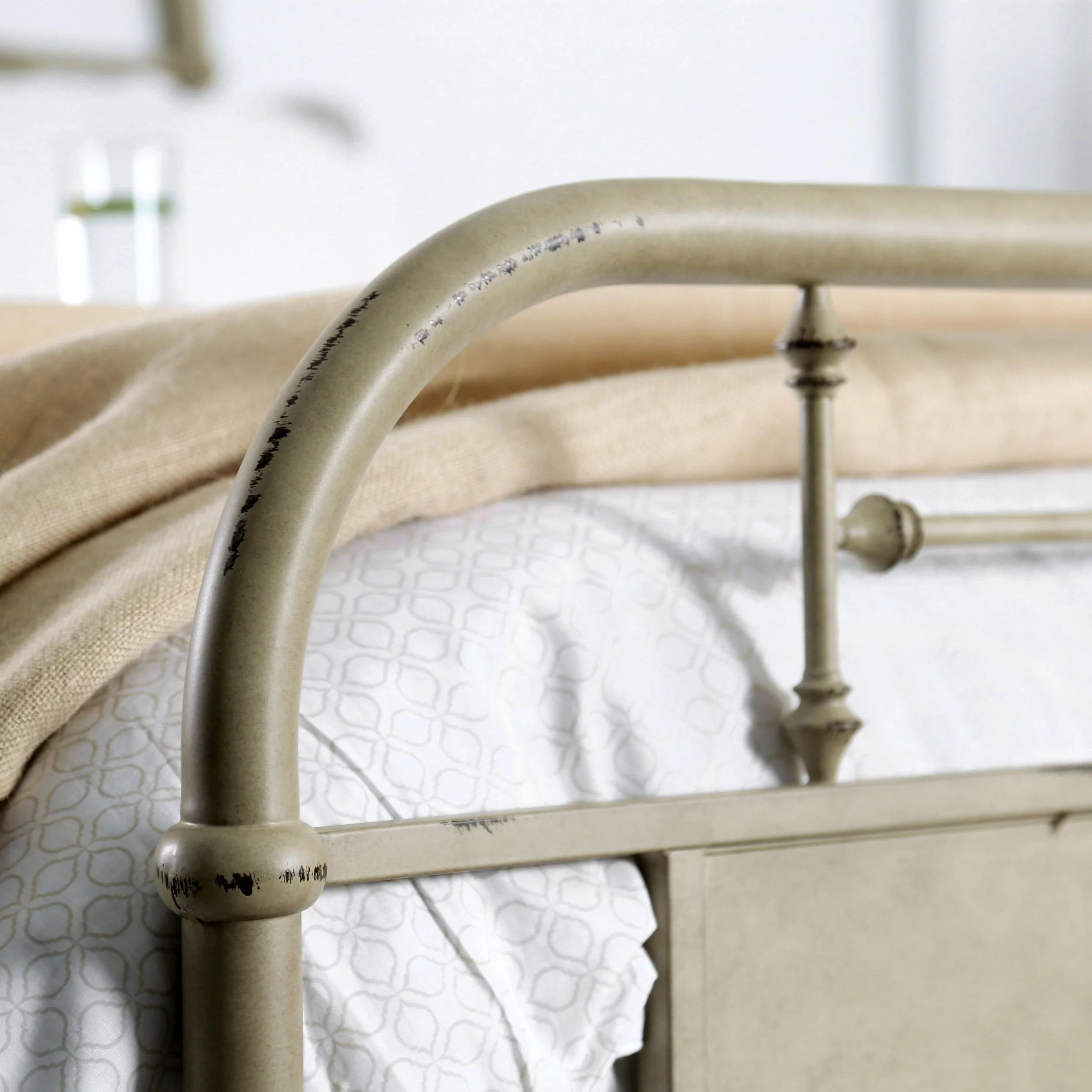 Furniture of America Ways Industrial Metal Panel Bed with Support Legs Distressed White Eastern King