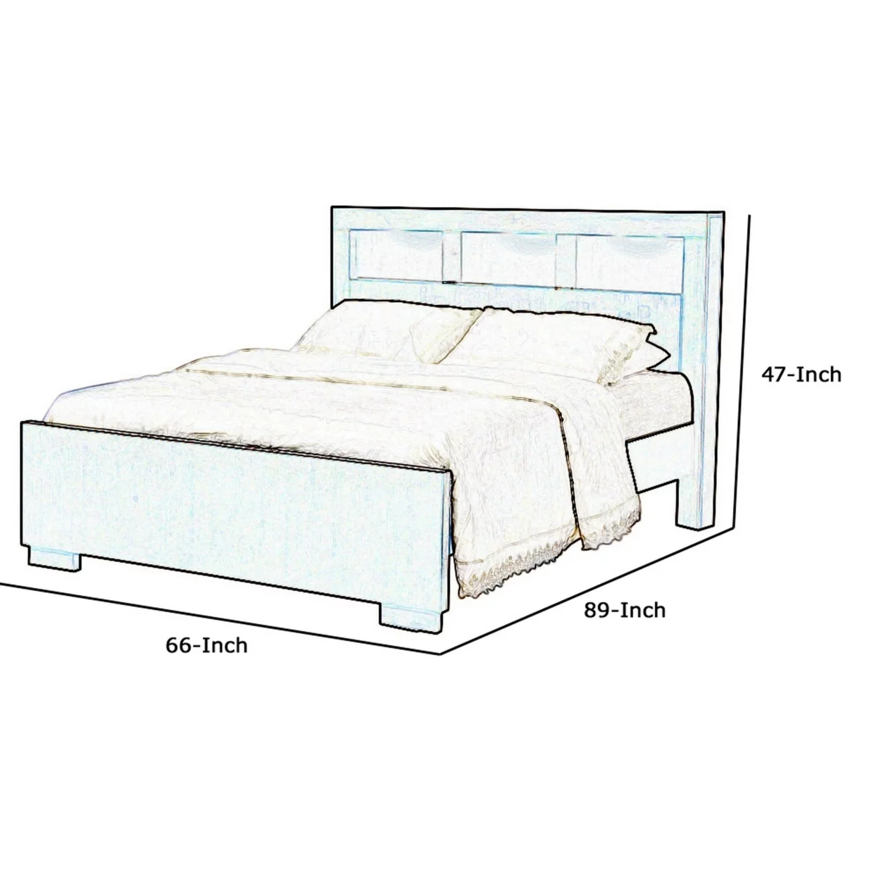 3 Open Bookcase Queen King Size Bed with Soft Light Brown- Saltoro Sherpi