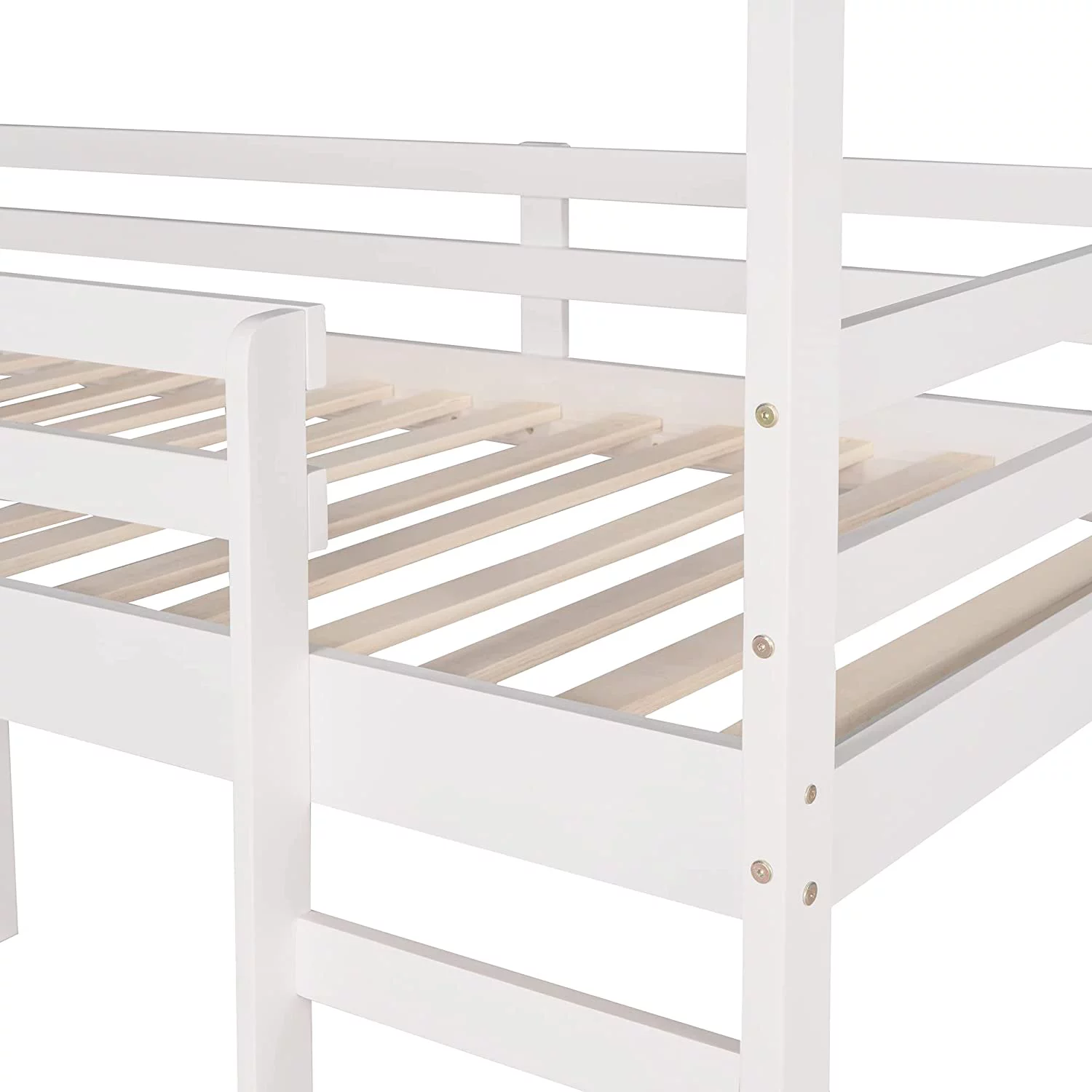 Anself Loft Bed with Staircase, Storage, Slide, Twin size, Full-length Safety Guardrails, No Box Spring Needed, White