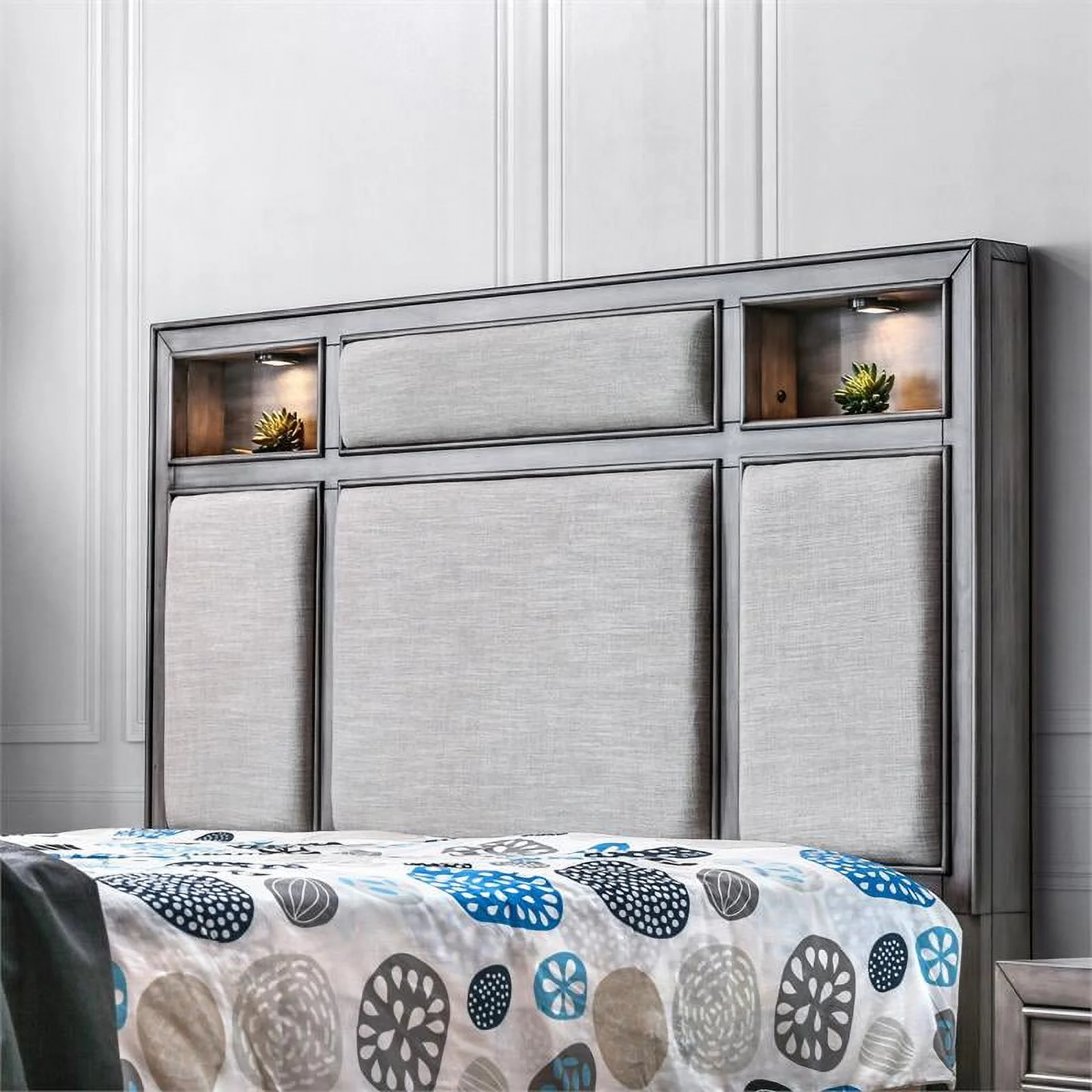 Furniture of America Cartagena Solid Wood Queen Bookcase Bed in Gray