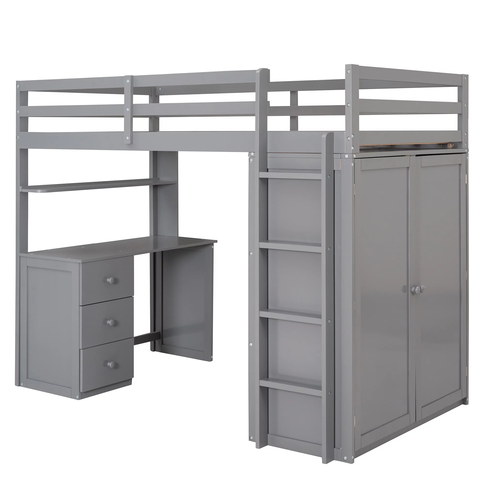 Home Square 2-Piece Set with Double Dresser & King Size Platform Bed in Gray