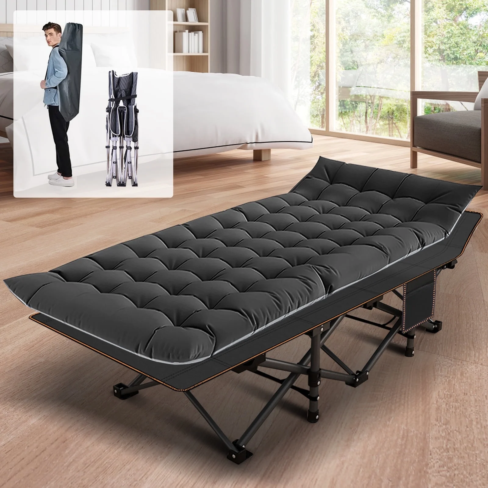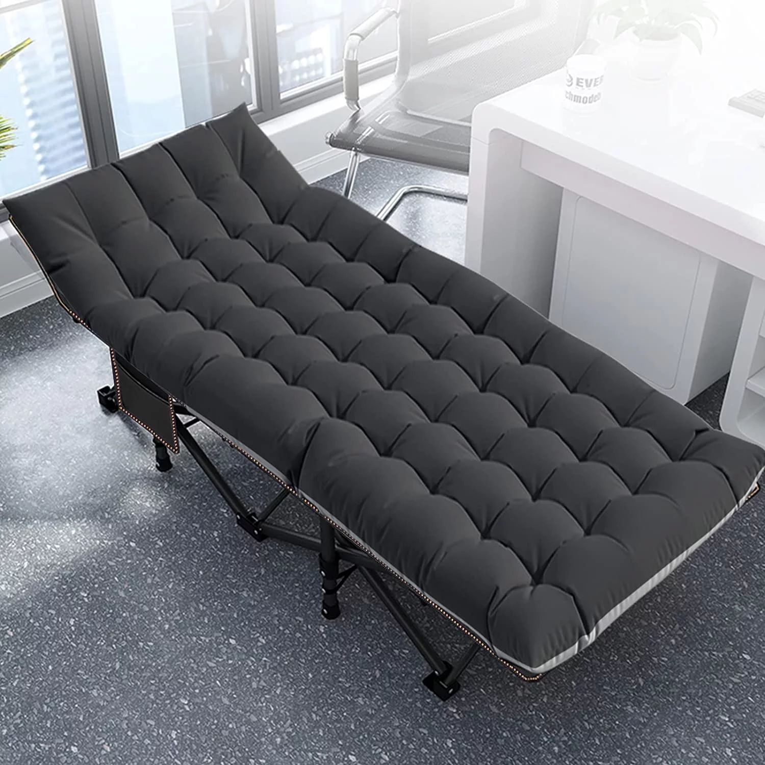 Olly Modern Queen Size Bed Heavy Steel Metal Frame Slatted Matte Black