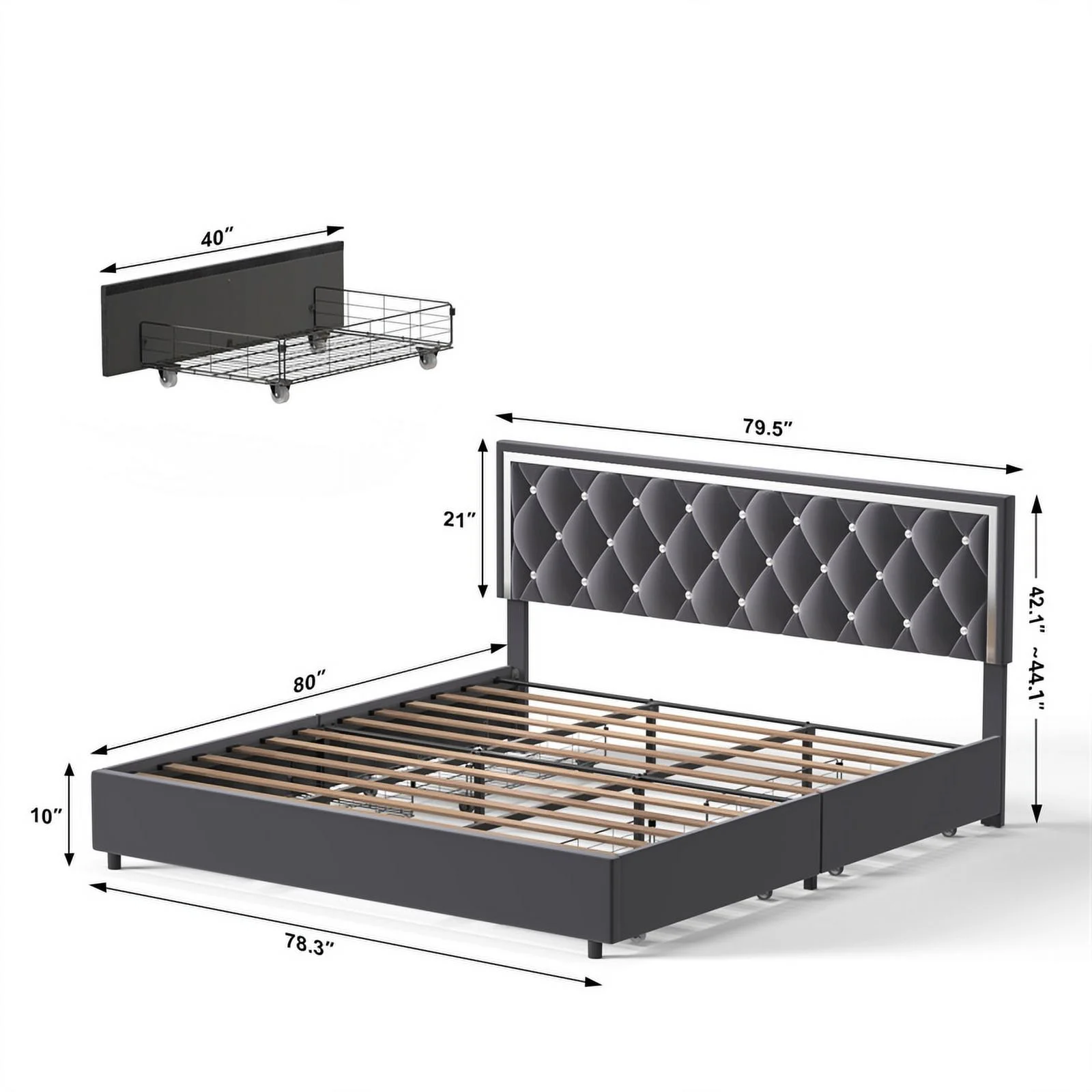 East West Furniture 2 Piece Fannin Platform Bedroom Set - Denim Blue, Black & Navy Blue