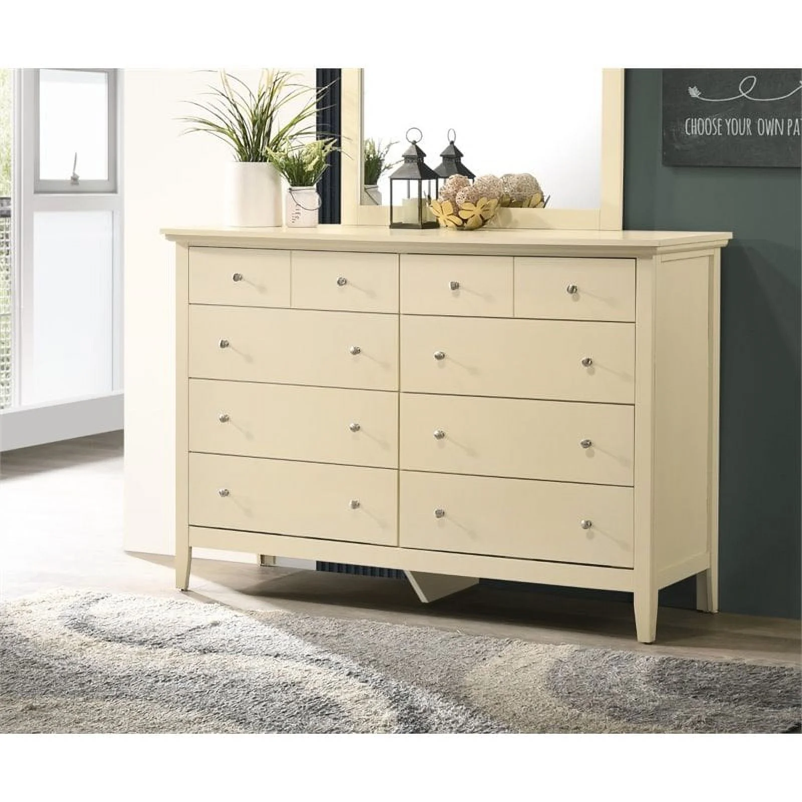 Home Square 2-Piece Set with 8-Drawer Dresser and 3-Drawer Nightstand in Beige