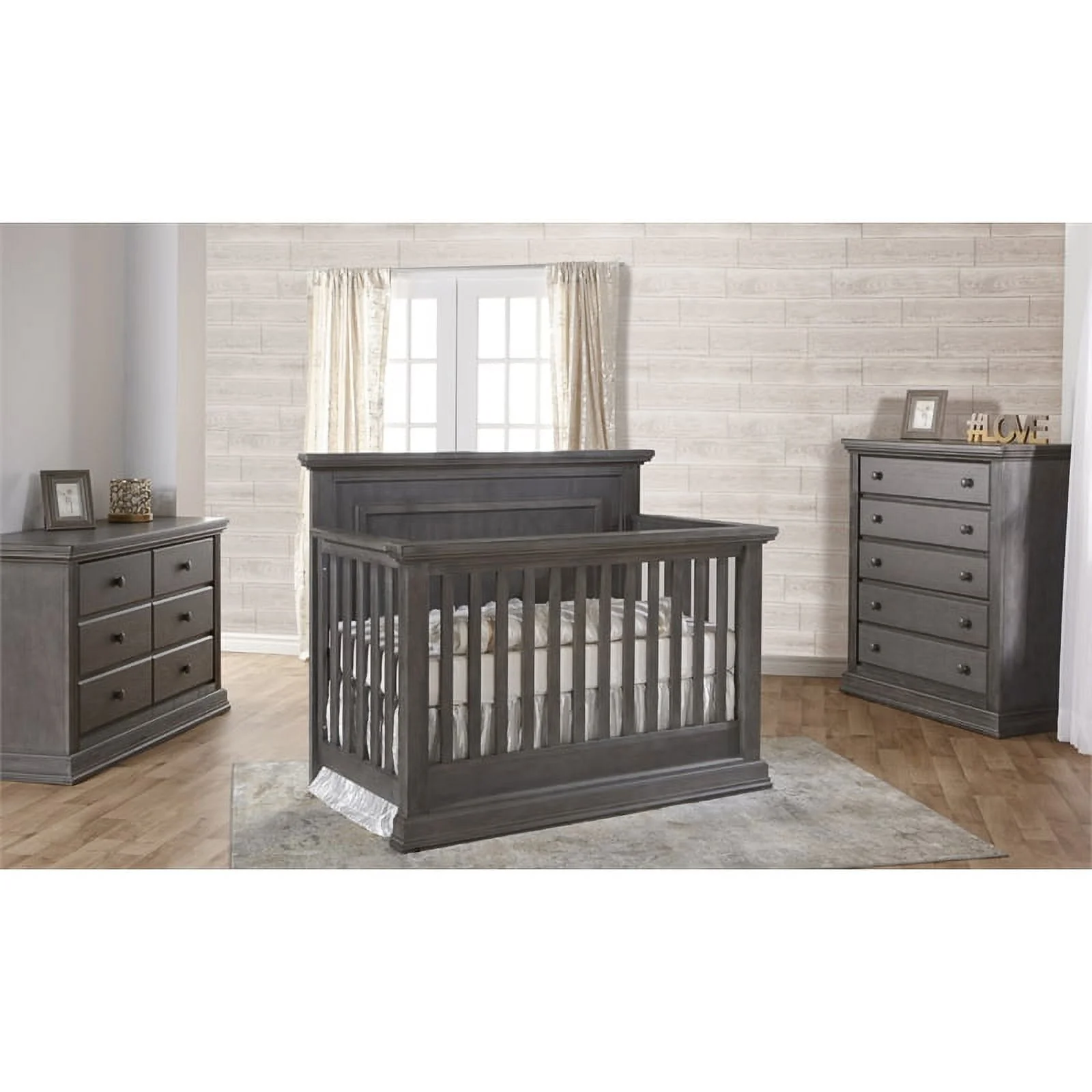 East West Furniture 2-piece Wood Bedroom Set in Wire Brushed Black/Brown