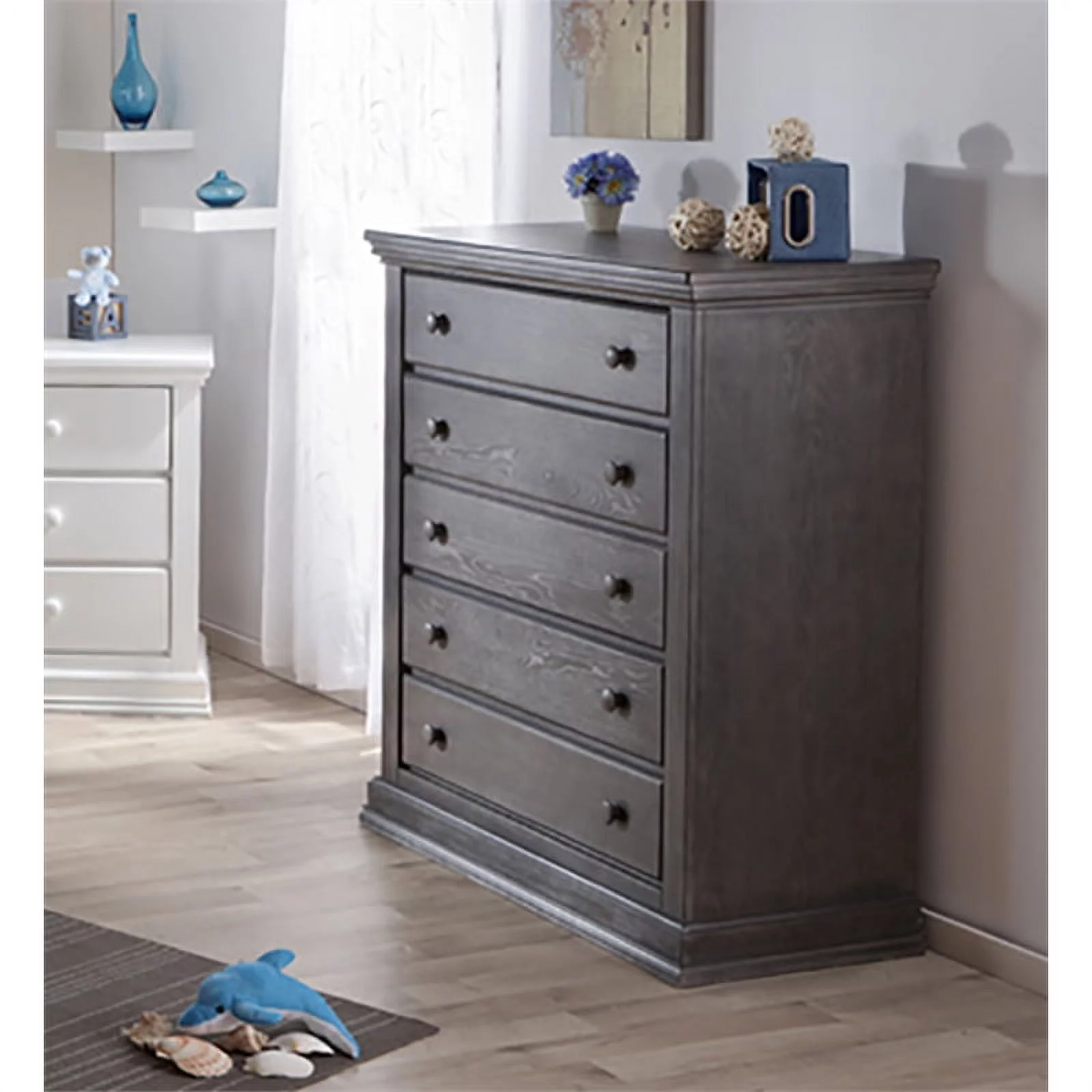 Contemporary Vintage Look King Size 5Pc Bedroom Set Bed Dresser Mirror Nightstand Wooden Furniture