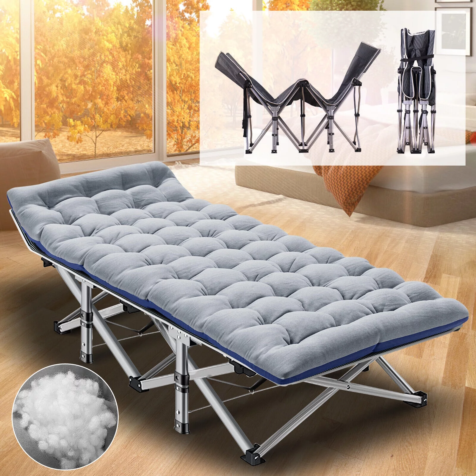 2 Piece Fannin Bedroom Furniture Set - Denim Blue, Black & Wire Brushed Butter Cream