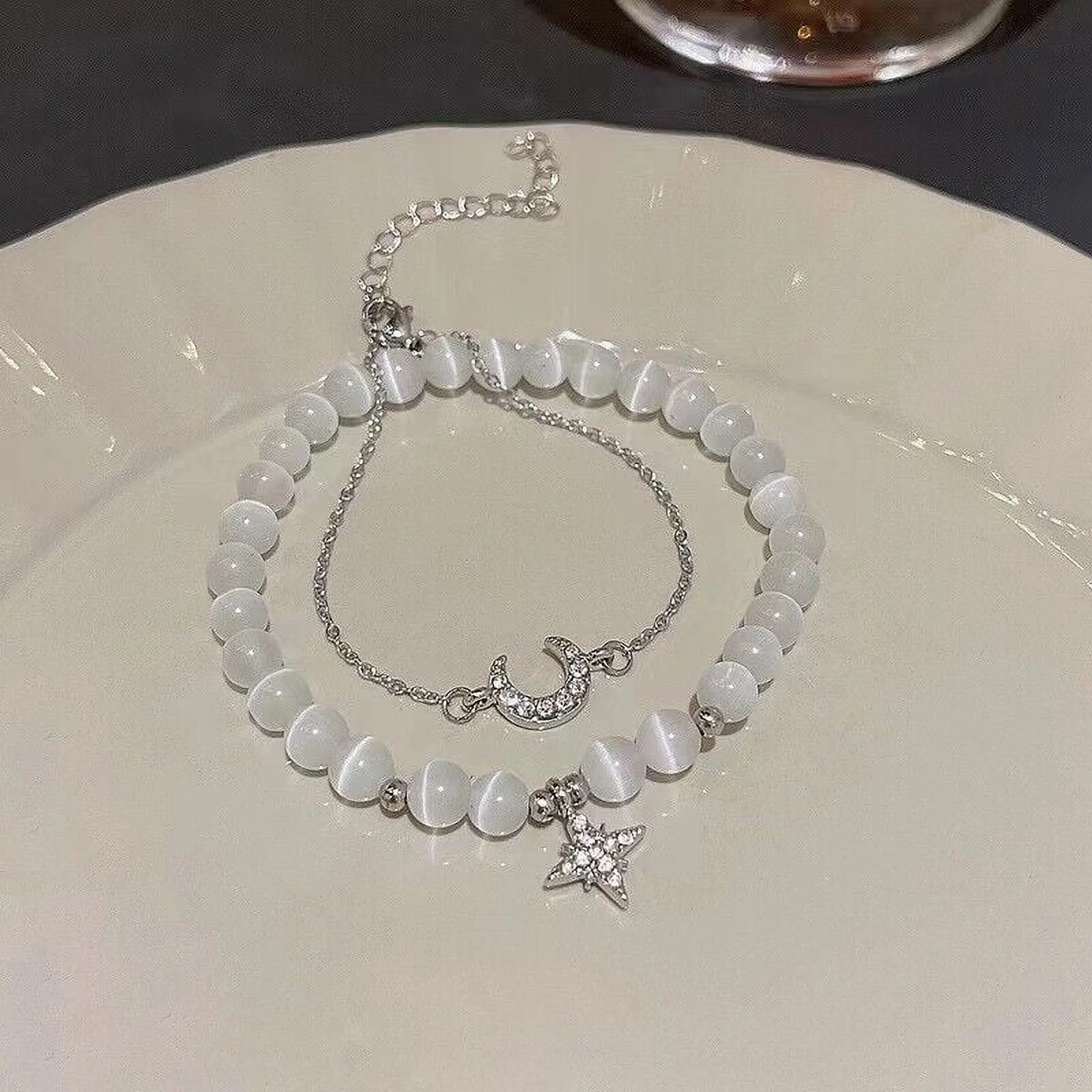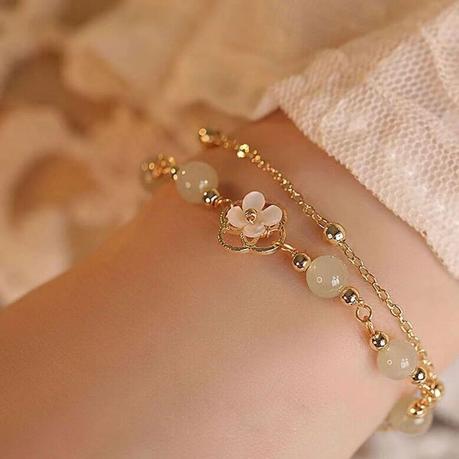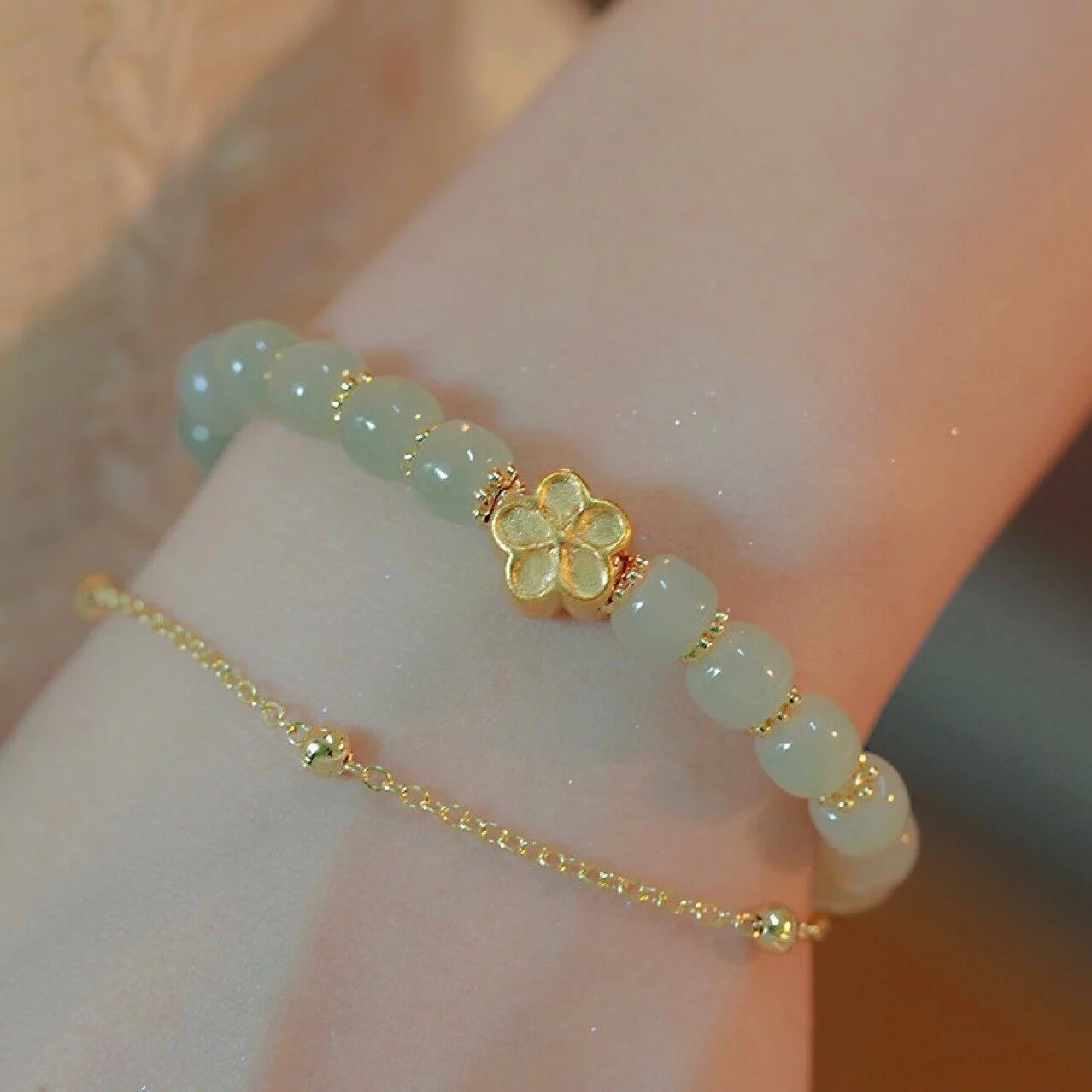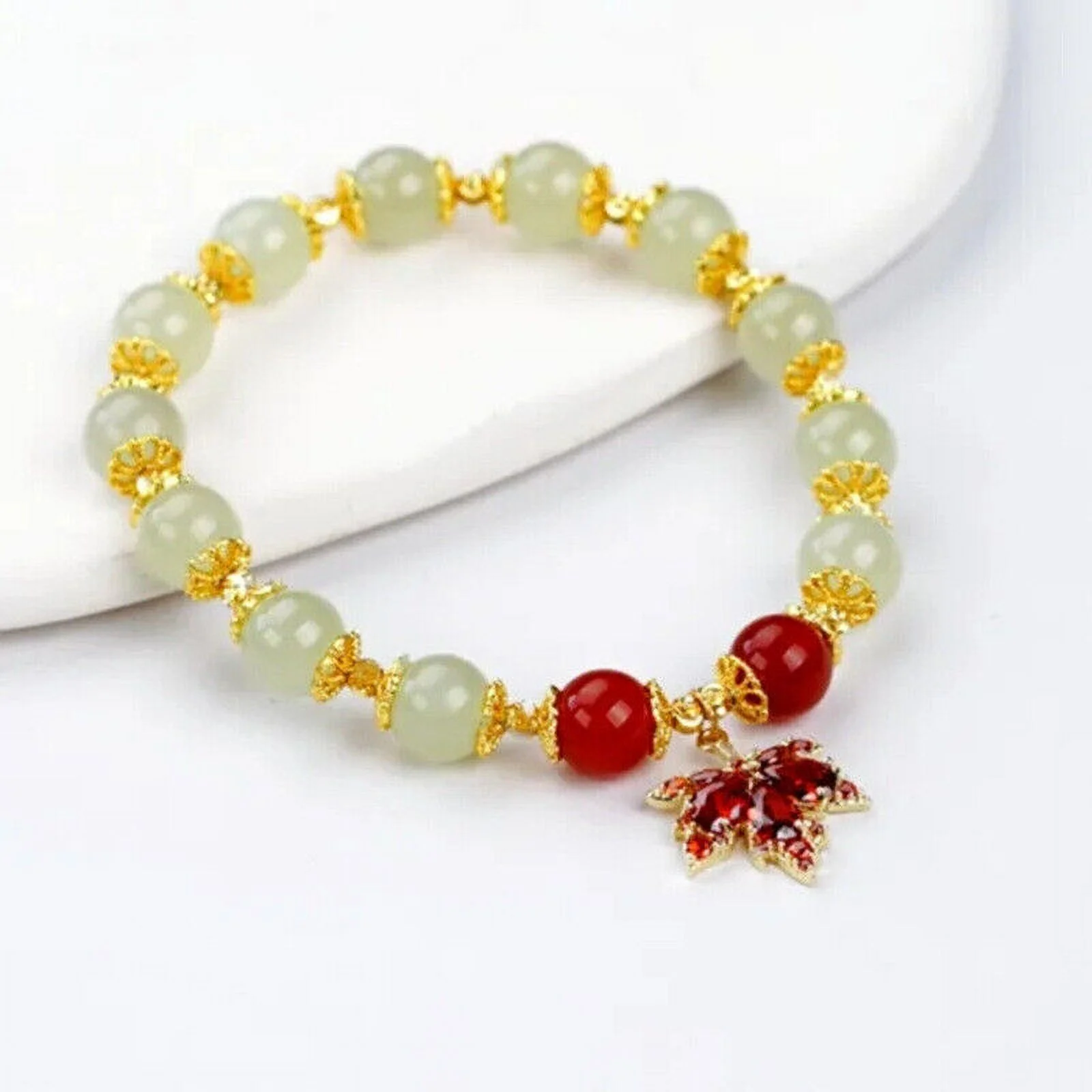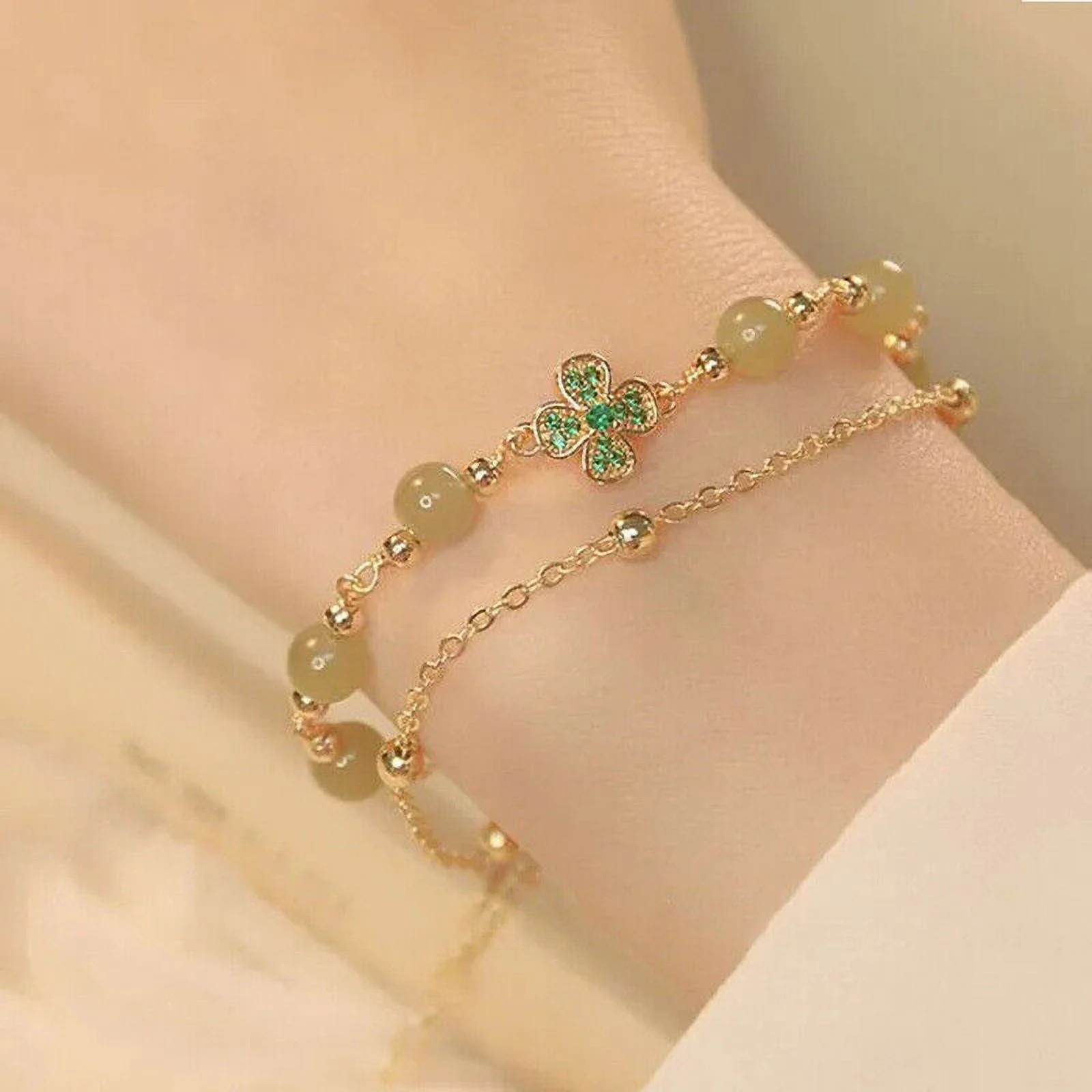 Chinese Natural Green Jade Bracelets for Women,Luck Beaded Jewelry with Elastic