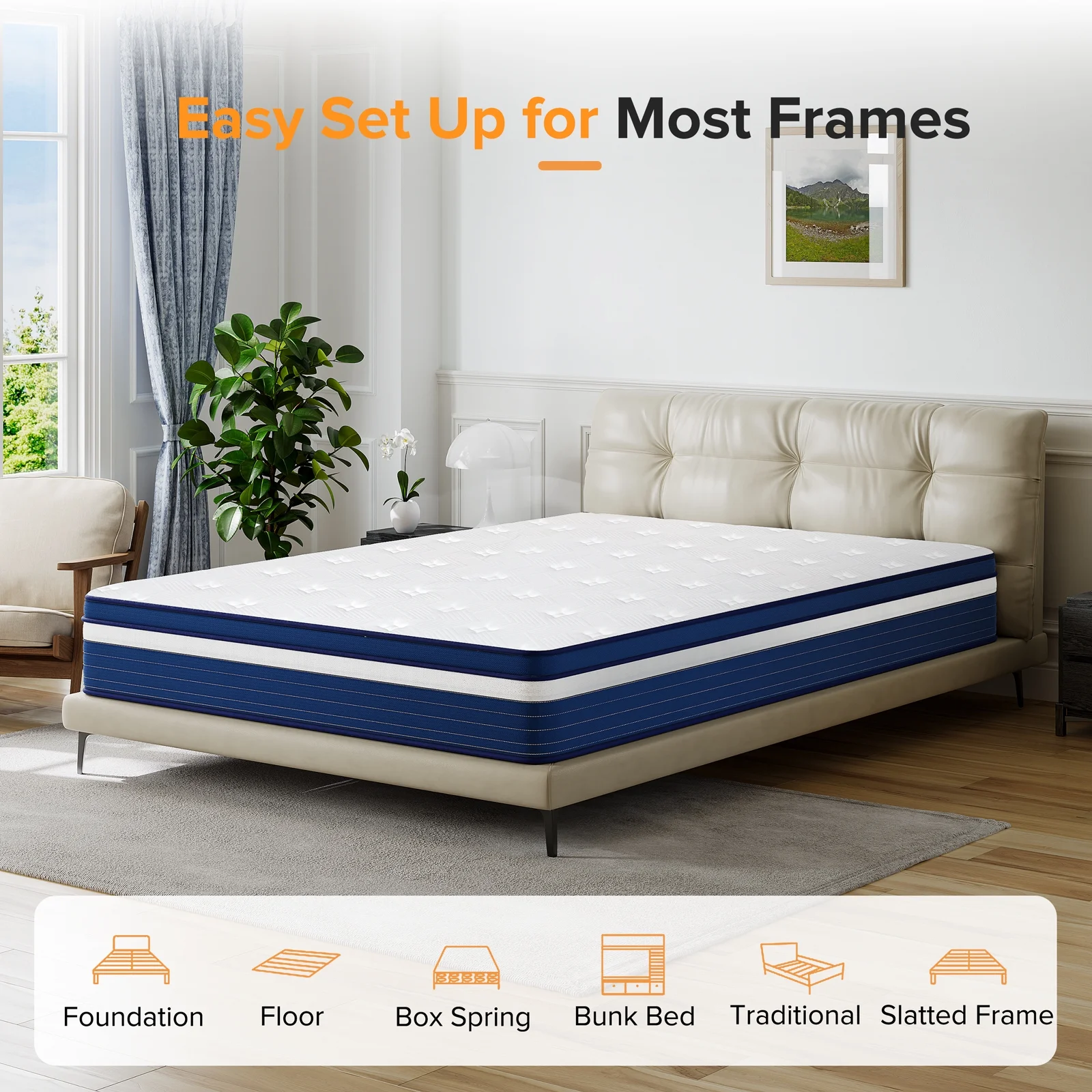 LIBORIA 10 Inch Hybrid Mattress with Memory Foam & Innersprings - Ergonomic Design for Pressure Relief - Medium Firm Feel