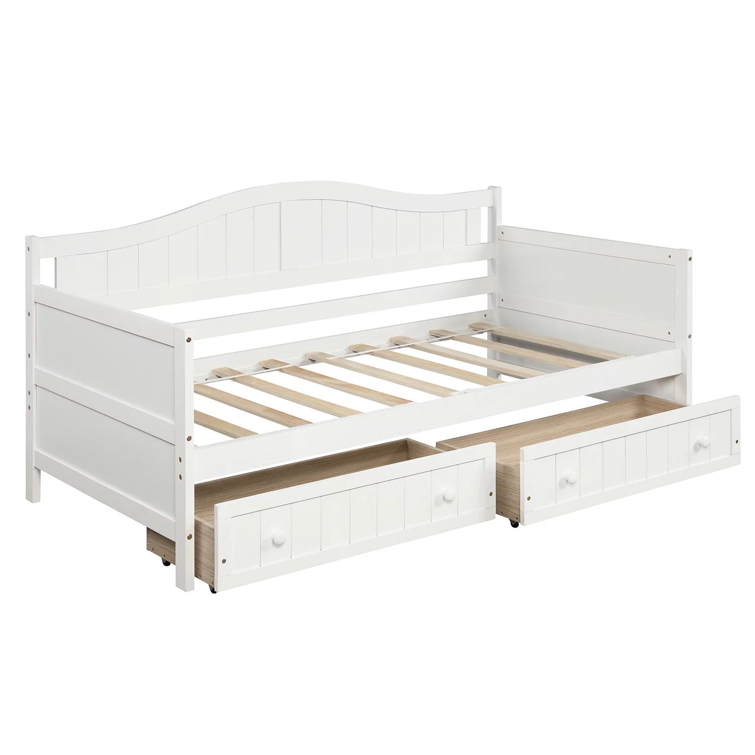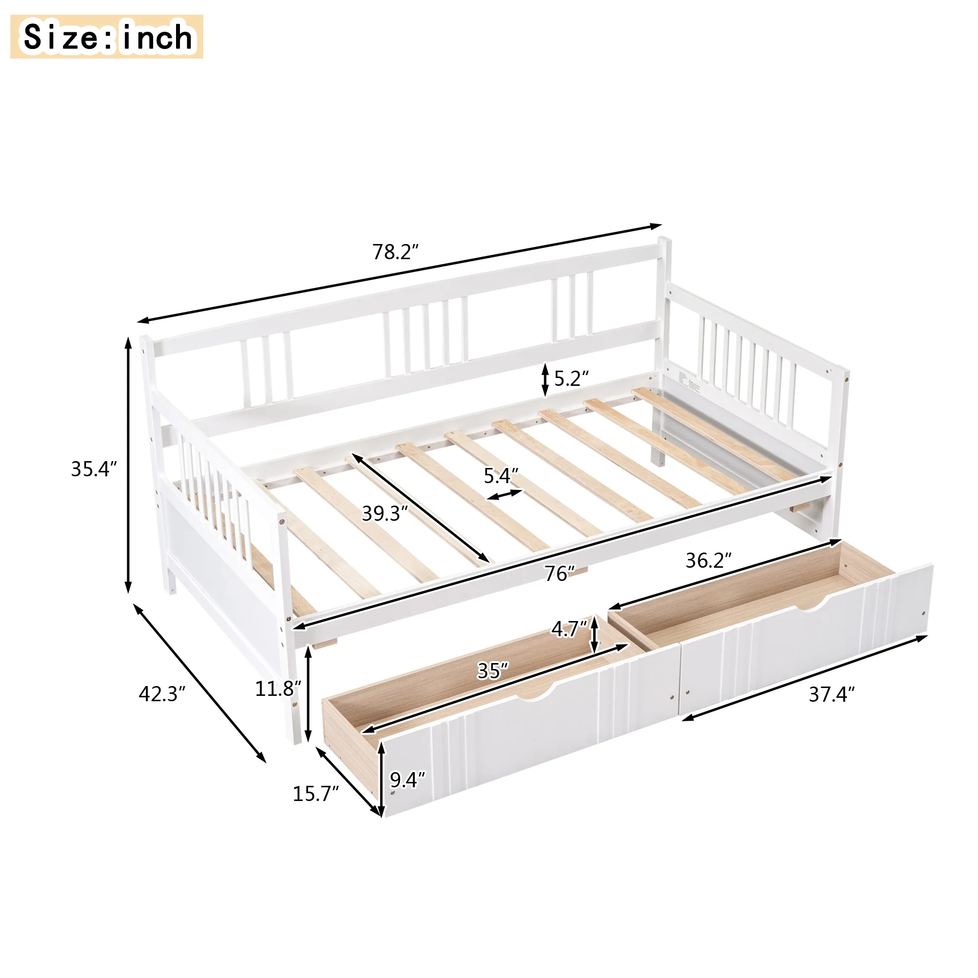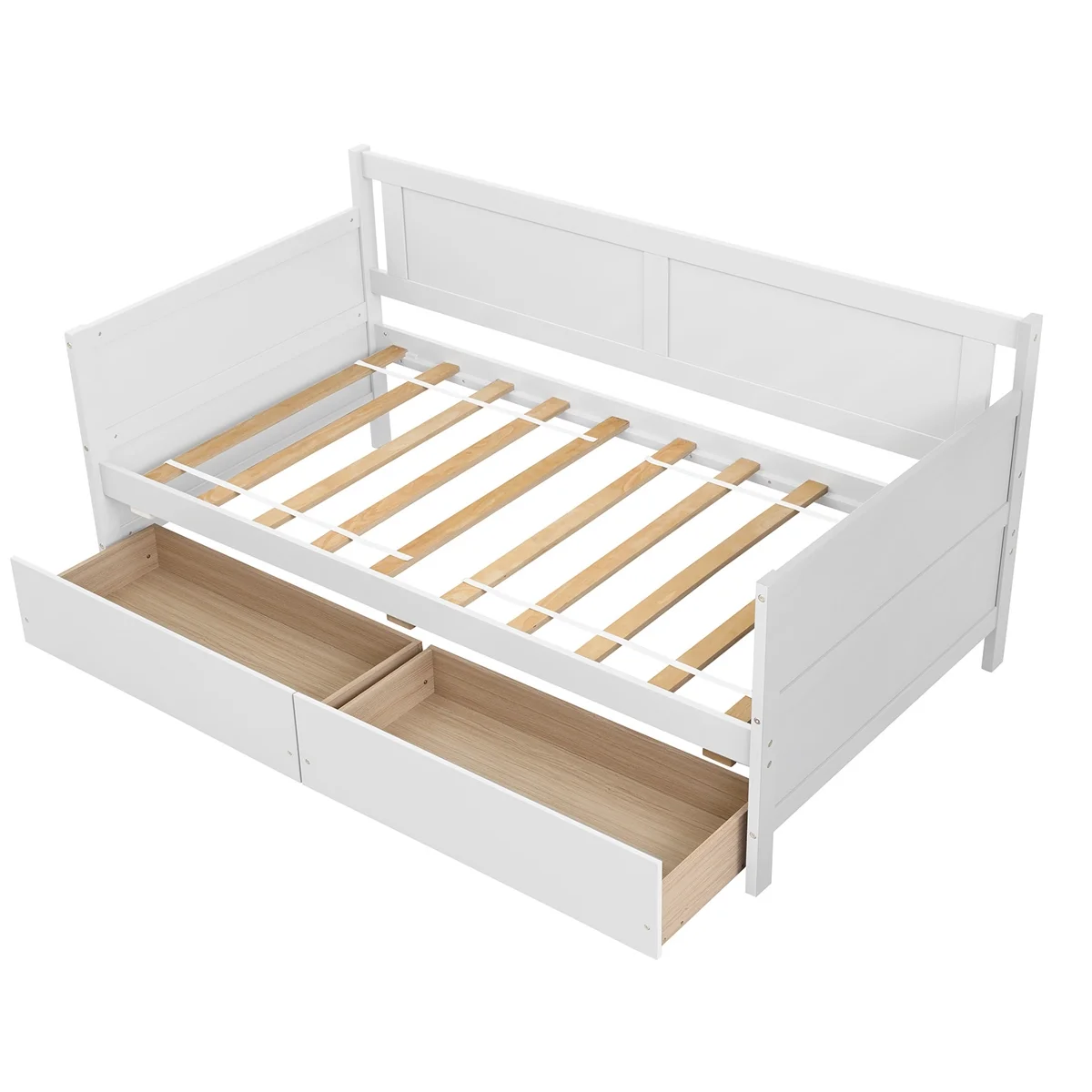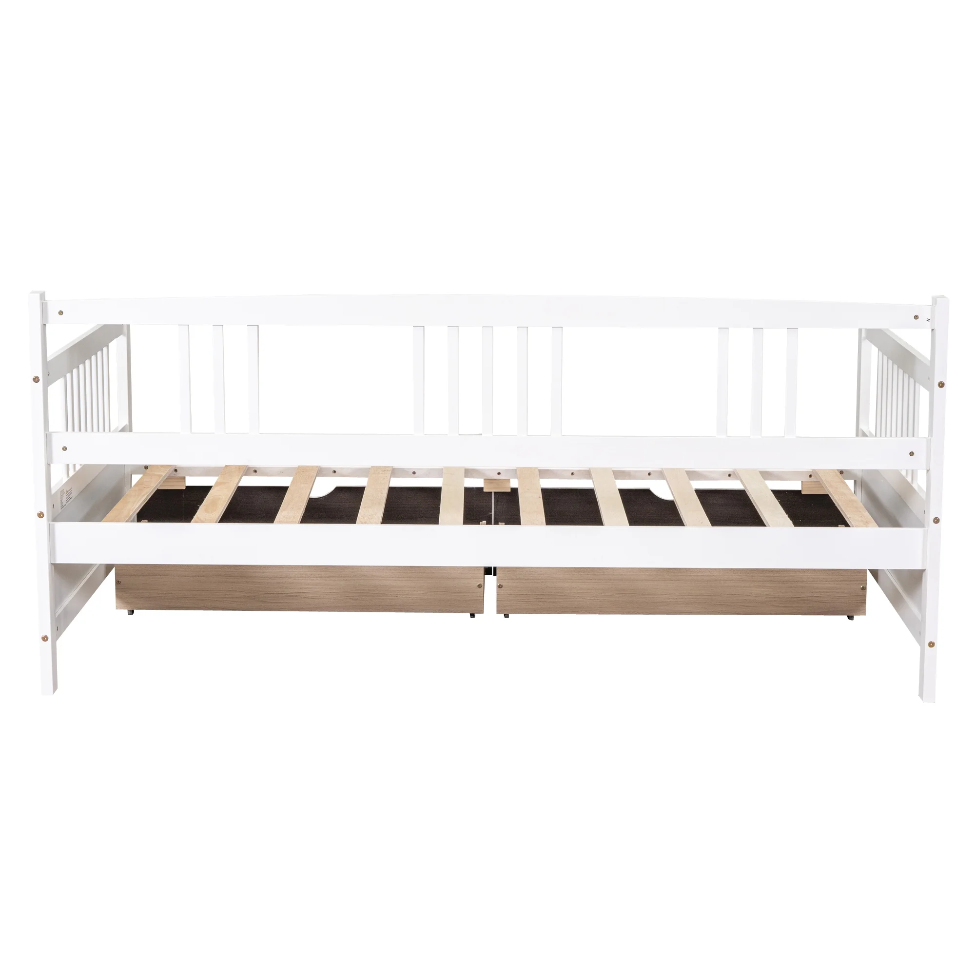 Gewnee Wood Twin Size Daybed with Two Storage Drawers for Kids Bedroom,White