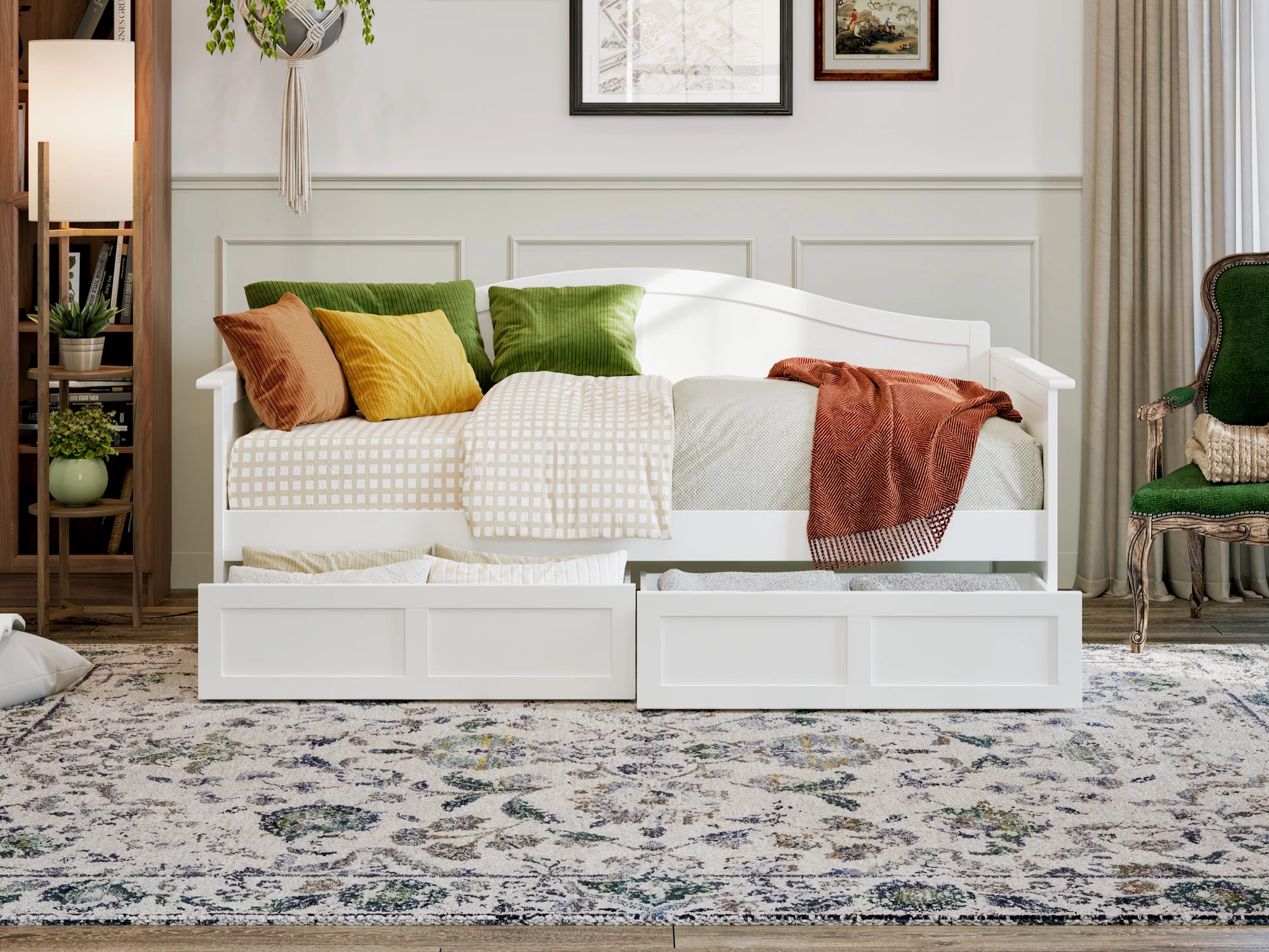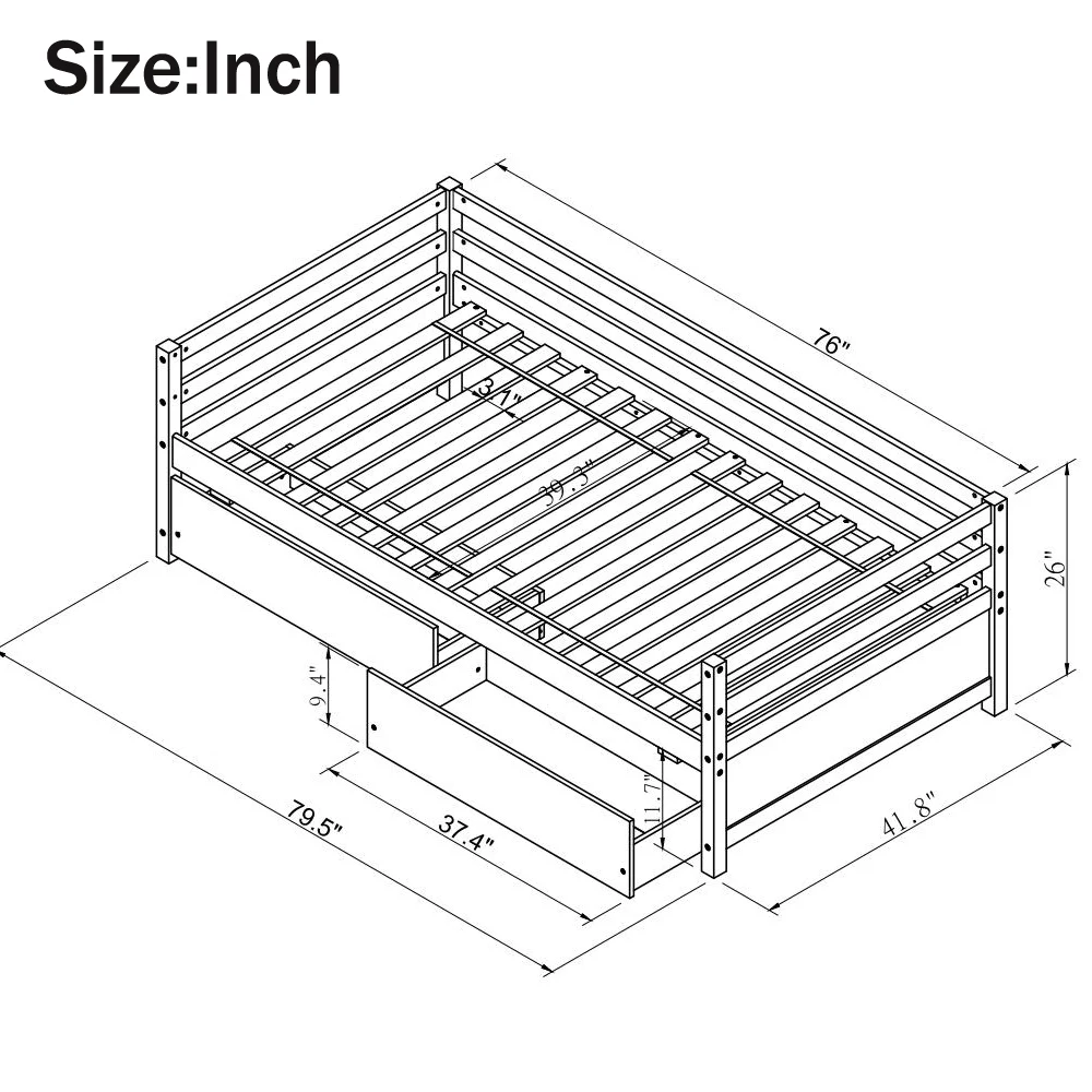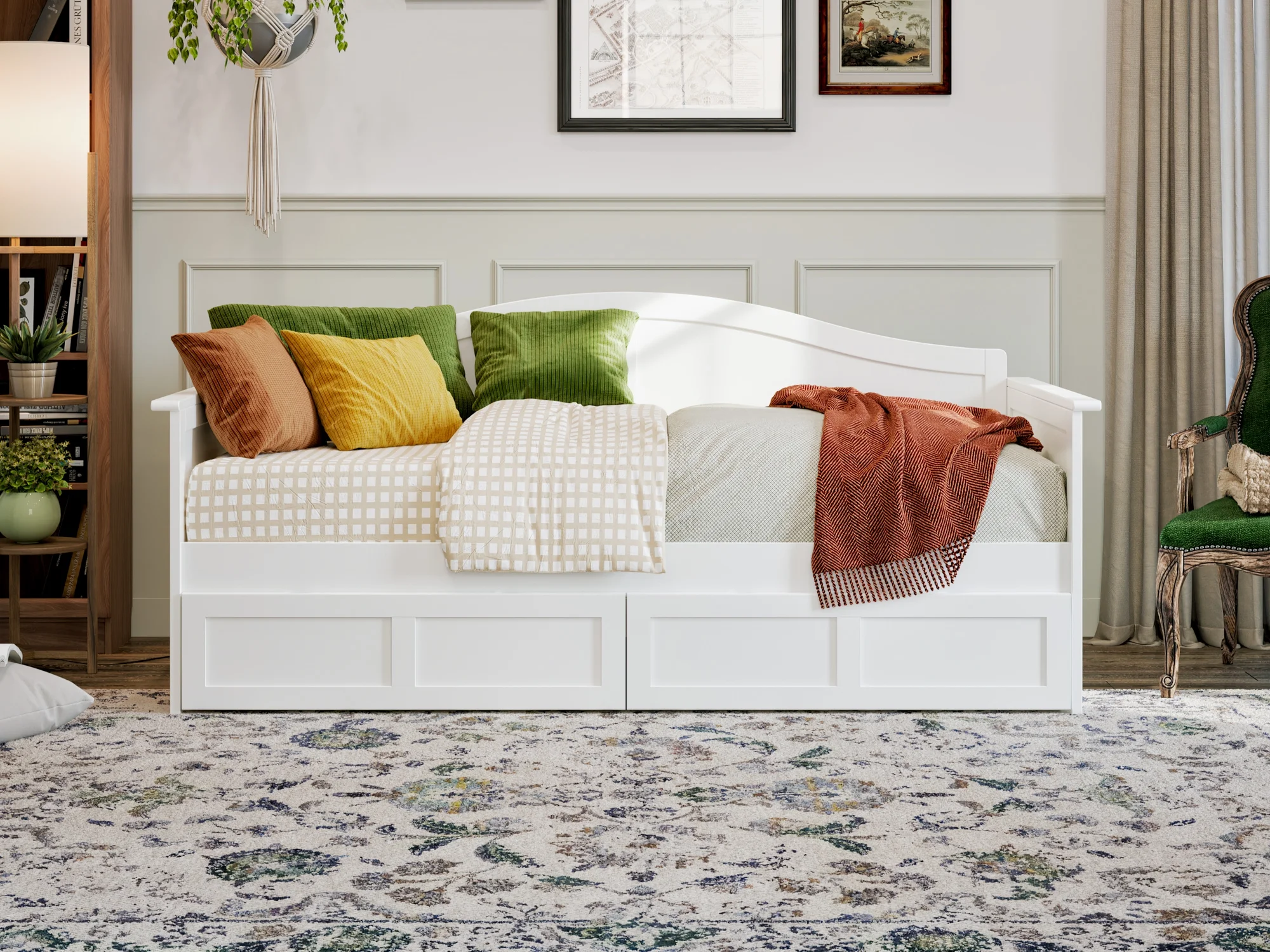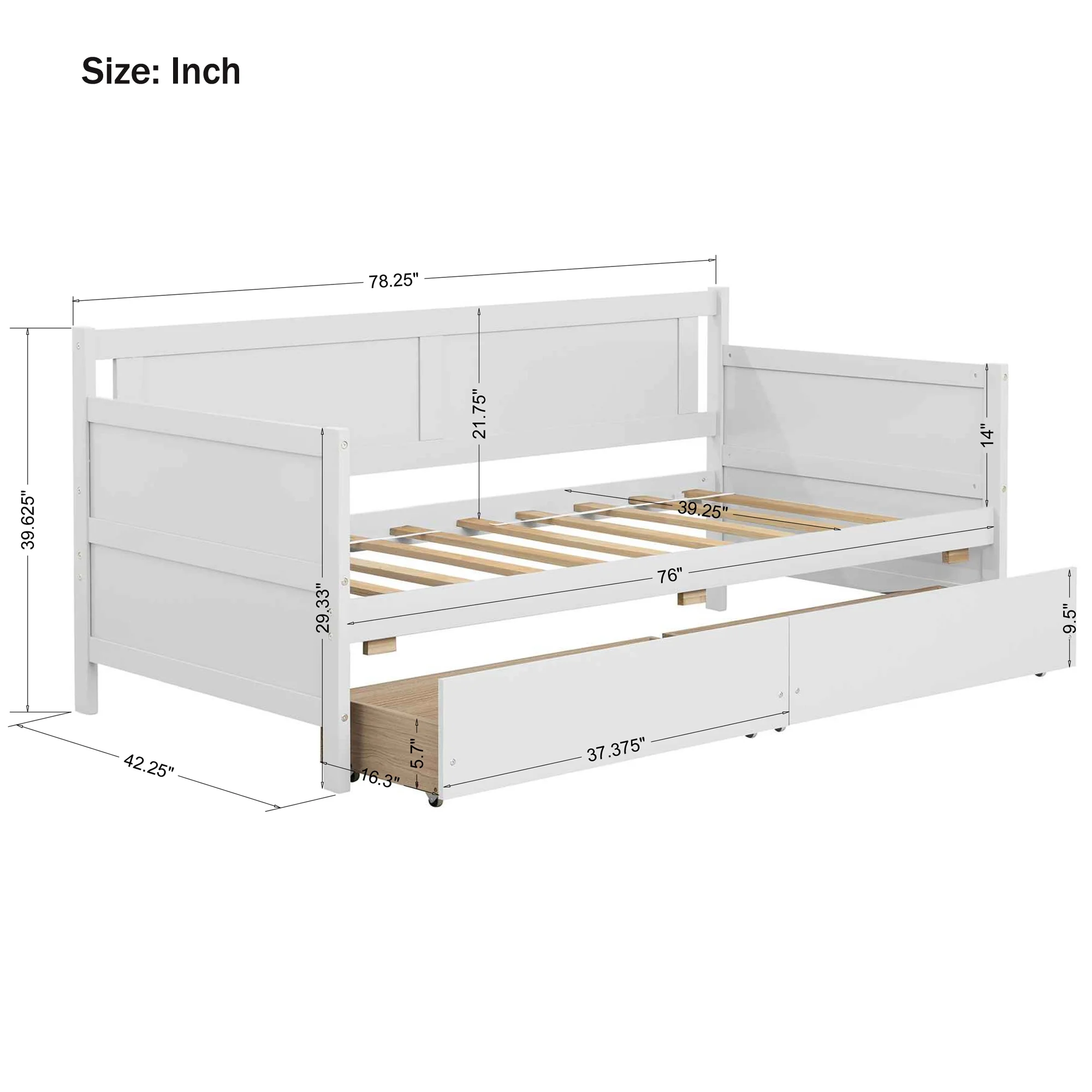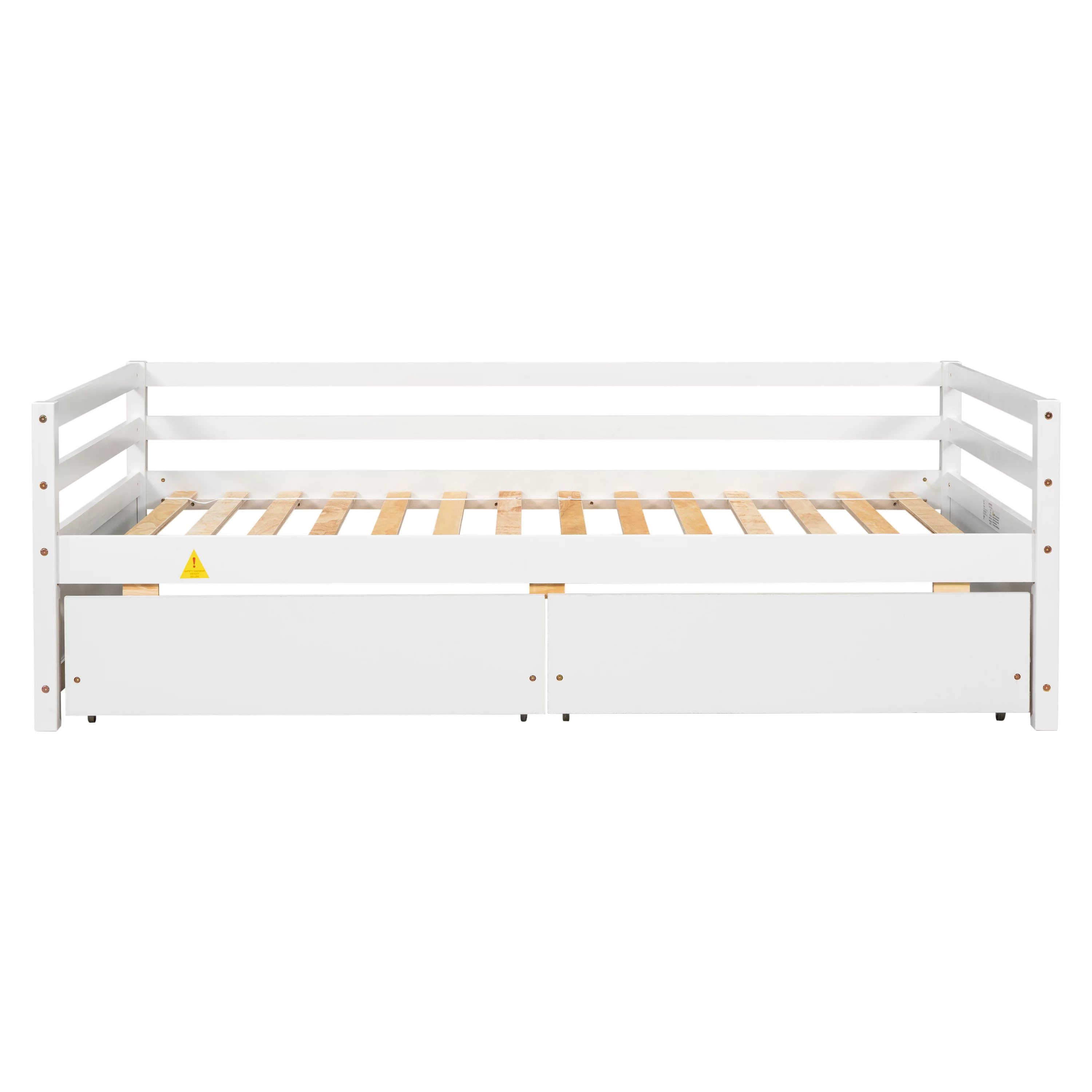 Gewnee Wood Twin Size Daybed with Two Storage Drawers for Kids Bedroom,White