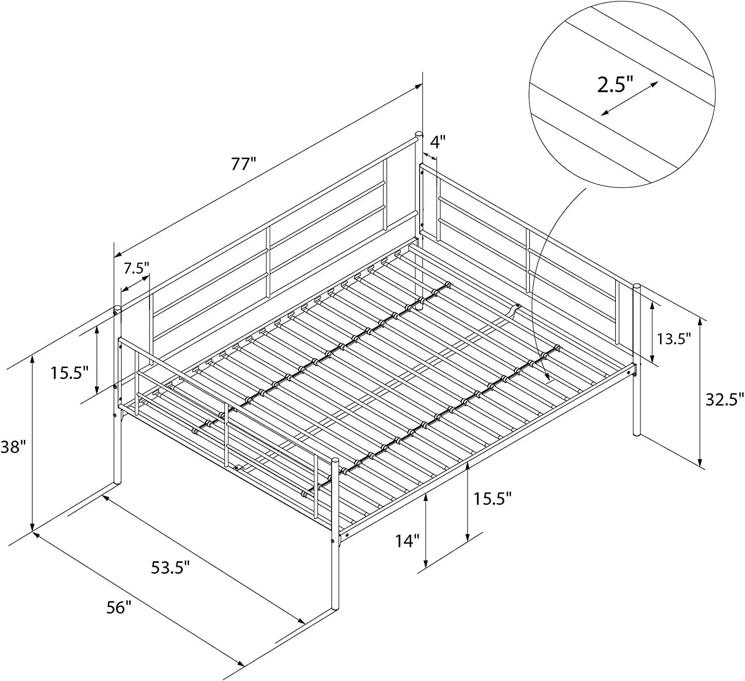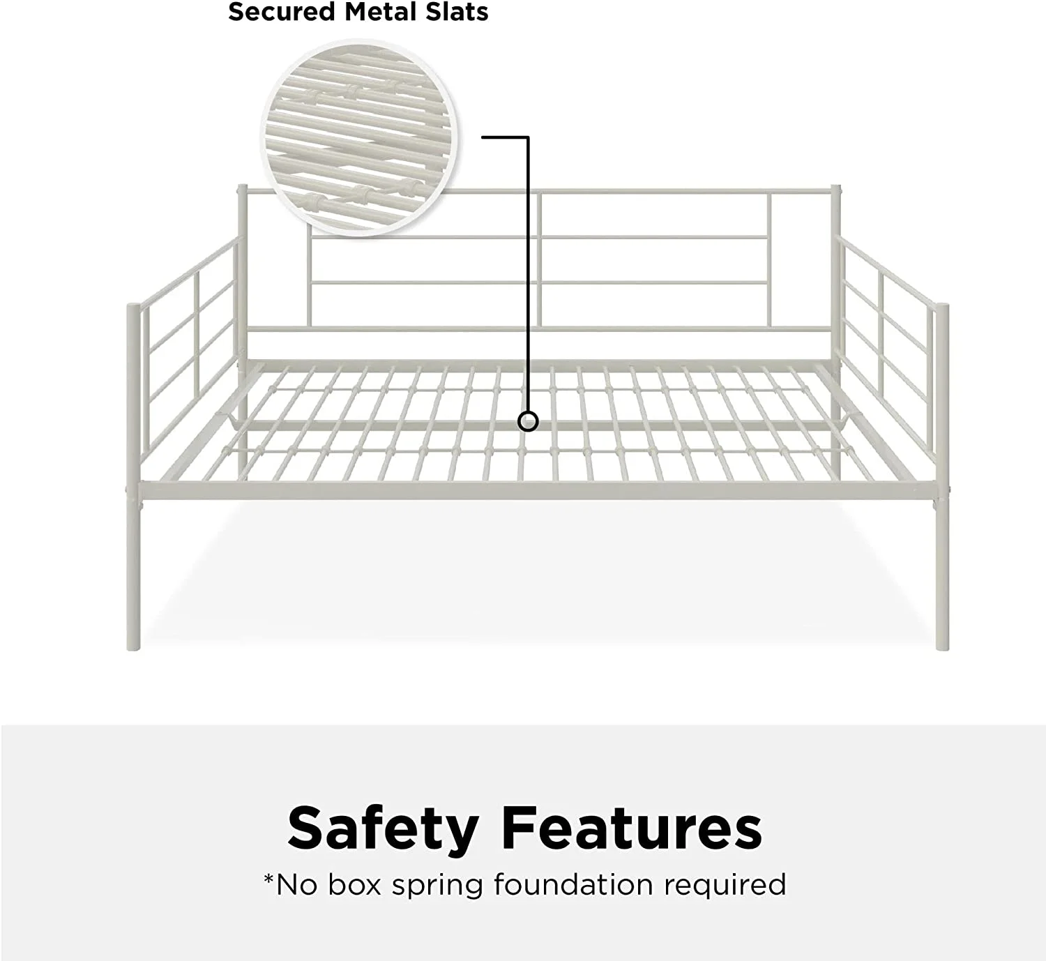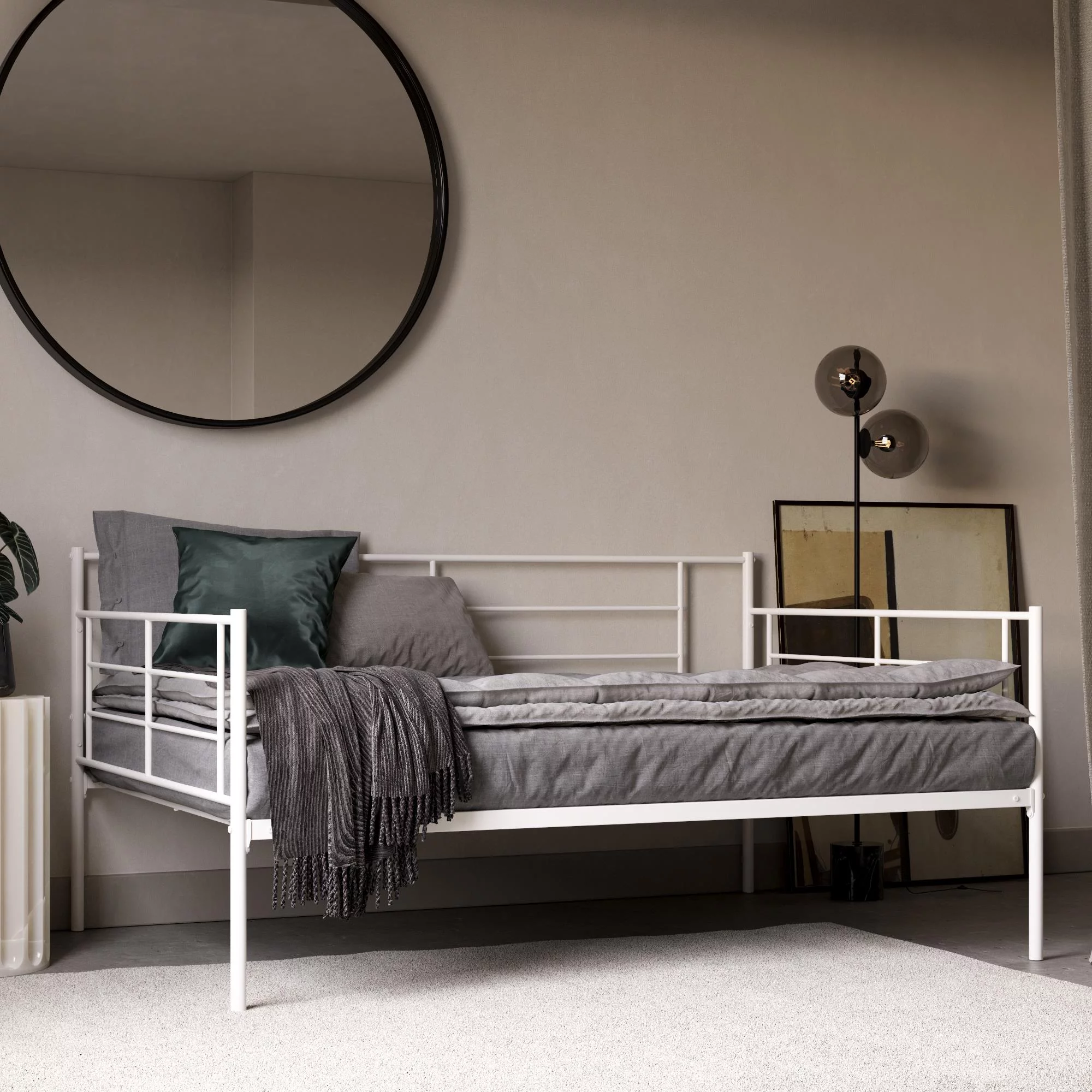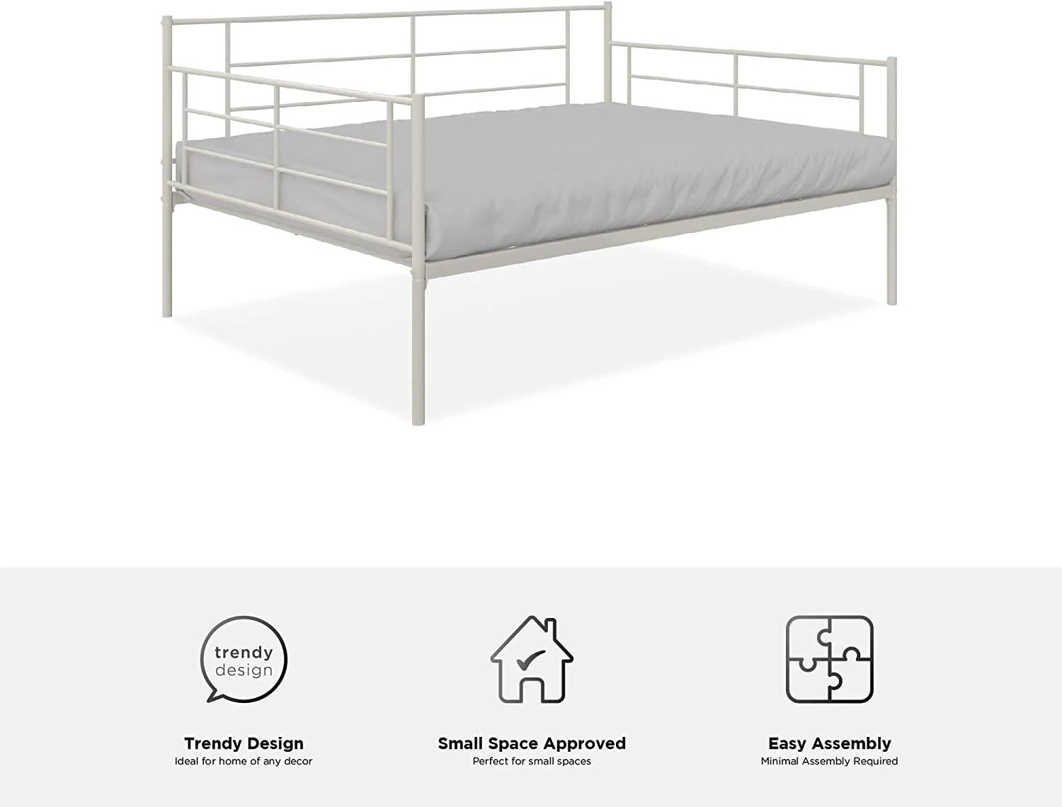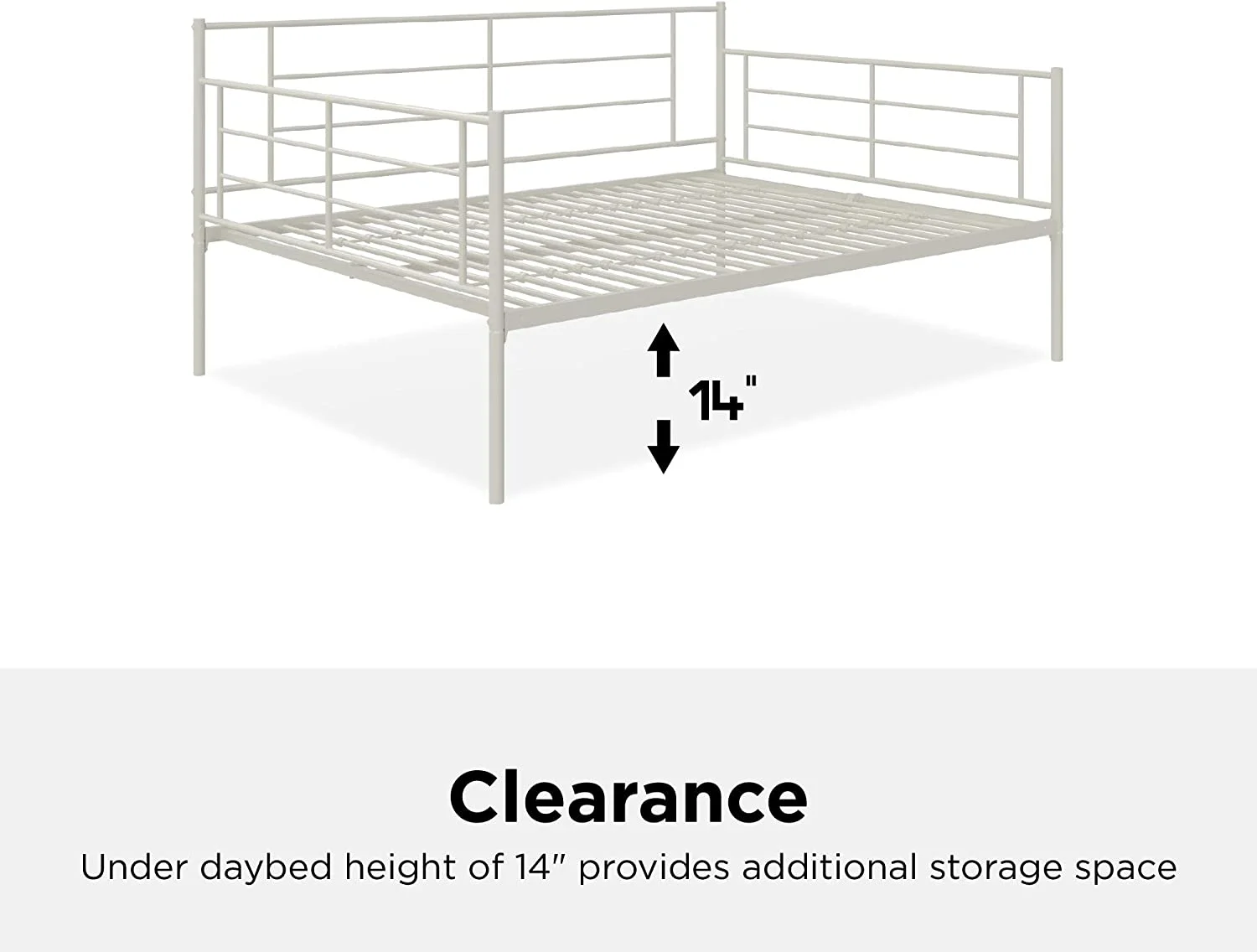 Praxis Metal Daybed With Steel Frame And Slats, Under Bed Storage, Full, White