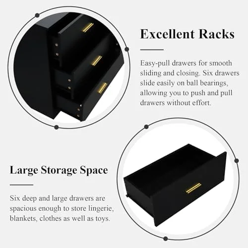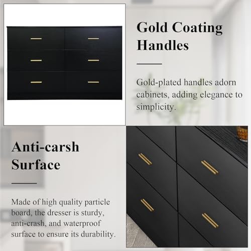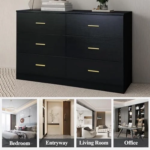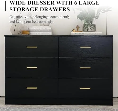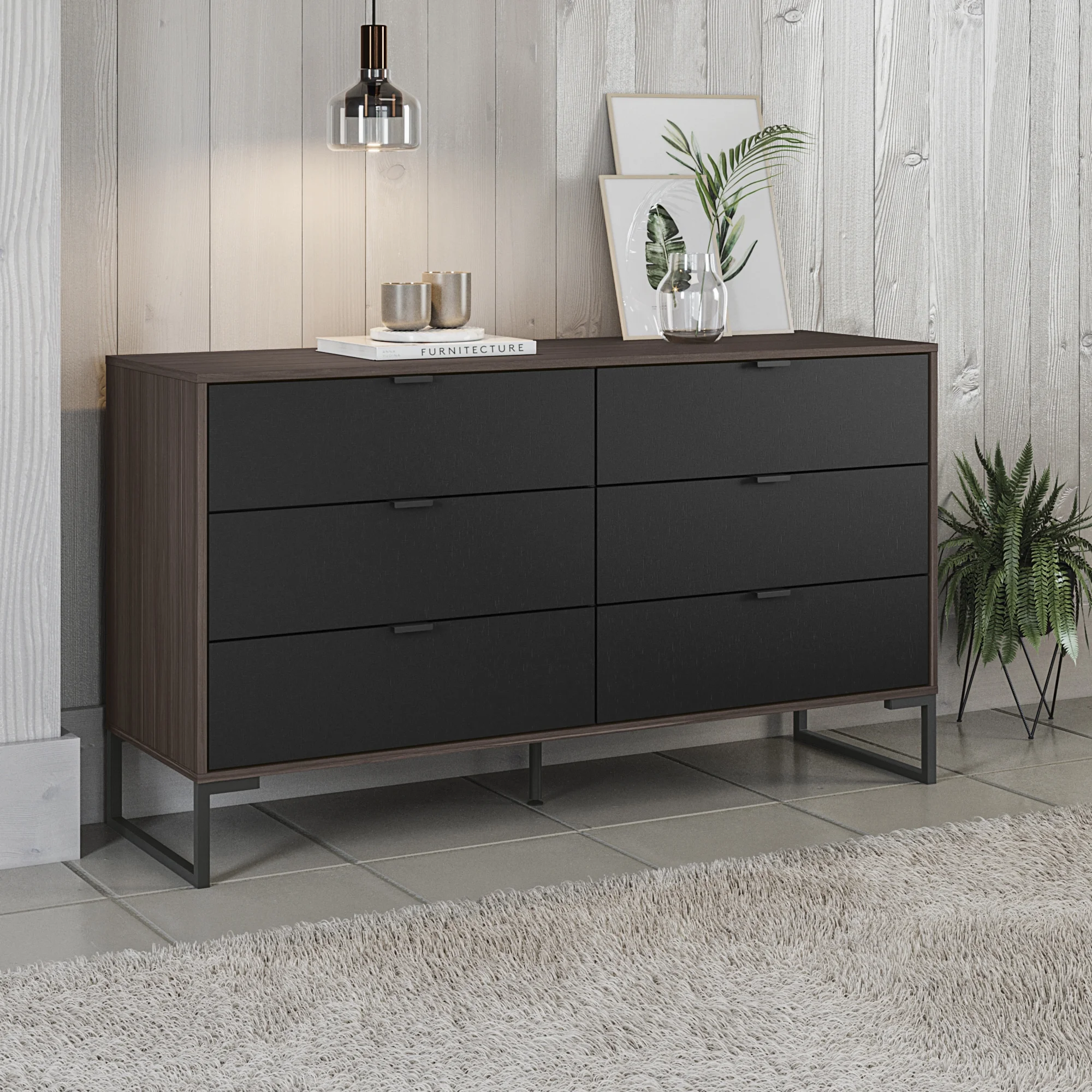 New Collins Modern Dresser in Dark Brown/Black - 6 Drawers - 32.2 in. H x 57.1 in. W x 17.7 in. D