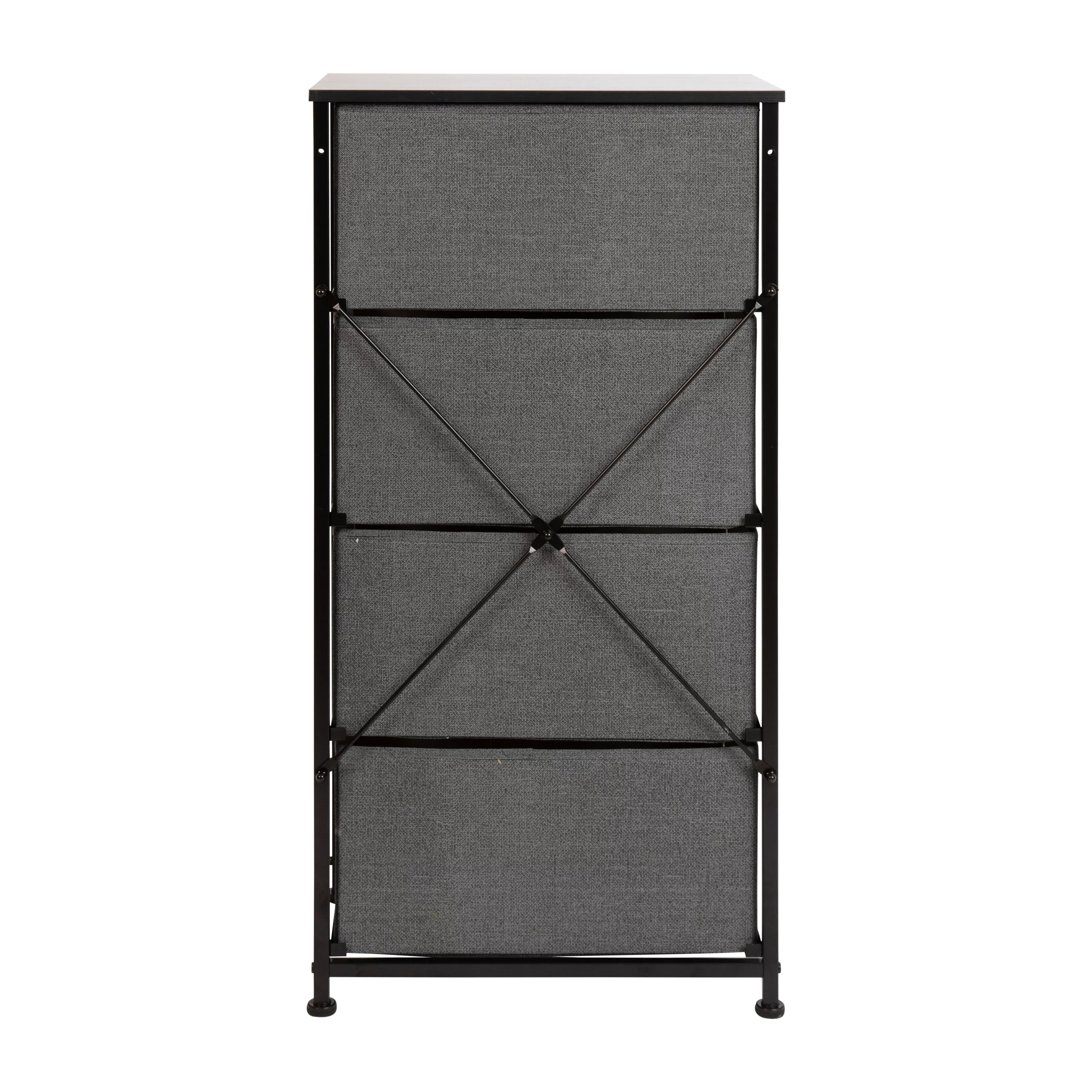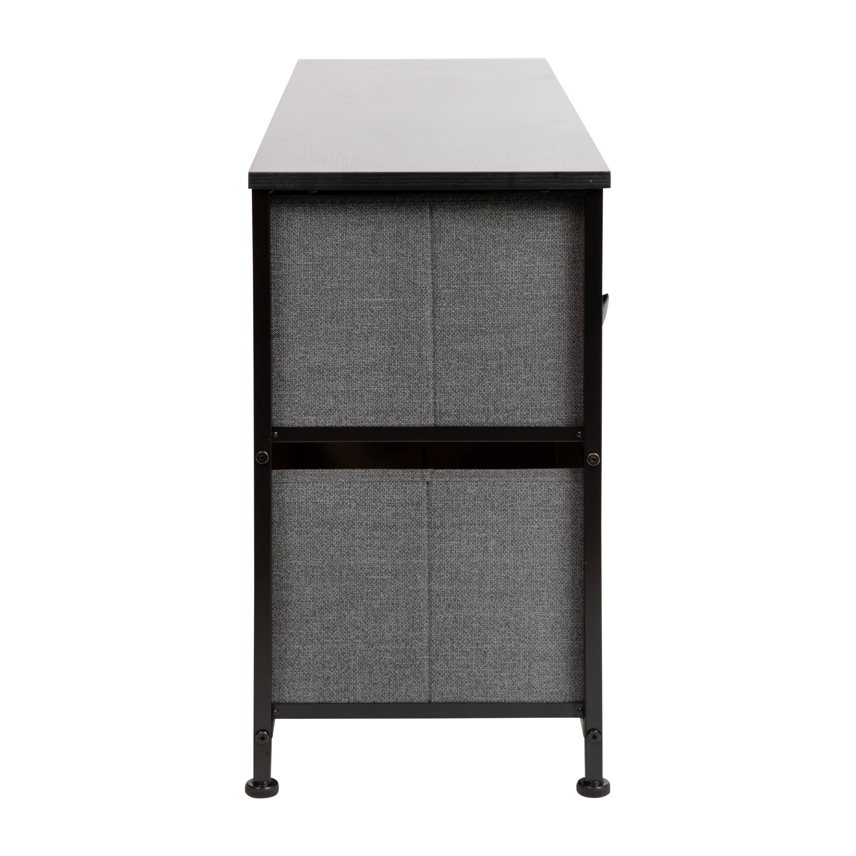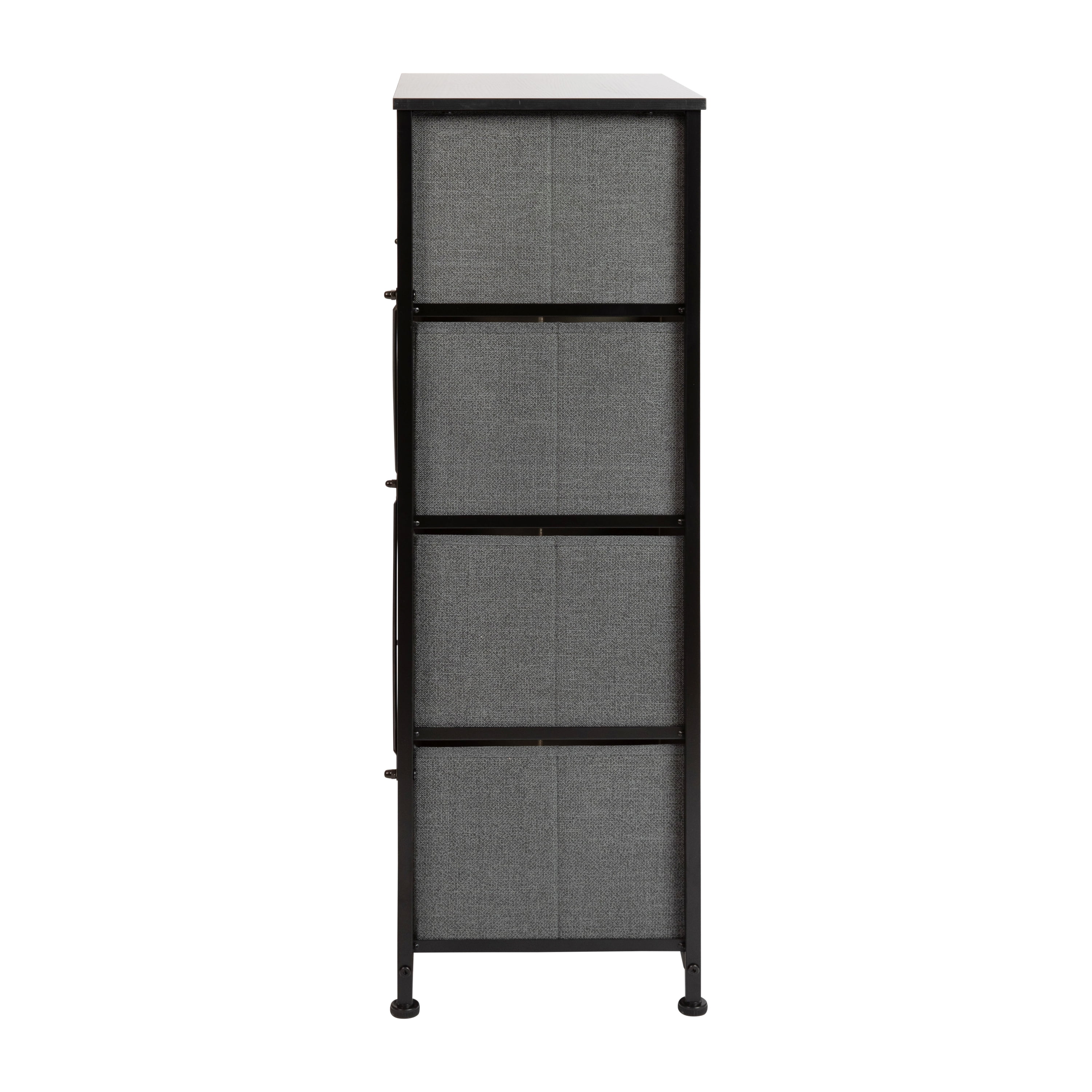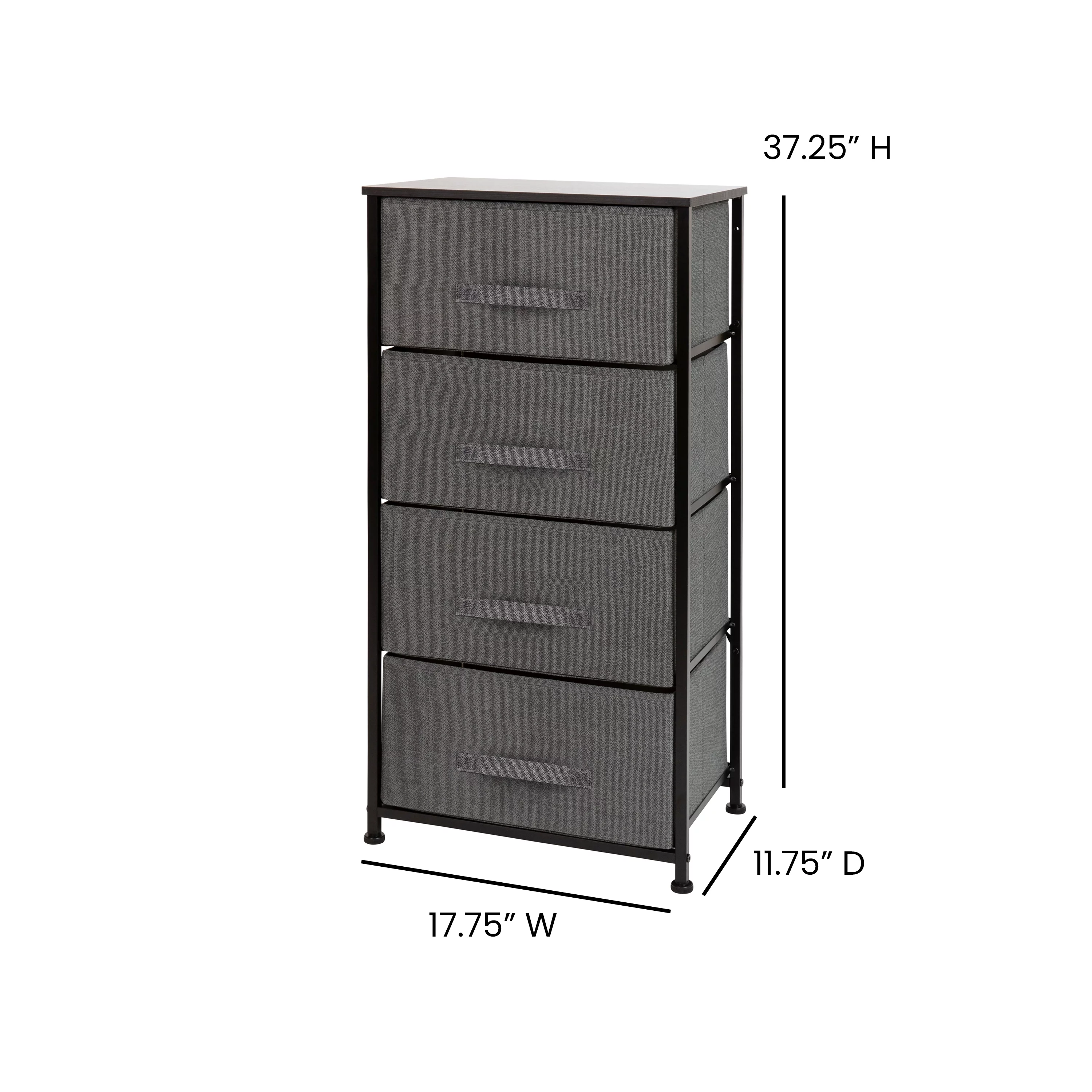 BizChair 4 Drawer Wood Top Black Cast Iron Frame Vertical Storage Dresser with Dark Gray Easy Pull Fabric Drawers