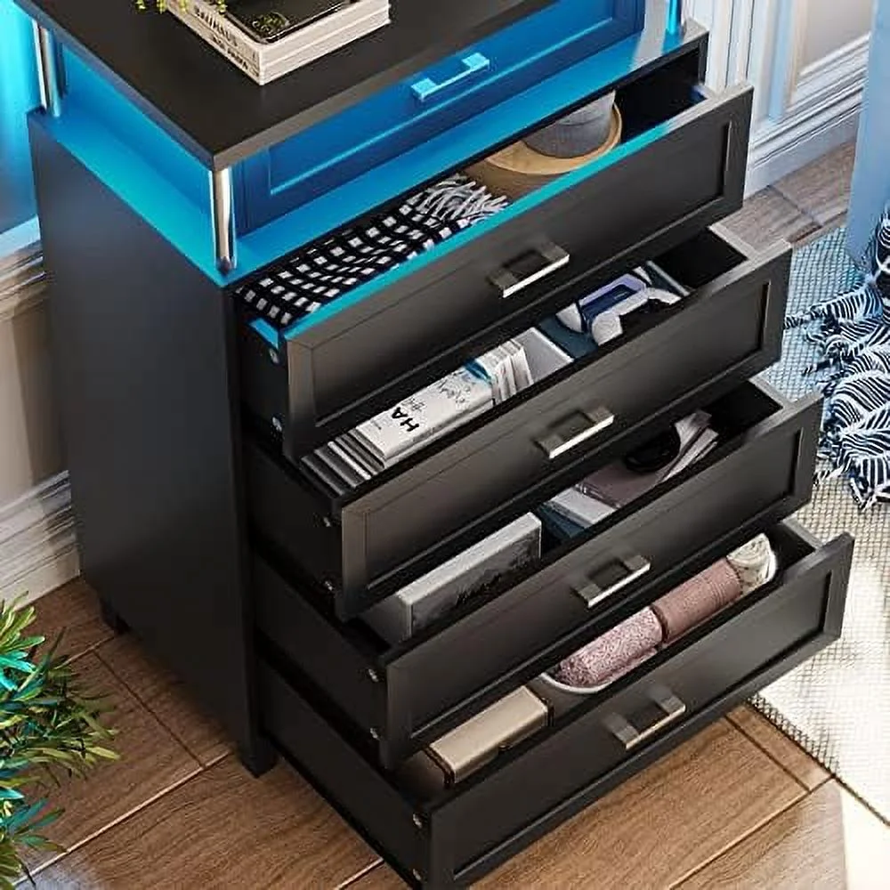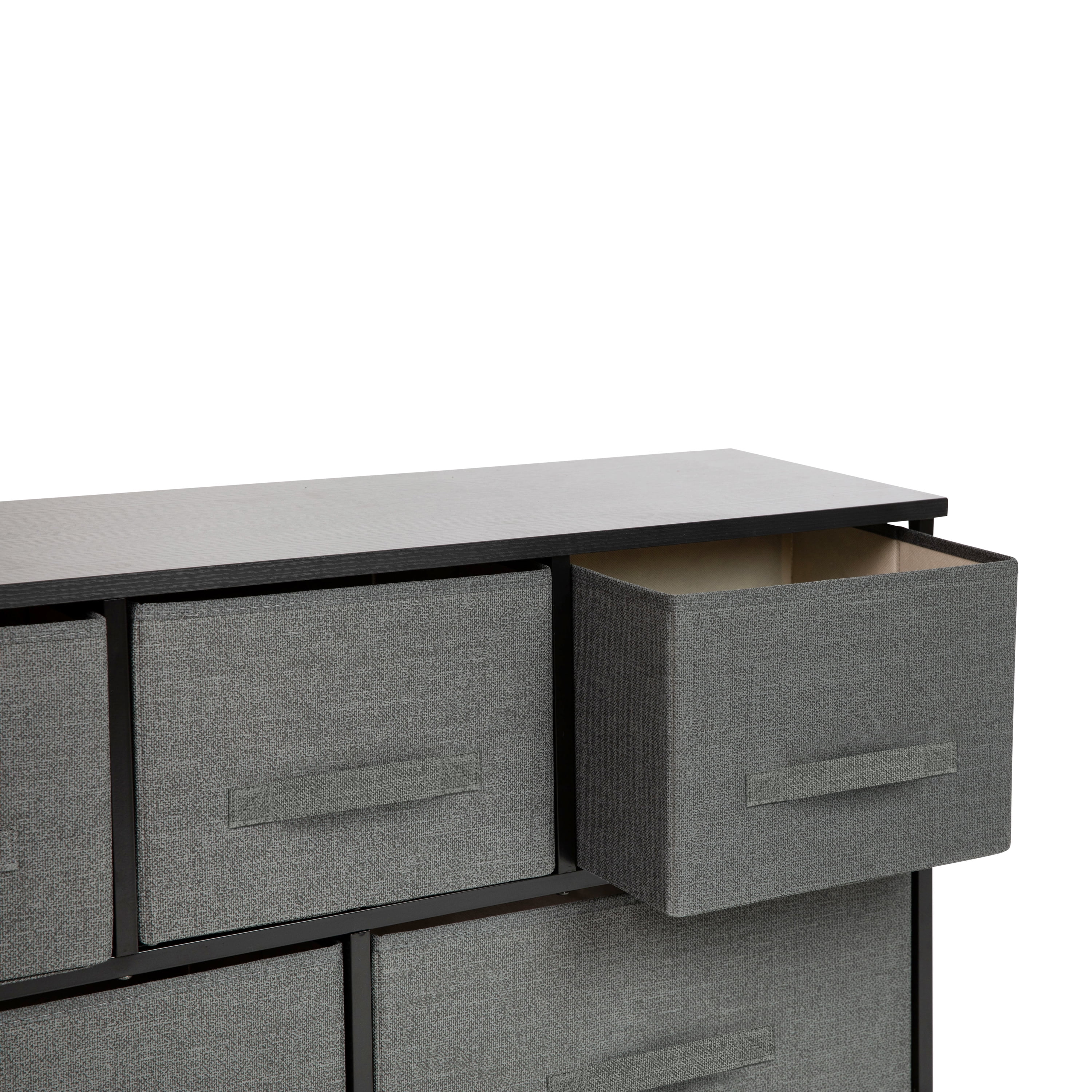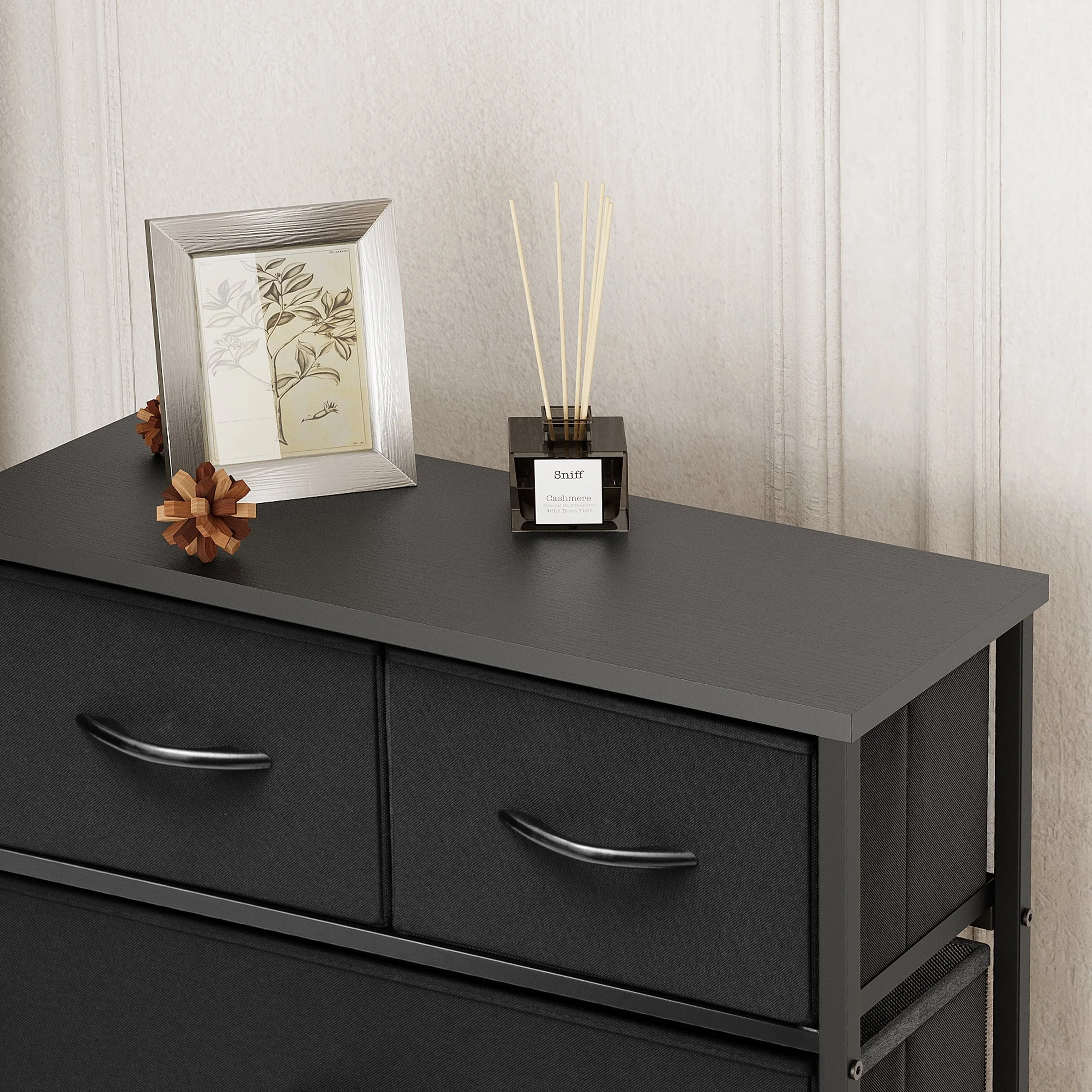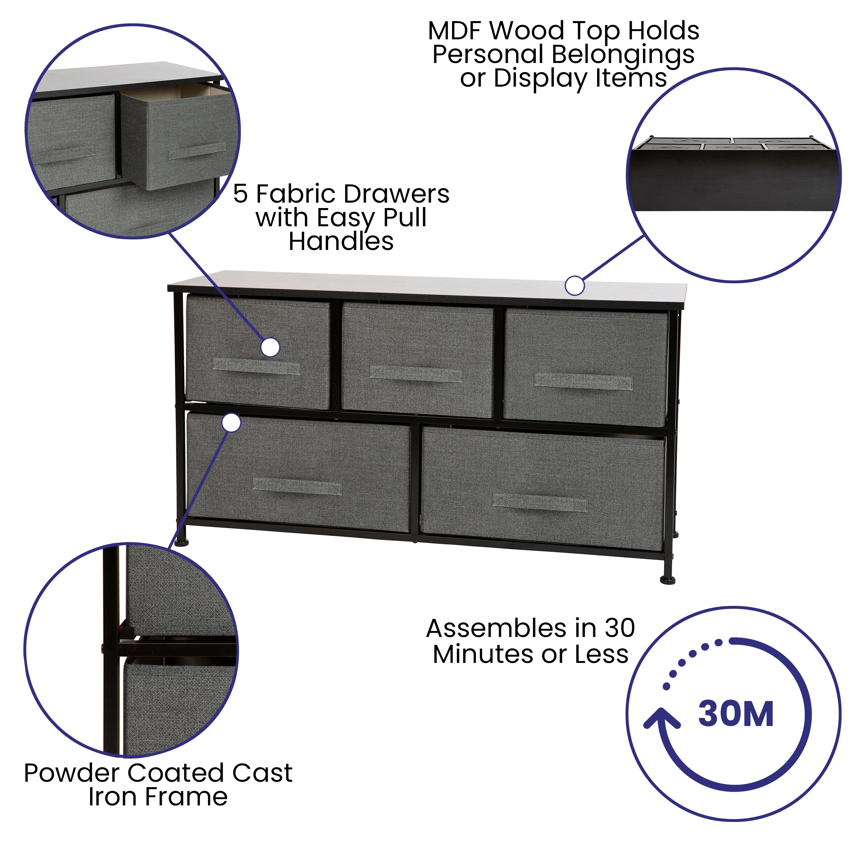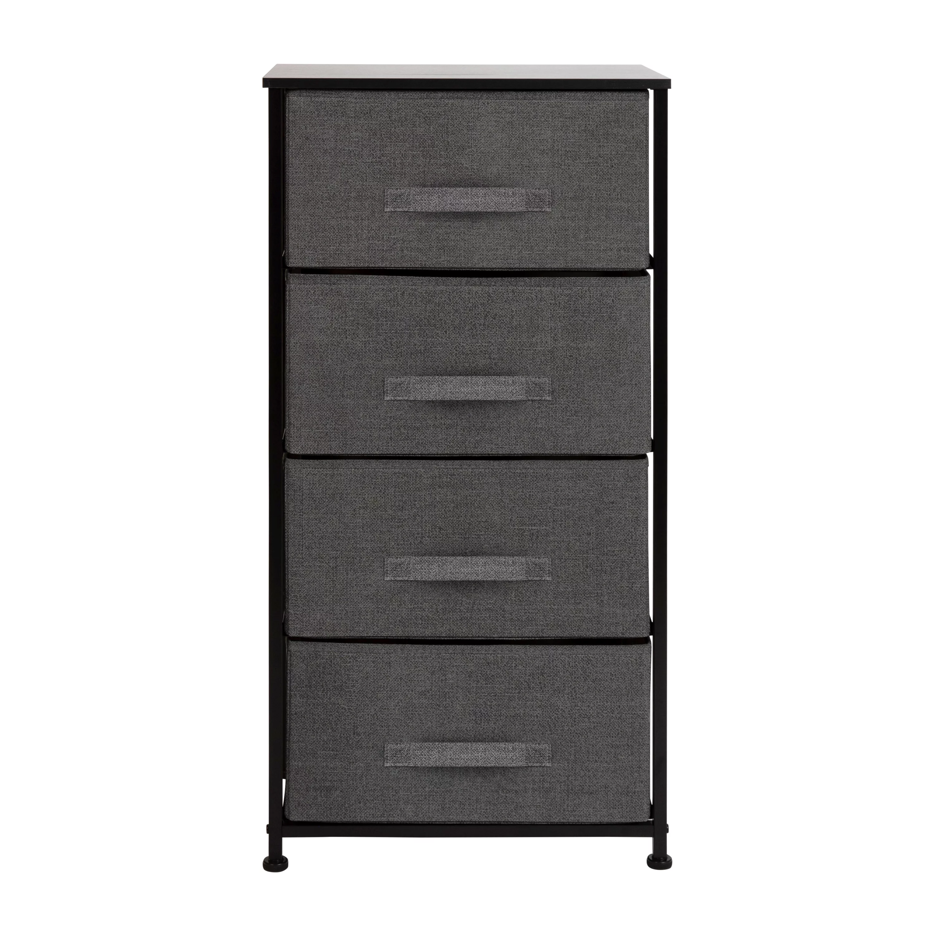 BizChair 4 Drawer Wood Top Black Cast Iron Frame Vertical Storage Dresser with Dark Gray Easy Pull Fabric Drawers