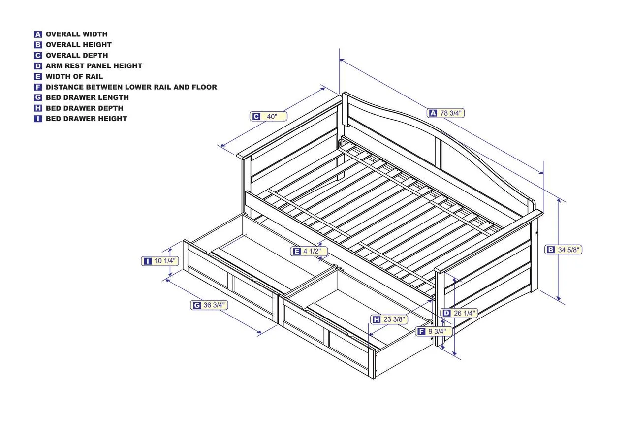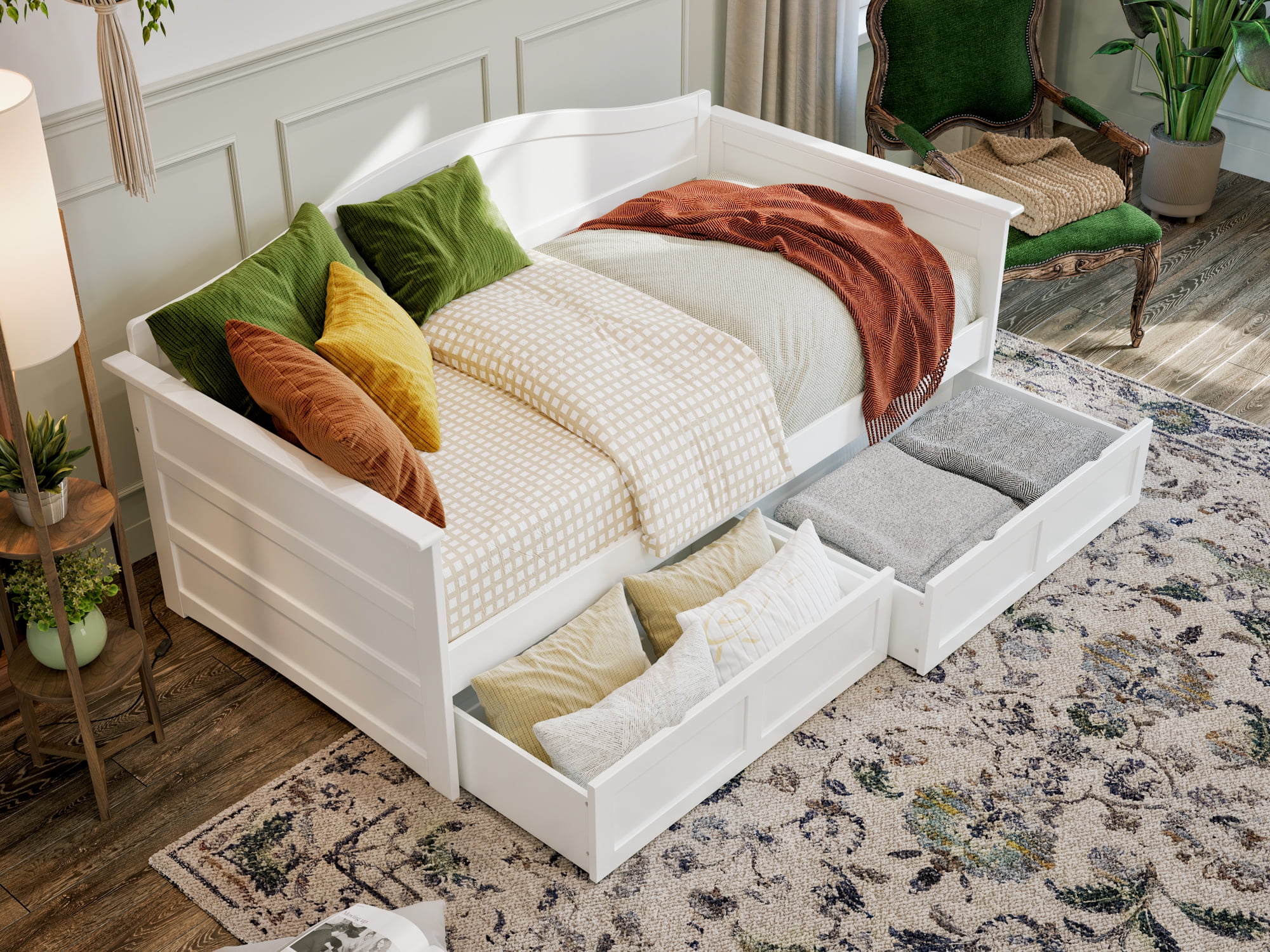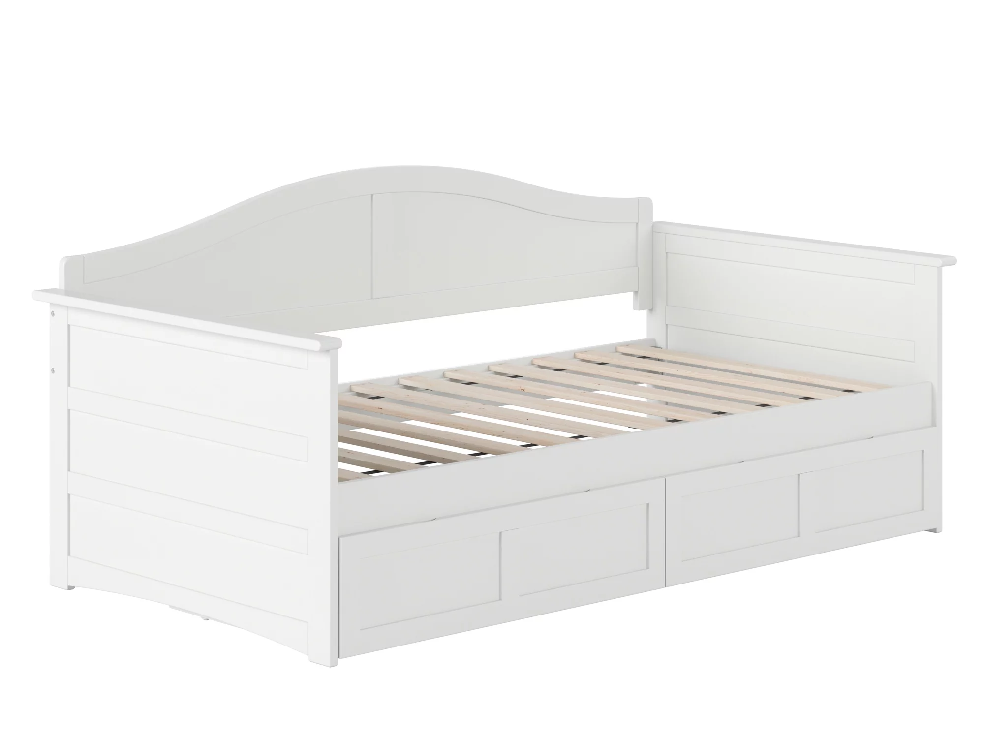 Camaflexi Twin Size Day Bed with Drawers - Panel Headboard - White Finish