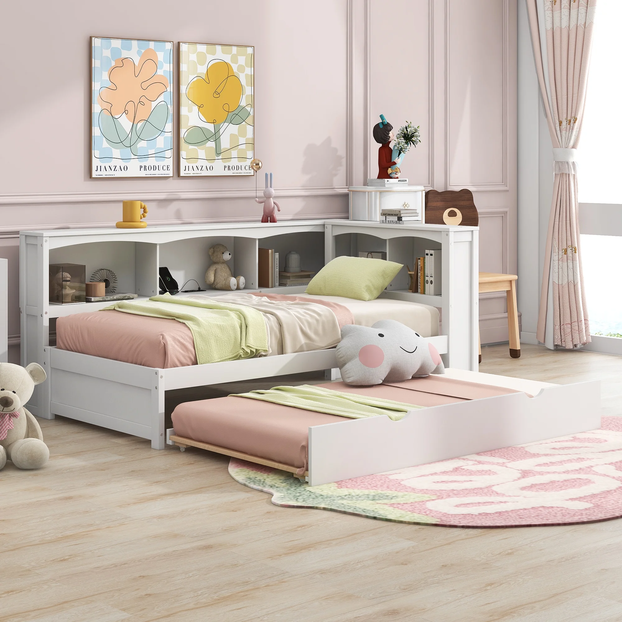 CoSoTower Twin Size Daybed with Trundle, Storage Cabinets and USB Ports, White