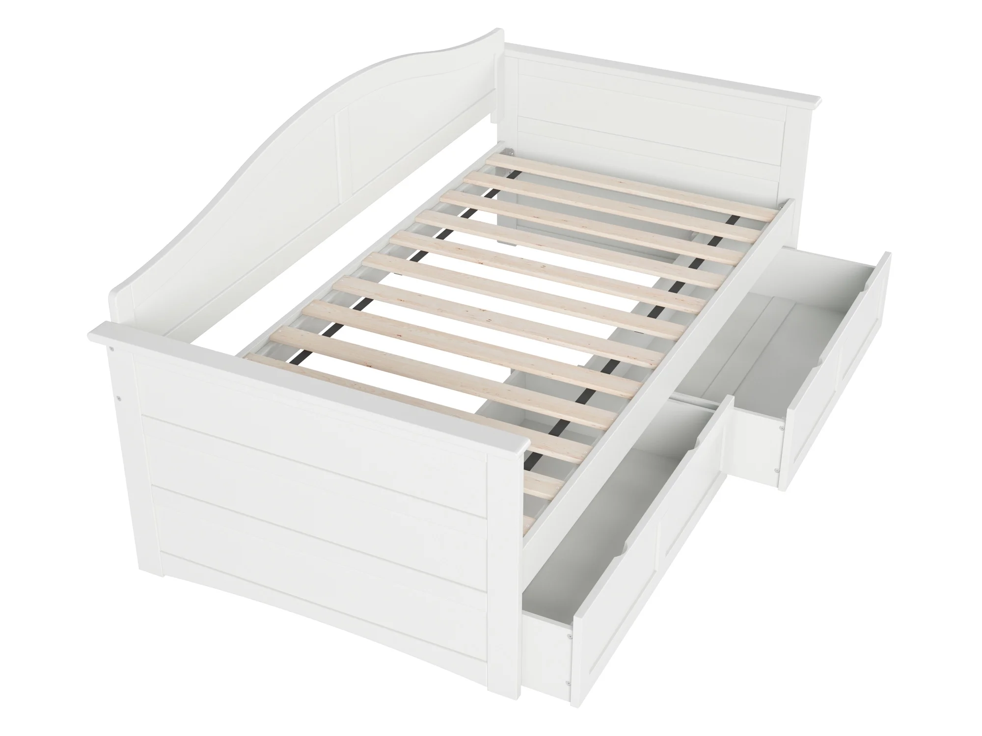 Gewnee Twin Wood Daybed with 2 Storage Drawers and with Wood Slat Support,White