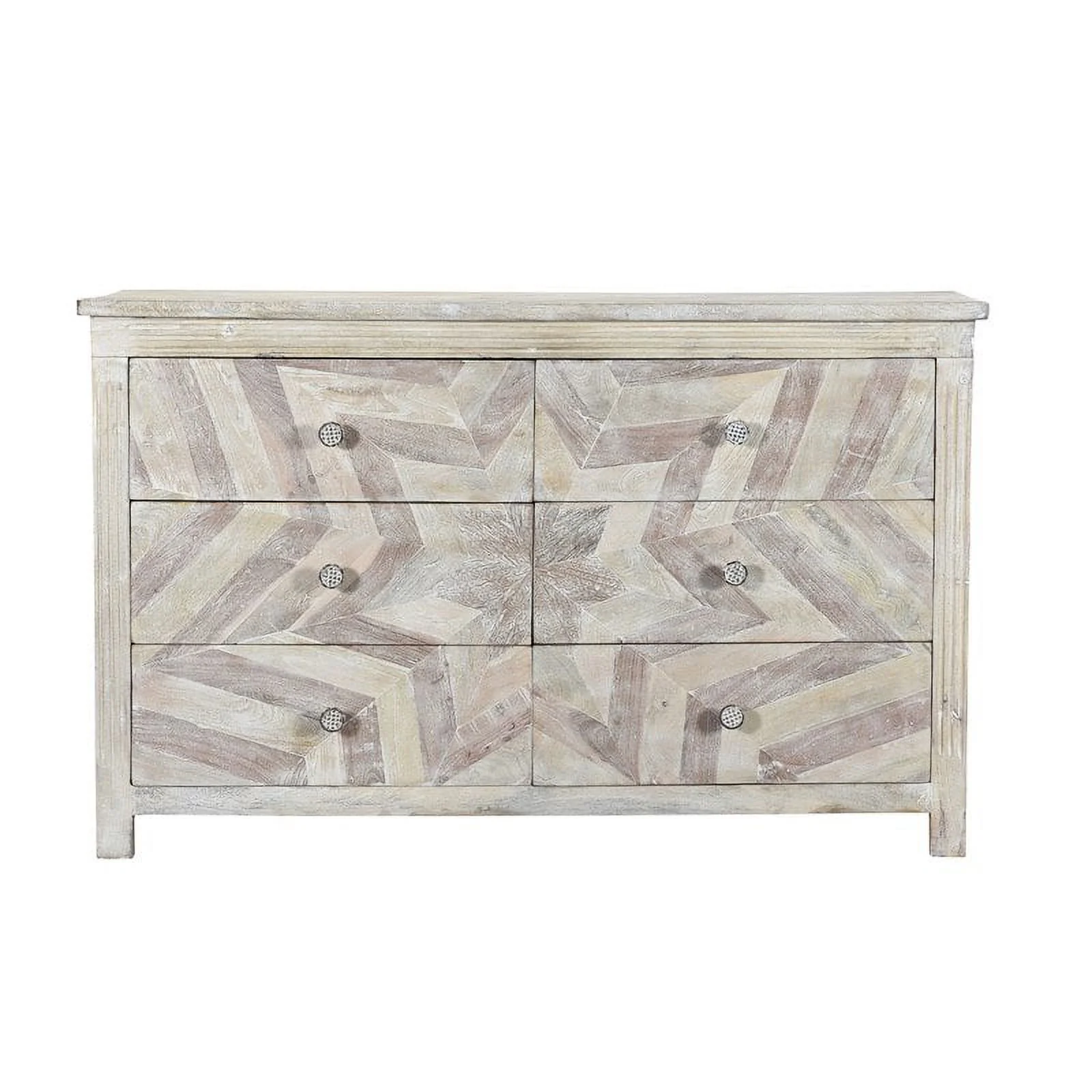 Taran Designs Carla 6-drawer Chevron Solid Wood Dresser in White Multicolor