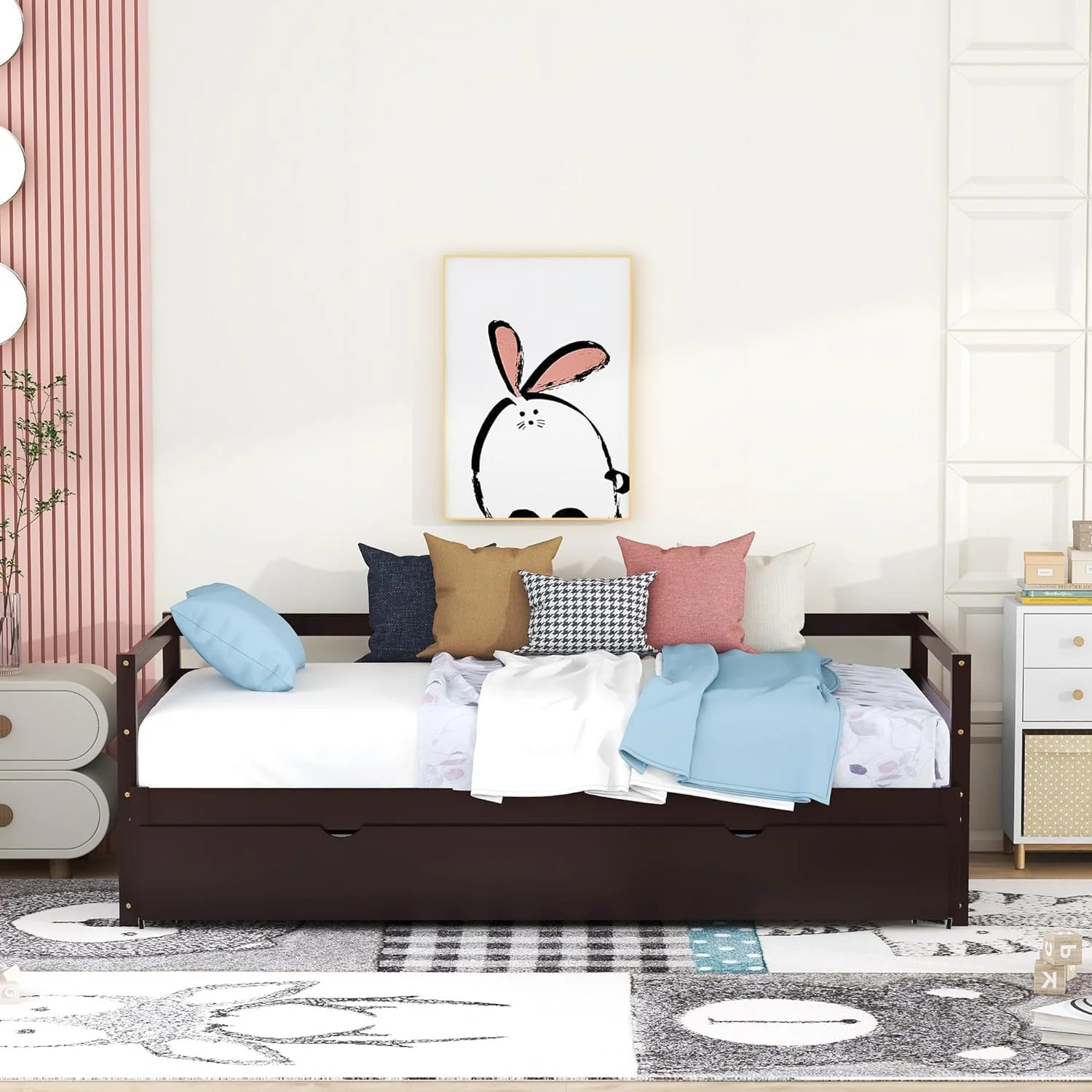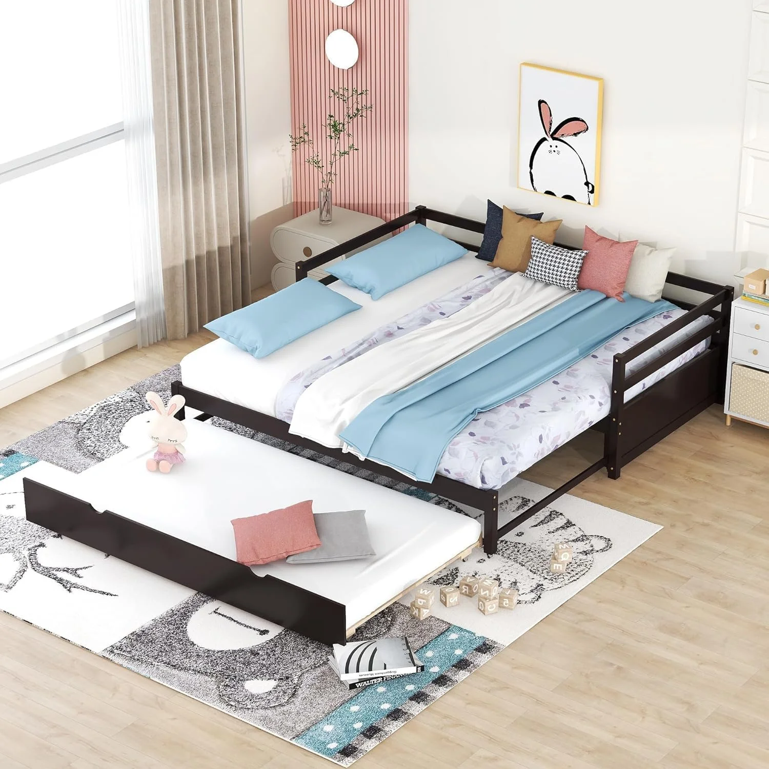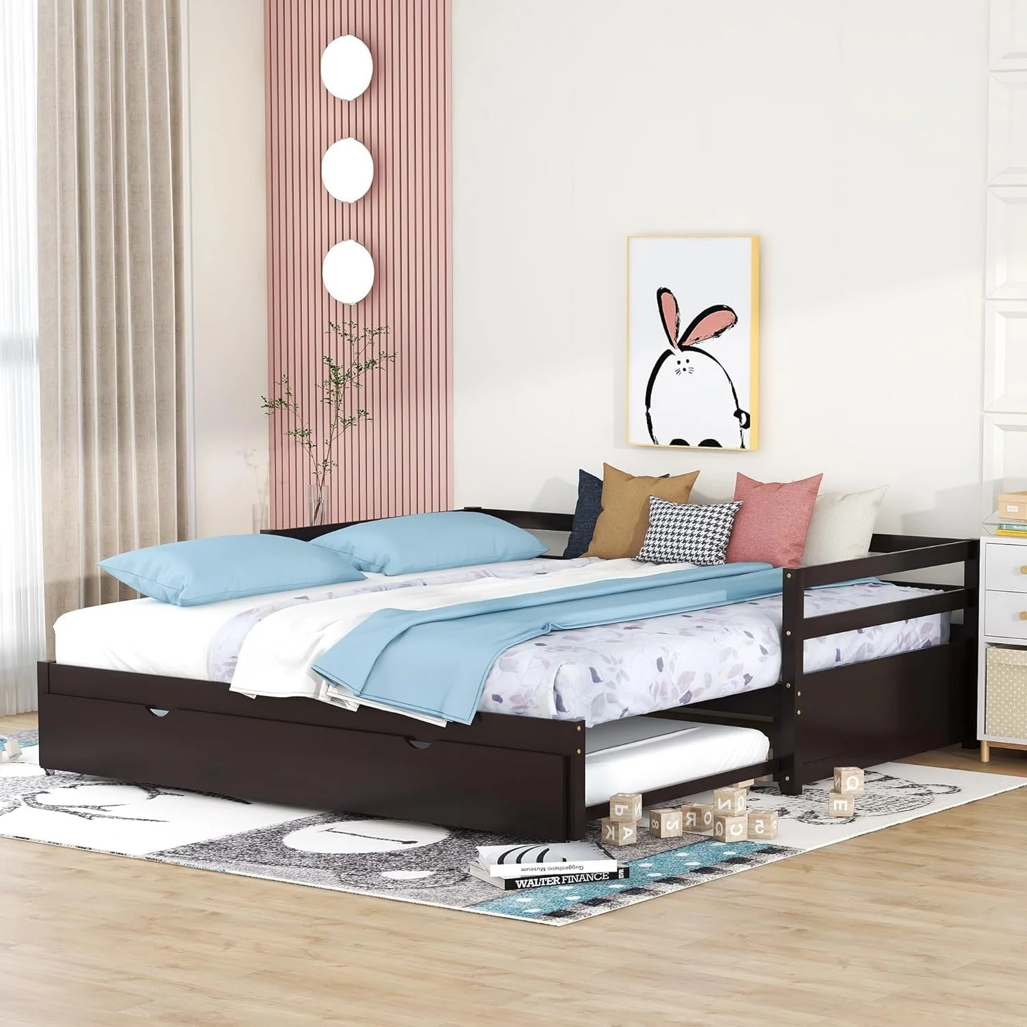 Exedable Daybed Wih rudle, Wood o Dble Pull rudle For Kids ees, Exedig Sofa Bed Livig Room, Bedroom, Gues Room,Espresso