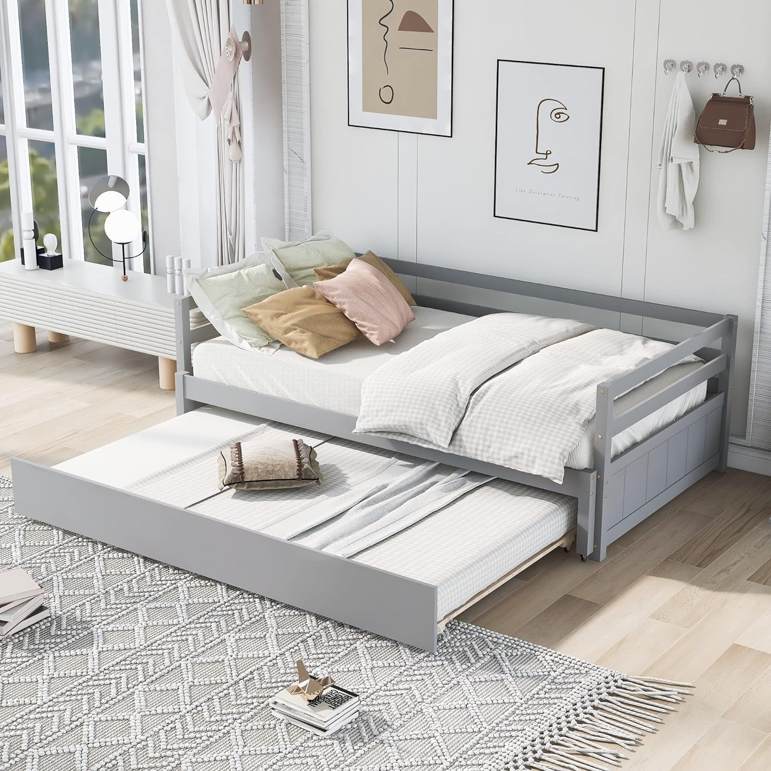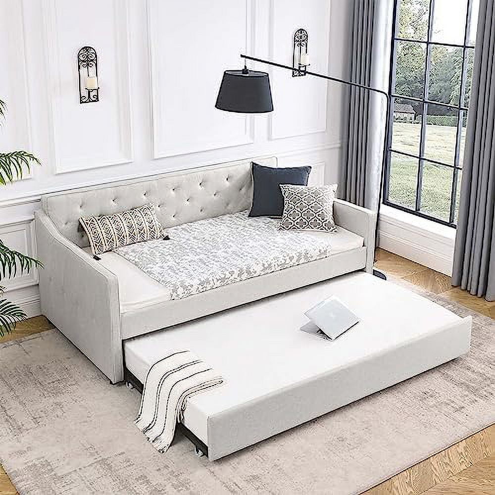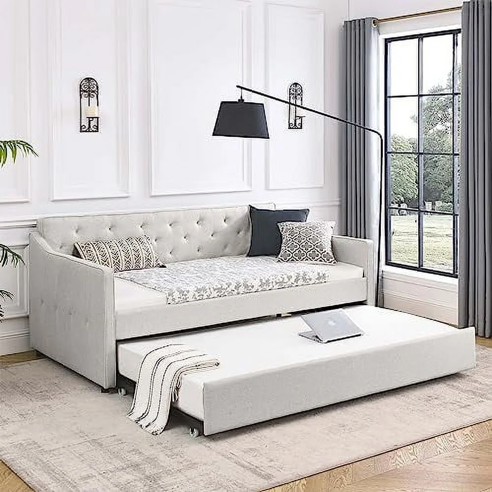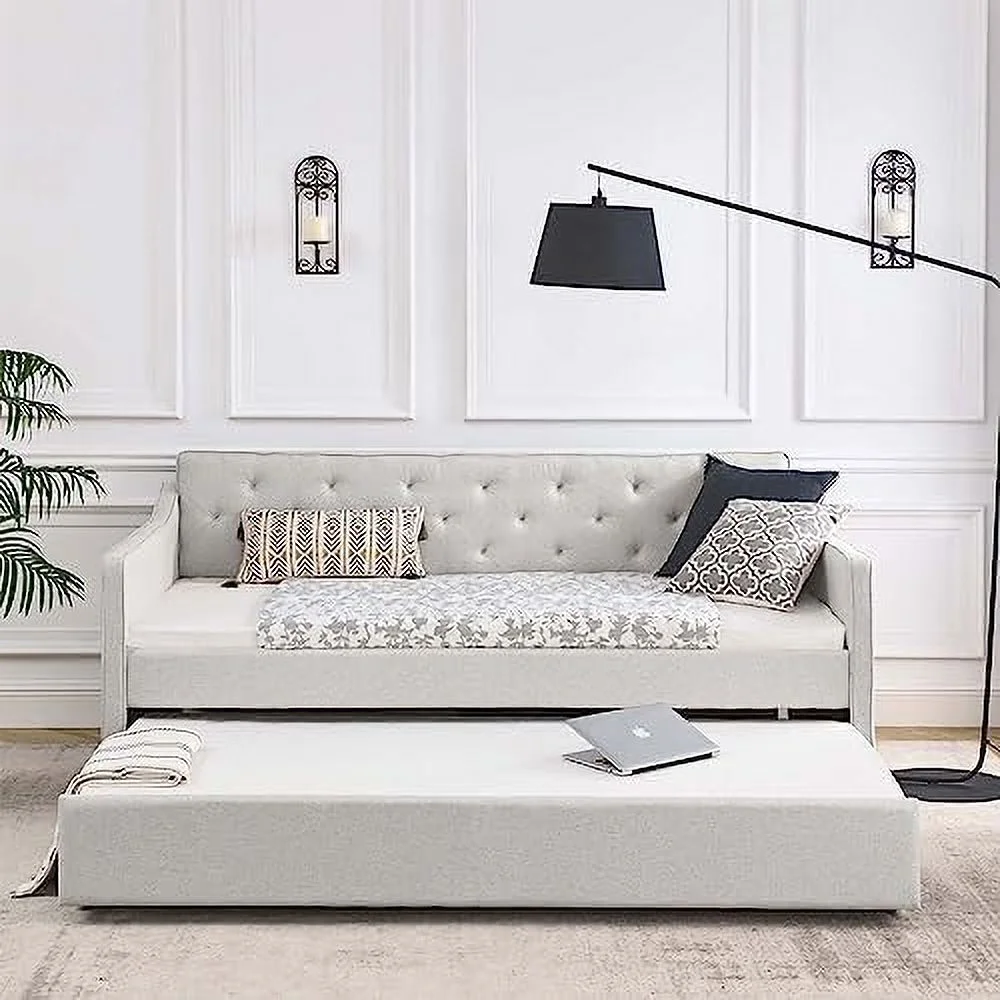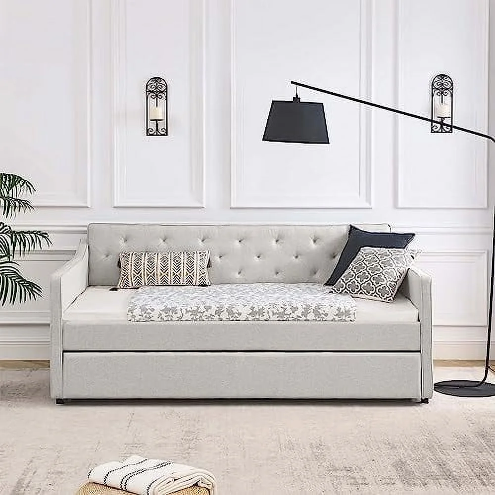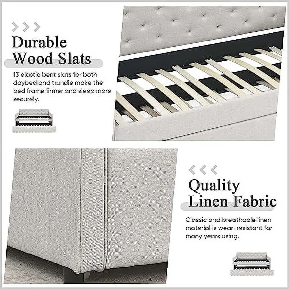 Daybed Wih rudle, Wood Daybed Size, Surdy Daybed Ad rudle Sofa Bed For Livig Room,Gues Room, o Box Sprig eeded,Grey